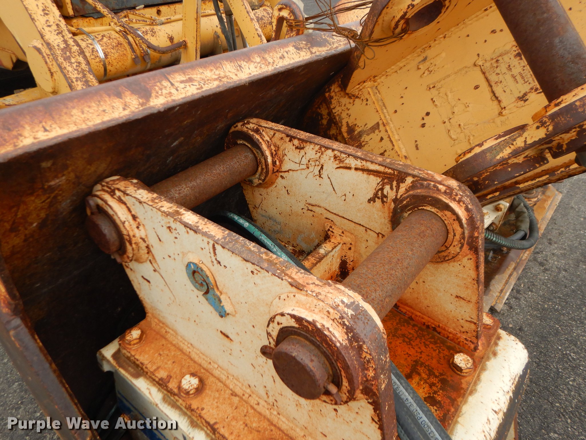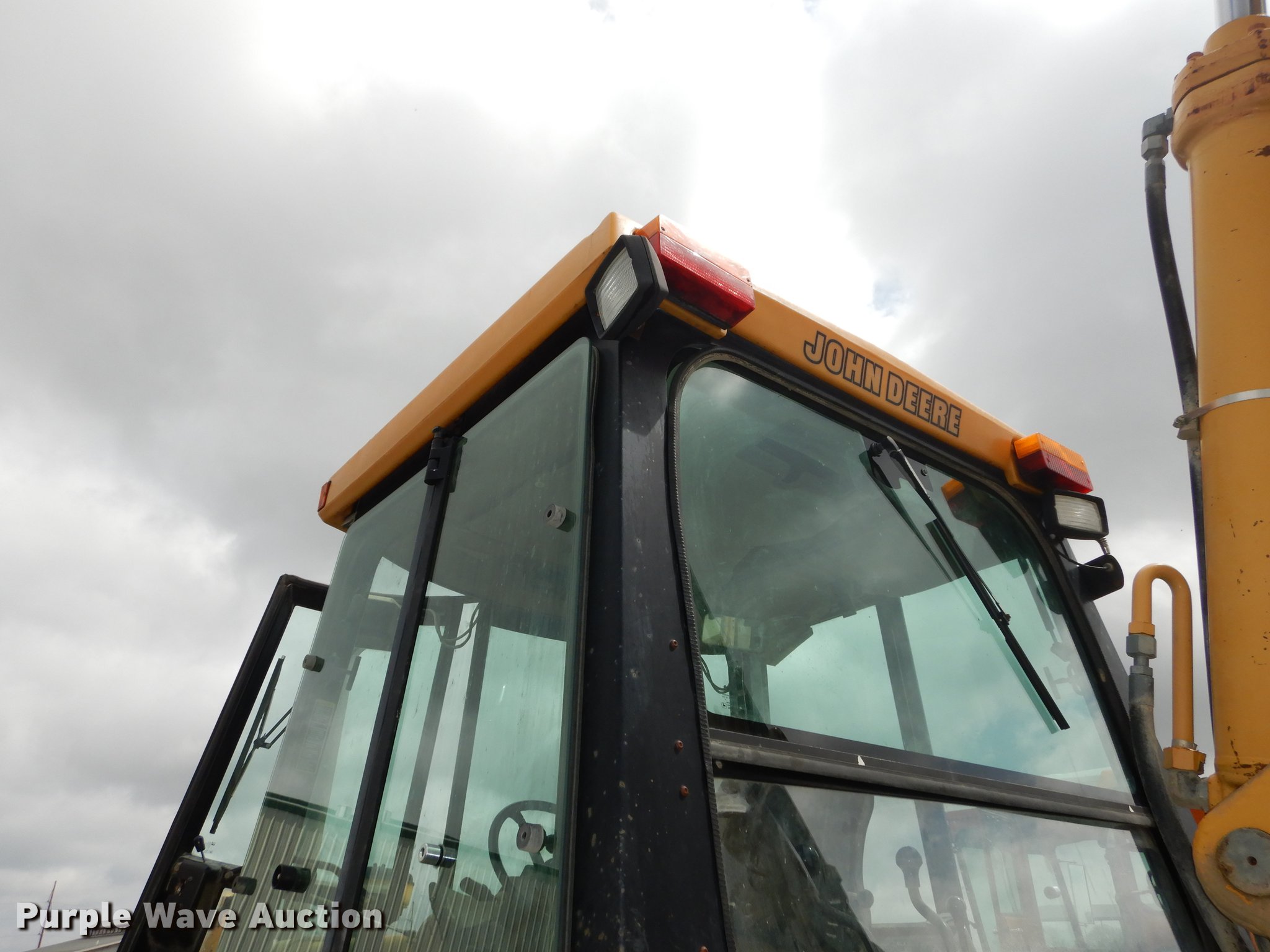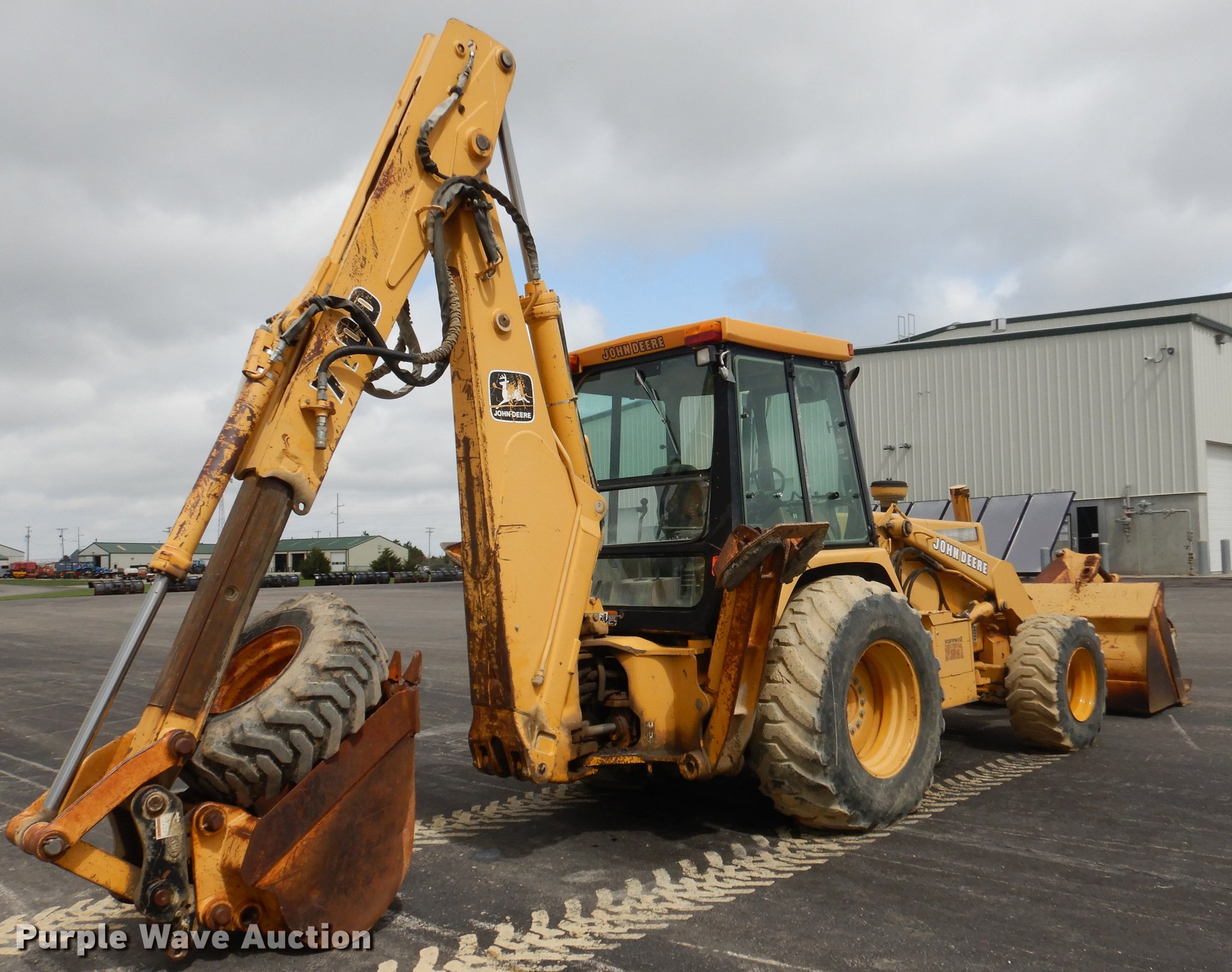 Purple Wave is selling a used Tractor Loader Backhoe in Kansas. This item is a 1993 John Deere 710D backhoe with the following: John Deere six cylinder turbo diesel engine, Powershift transmission, 4F-4R gears, Four wheel drive, Enclosed cab, Tilt steering wheel, AM/FM/weatherband, Wobble stick backhoe controls, Suspension seat, Front and rear work lights, Wipers, Strobe lights, 94"W loader bucket, Weld-on/bolt-on cutting edge, Extendable stick, 31"W backhoe bucket, Weld-on cutting edge, (5) teeth, 16"W backhoe bucket, Weld-on cutting edge, (3) teeth, Auxiliary hydraulics, KHP 65 tamper, 2', Kent hydraulic breaker, Stabilizer pads, Firestone 15-9.5 front tires, Firestone 21L-28 rear tires, Additional front tire, Unit needs hydraulic work, Bolt-on cutting edge damaged, Hour meter inoperable, Serial T0710DJ794833, Unit# 608