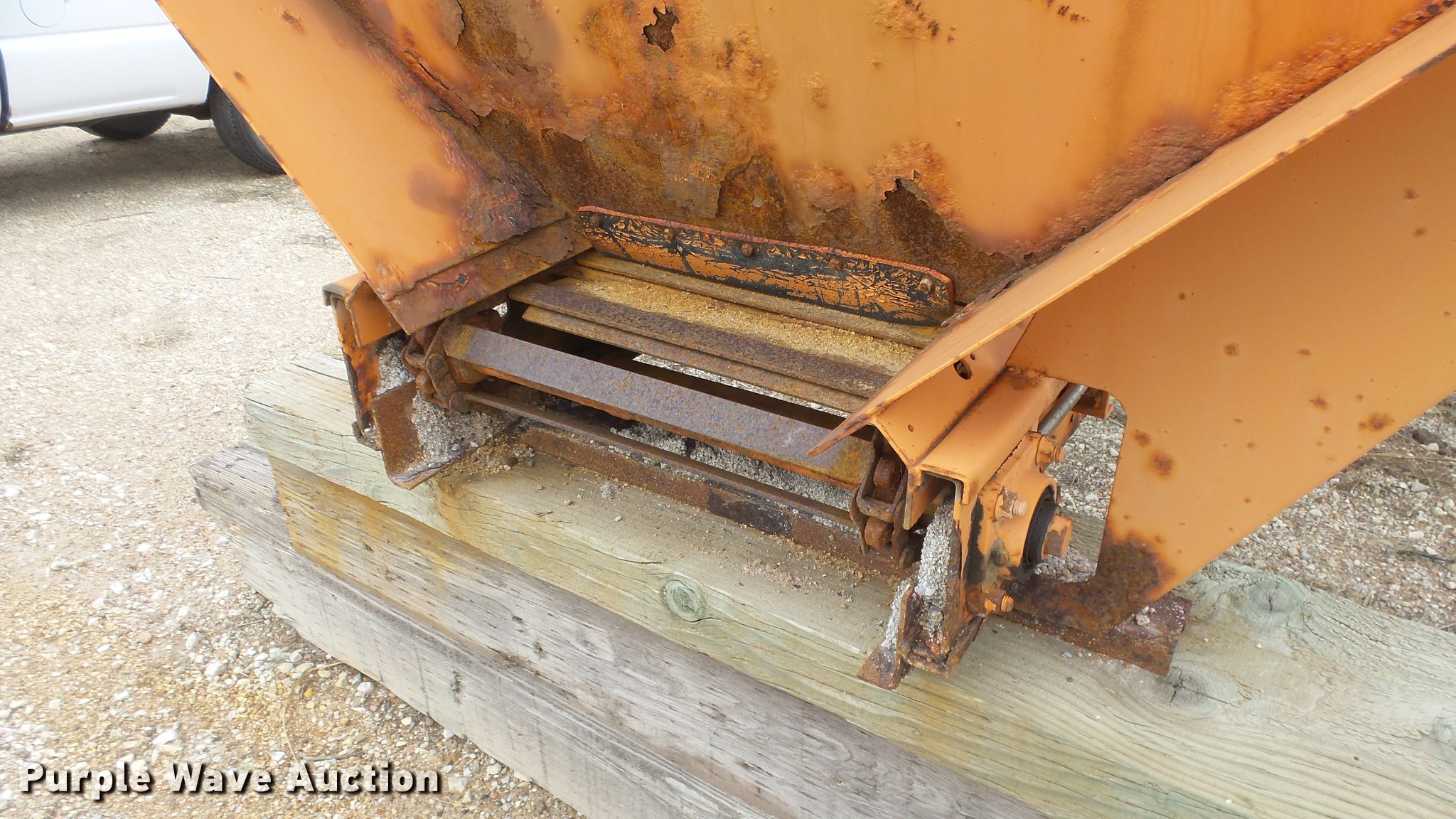 Purple Wave is selling a used Truck Part and Attach. in Kansas. This item is a Henderson WSHX12X48 steel spreader with the following: 12'L x 84"W, Top screen, Single spinner, Beacon lights, Taillights, Hydraulic operation, Serial 21950
