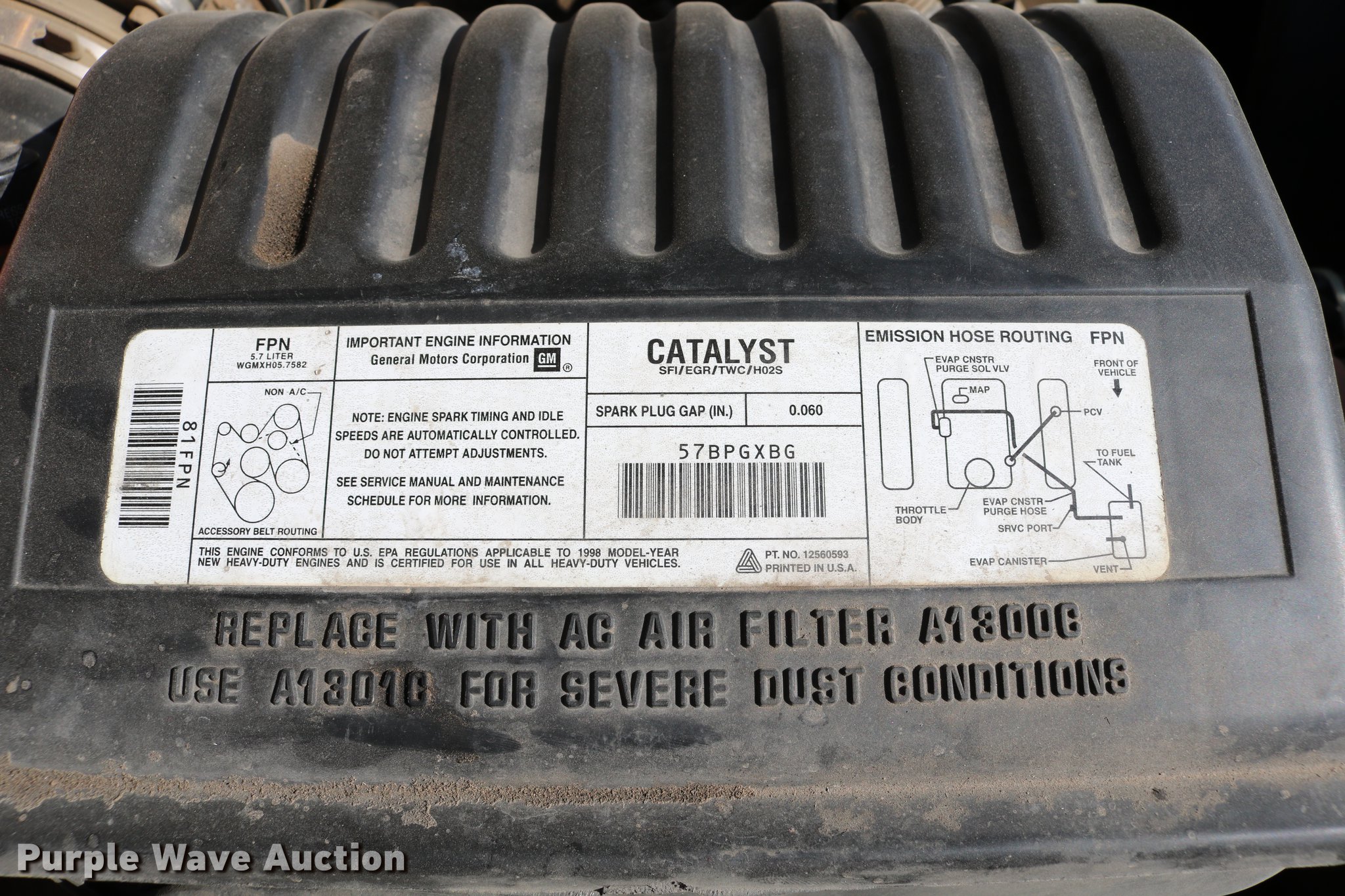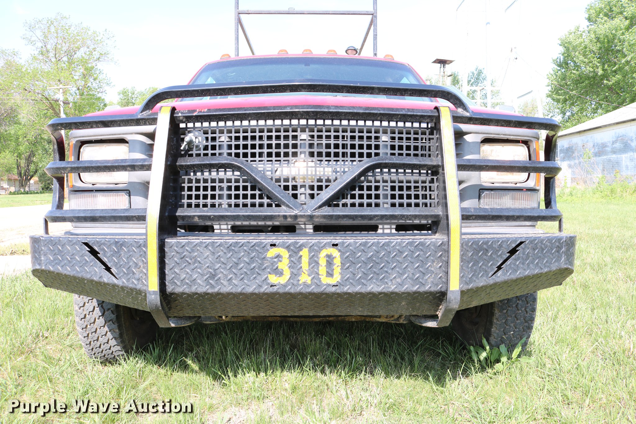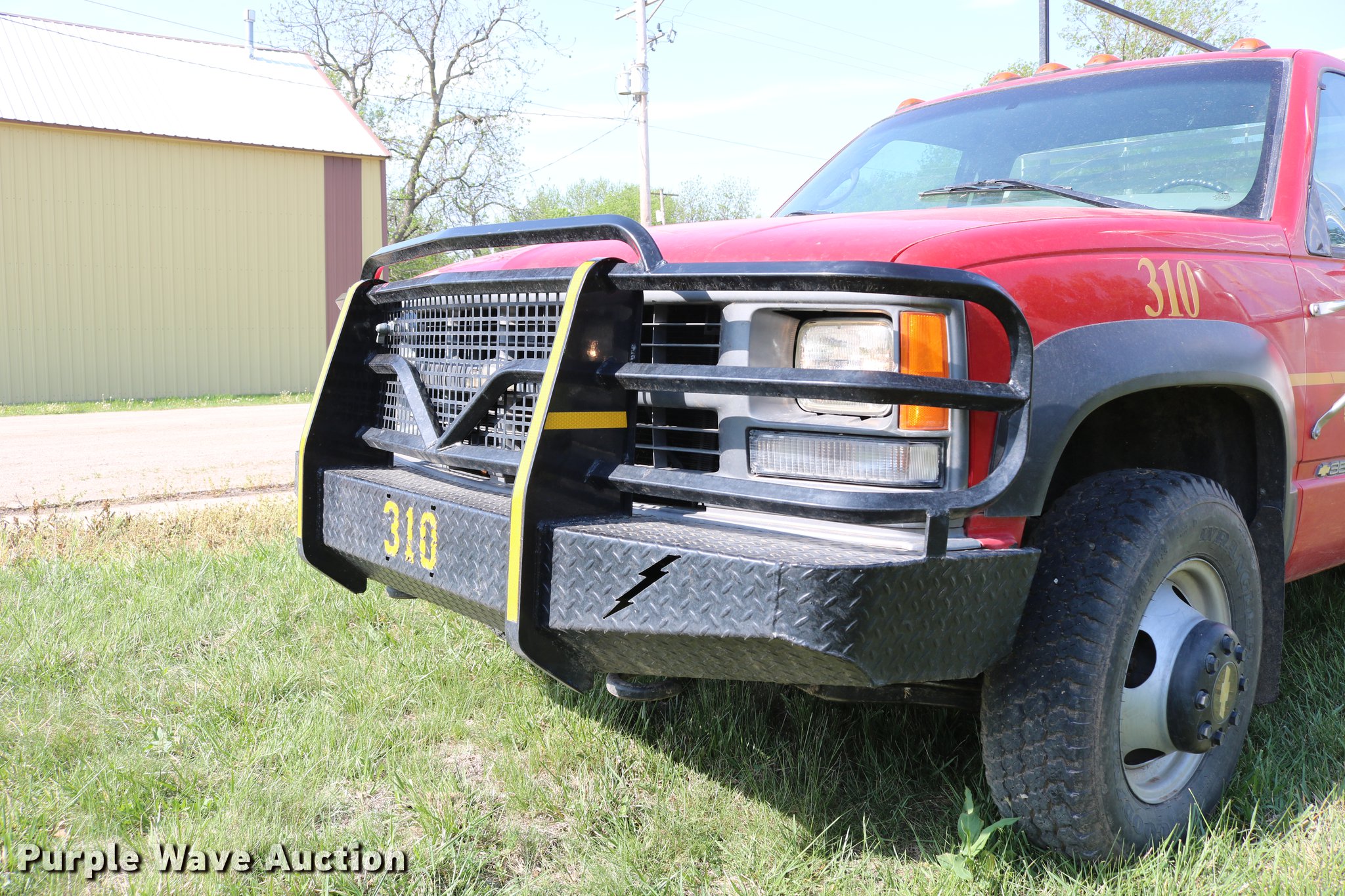 Purple Wave is selling a used Fire Truck or Emergency Vehicle in Kansas. This item is a 1998 Chevrolet Cheyenne 3500 rescue fire truck with the following: 4,400 miles on odometer, 5.7L V8 OHV 16V gas engine, Automatic transmission, Four wheel drive, Single axle, Heat, MCB utility bed, 11'L x 89"W, Single fuel tank, Spring suspension, Hydraulic brakes, 225/75R16 tires, No pump, No rear view mirror, No radio, ABS light on