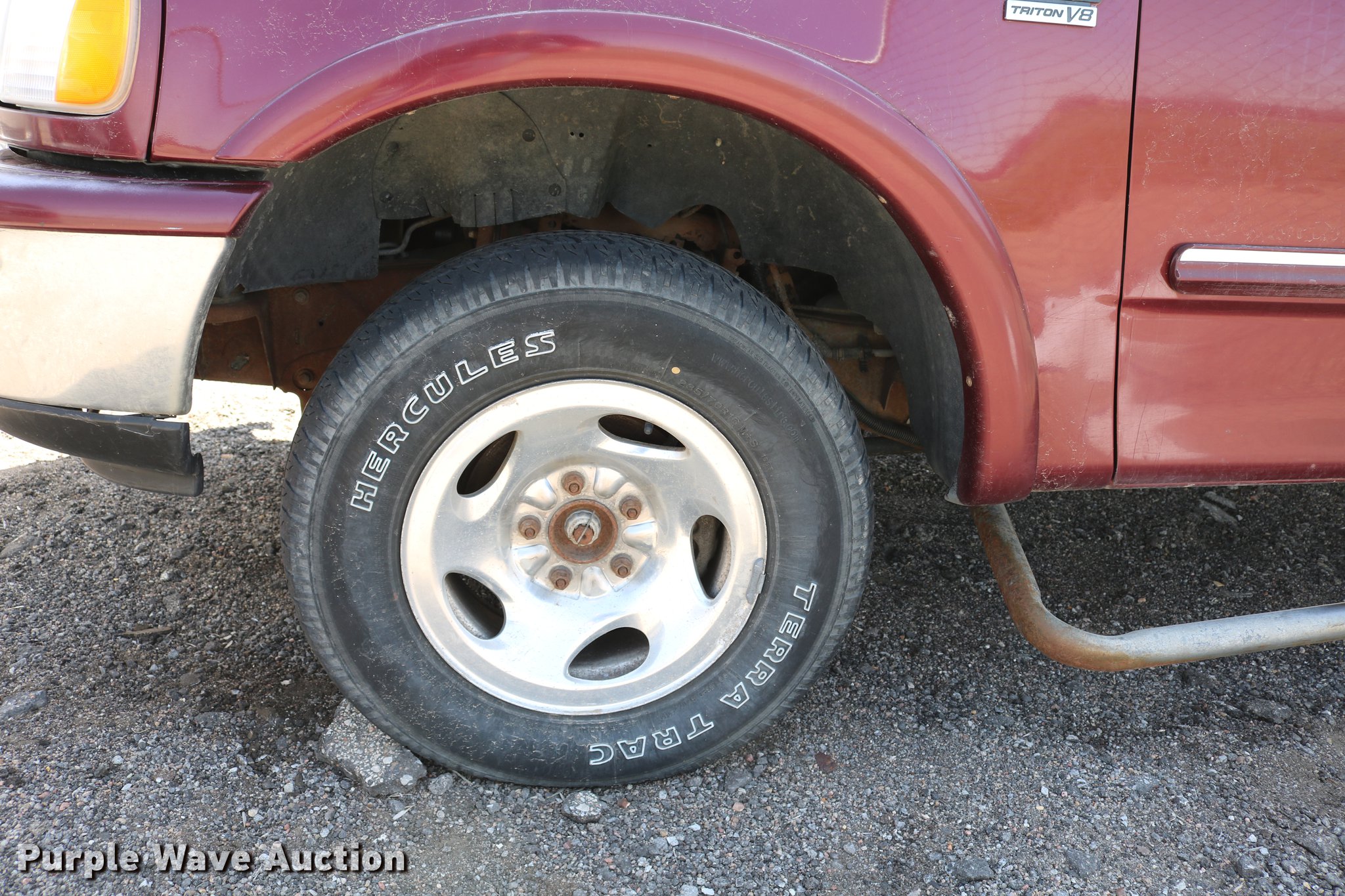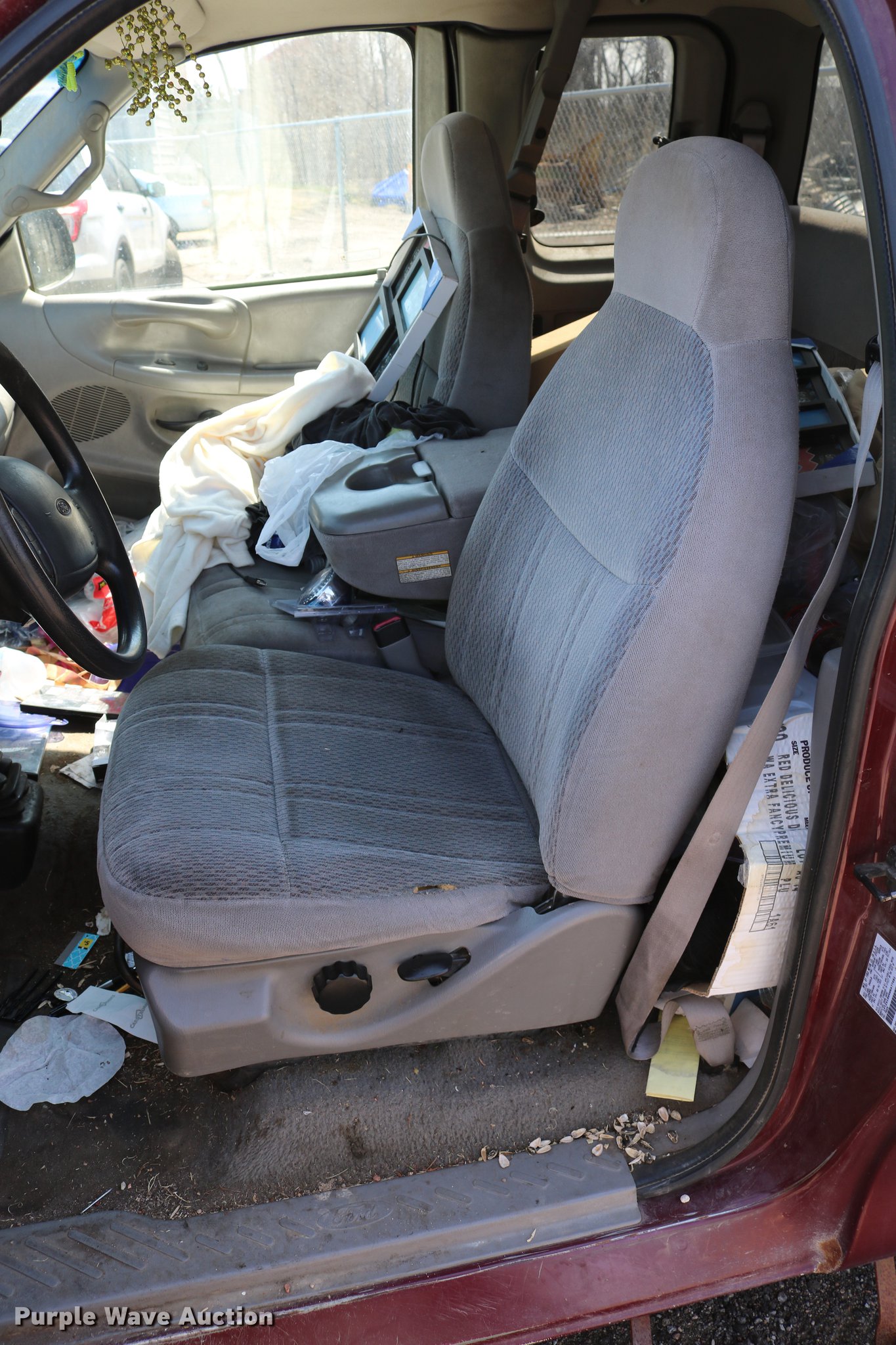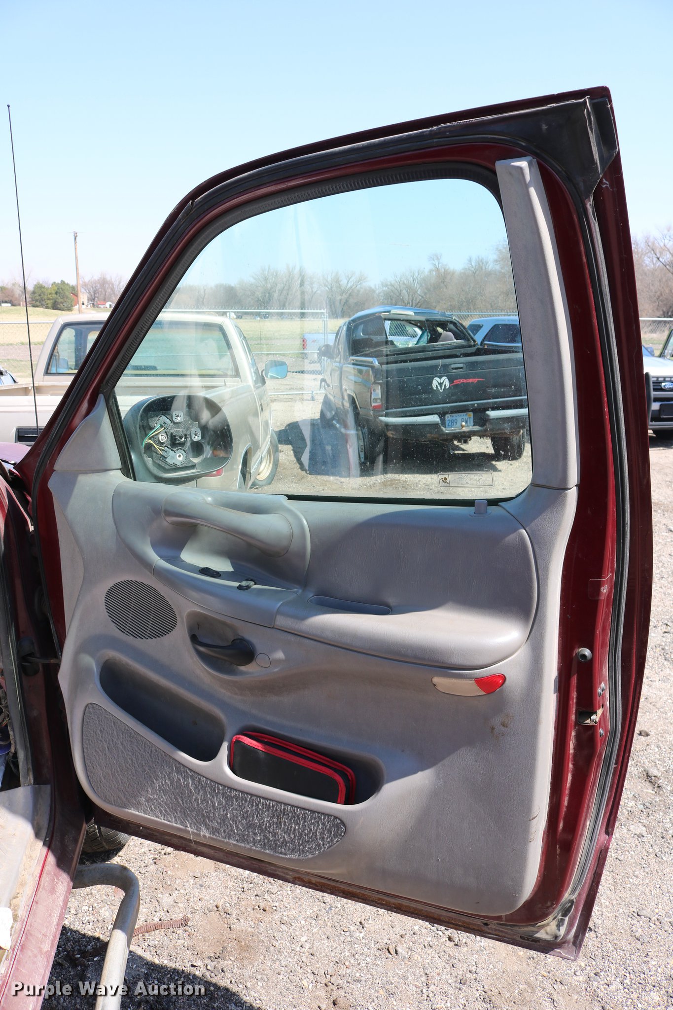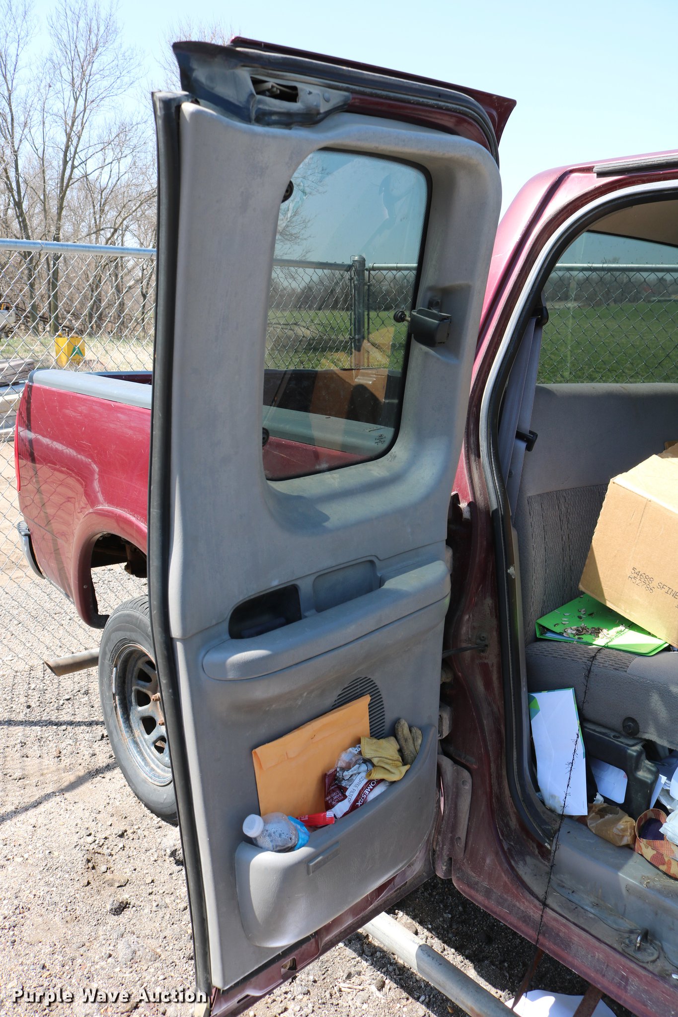 Purple Wave is selling a used 1/2 Ton Pickup or Van in Kansas. This item is a 1998 Ford F150 SuperCab pickup truck with the following: 222,831 miles on odometer, 4.6L V8 SOHC 16V gas engine, Automatic transmission, Four wheel drive, AC and heat, Tilt, Cruise, AM/FM, Power windows, locks, and mirrors, Cloth interior, Front tow hooks, Shop built running boards, Bed liner, Receiver hitch, Trailer wiring, 235/70R16 tires, Driver side rear side window is broken out, Cracked driver side mirror, Passenger side mirror missing, Drivers side taillight broken, Cracked windshield, Tailgate damaged, Unknown operating condition