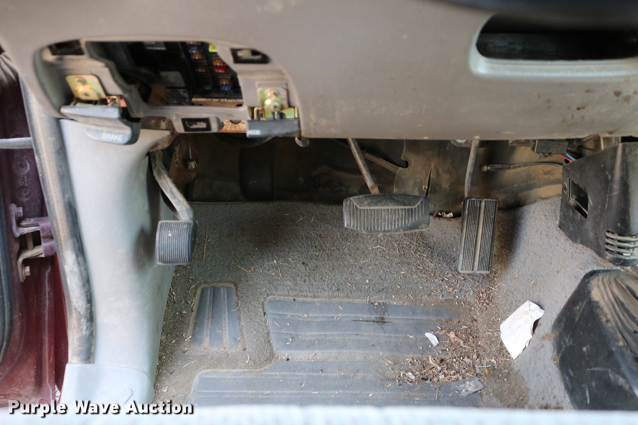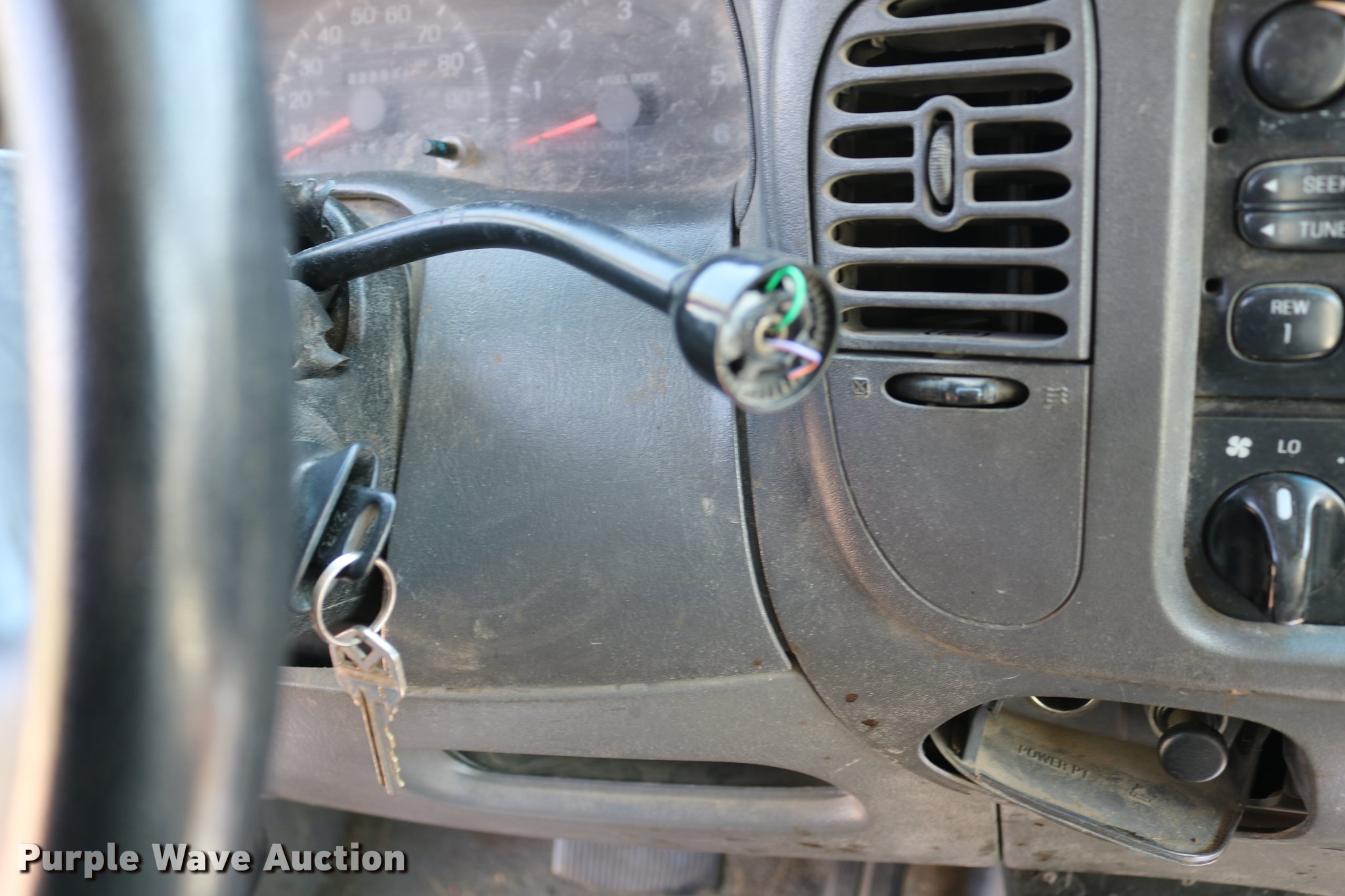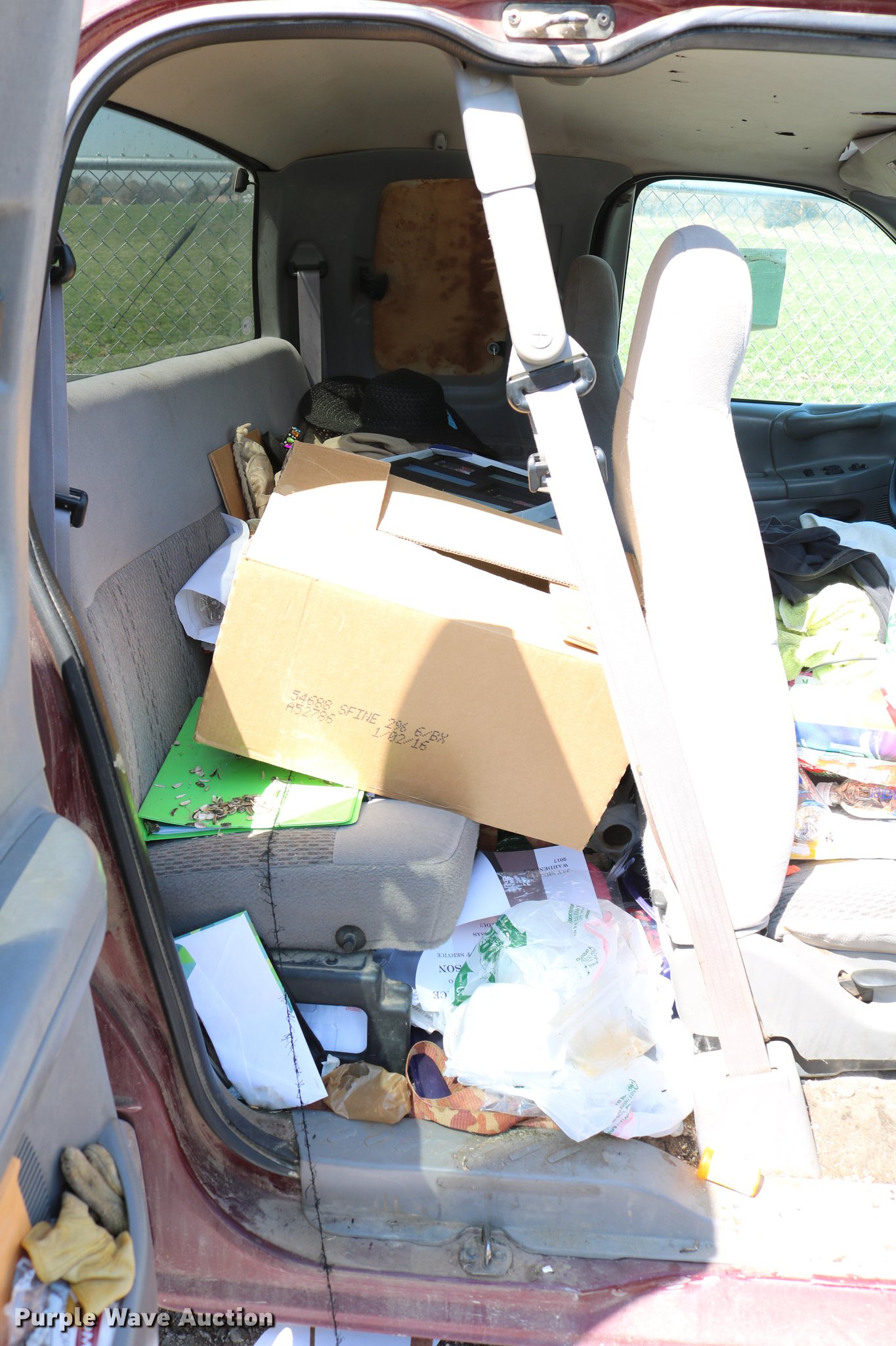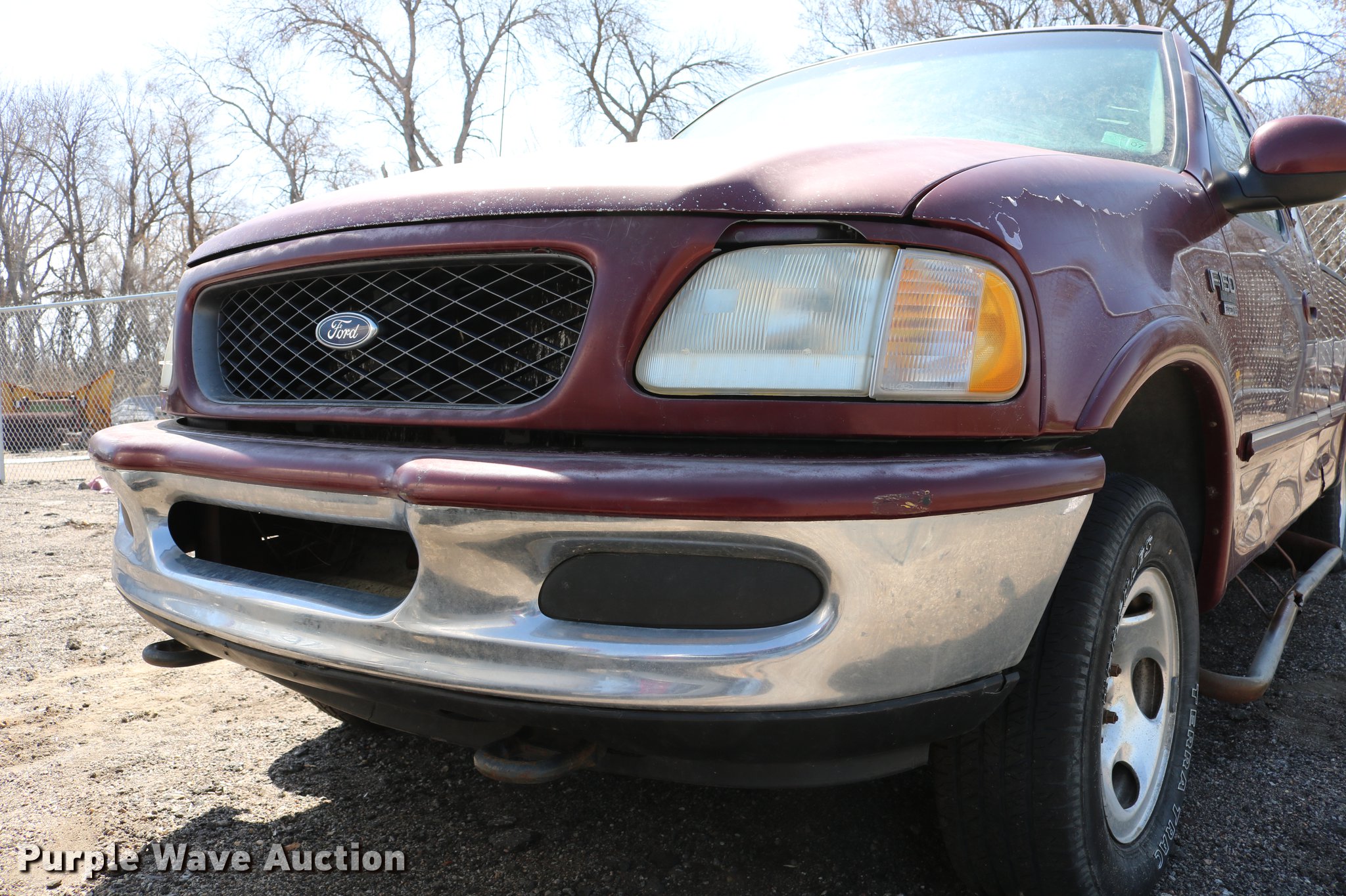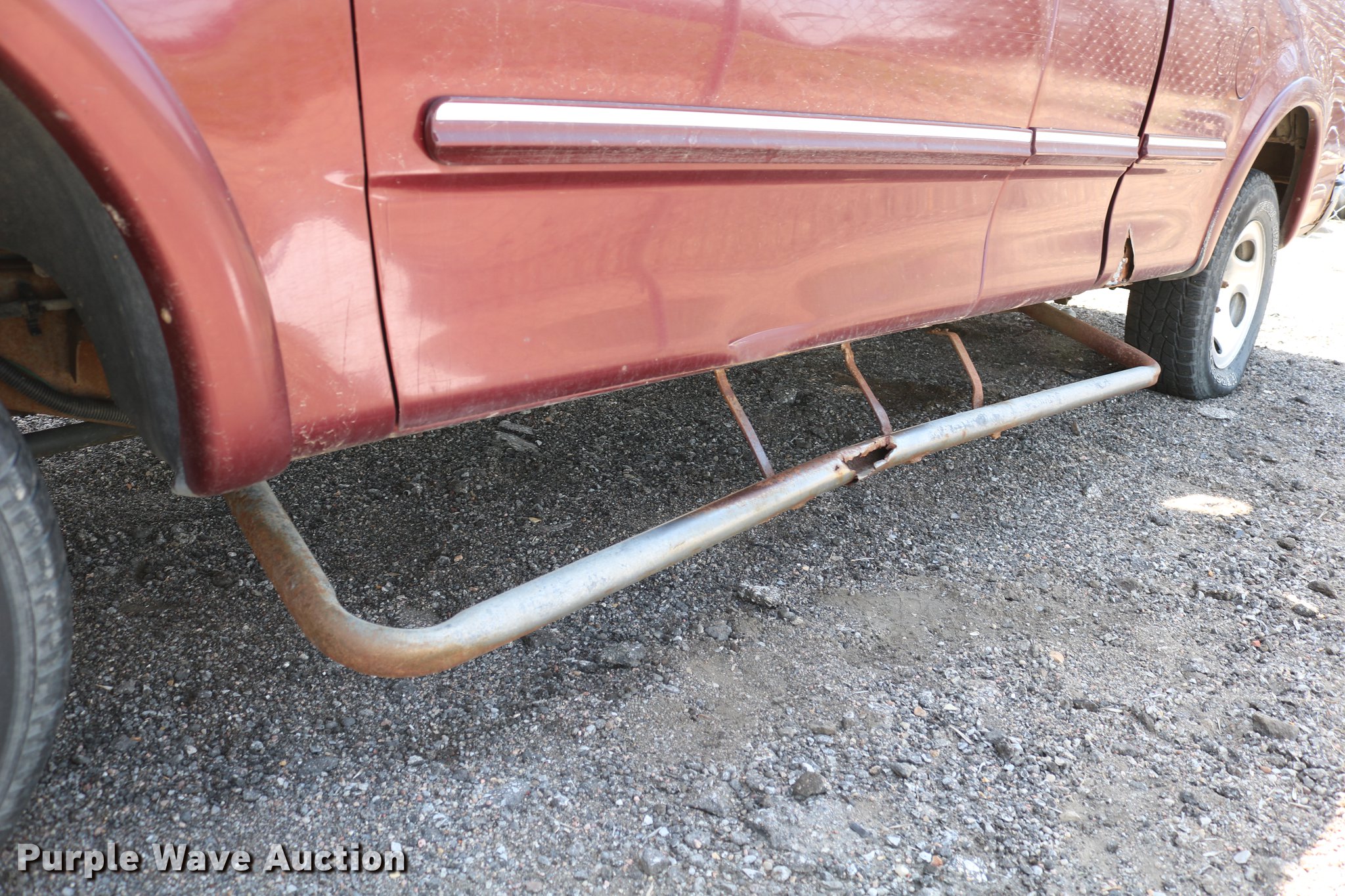 Purple Wave is selling a used 1/2 Ton Pickup or Van in Kansas. This item is a 1998 Ford F150 SuperCab pickup truck with the following: 222,831 miles on odometer, 4.6L V8 SOHC 16V gas engine, Automatic transmission, Four wheel drive, AC and heat, Tilt, Cruise, AM/FM, Power windows, locks, and mirrors, Cloth interior, Front tow hooks, Shop built running boards, Bed liner, Receiver hitch, Trailer wiring, 235/70R16 tires, Driver side rear side window is broken out, Cracked driver side mirror, Passenger side mirror missing, Drivers side taillight broken, Cracked windshield, Tailgate damaged, Unknown operating condition