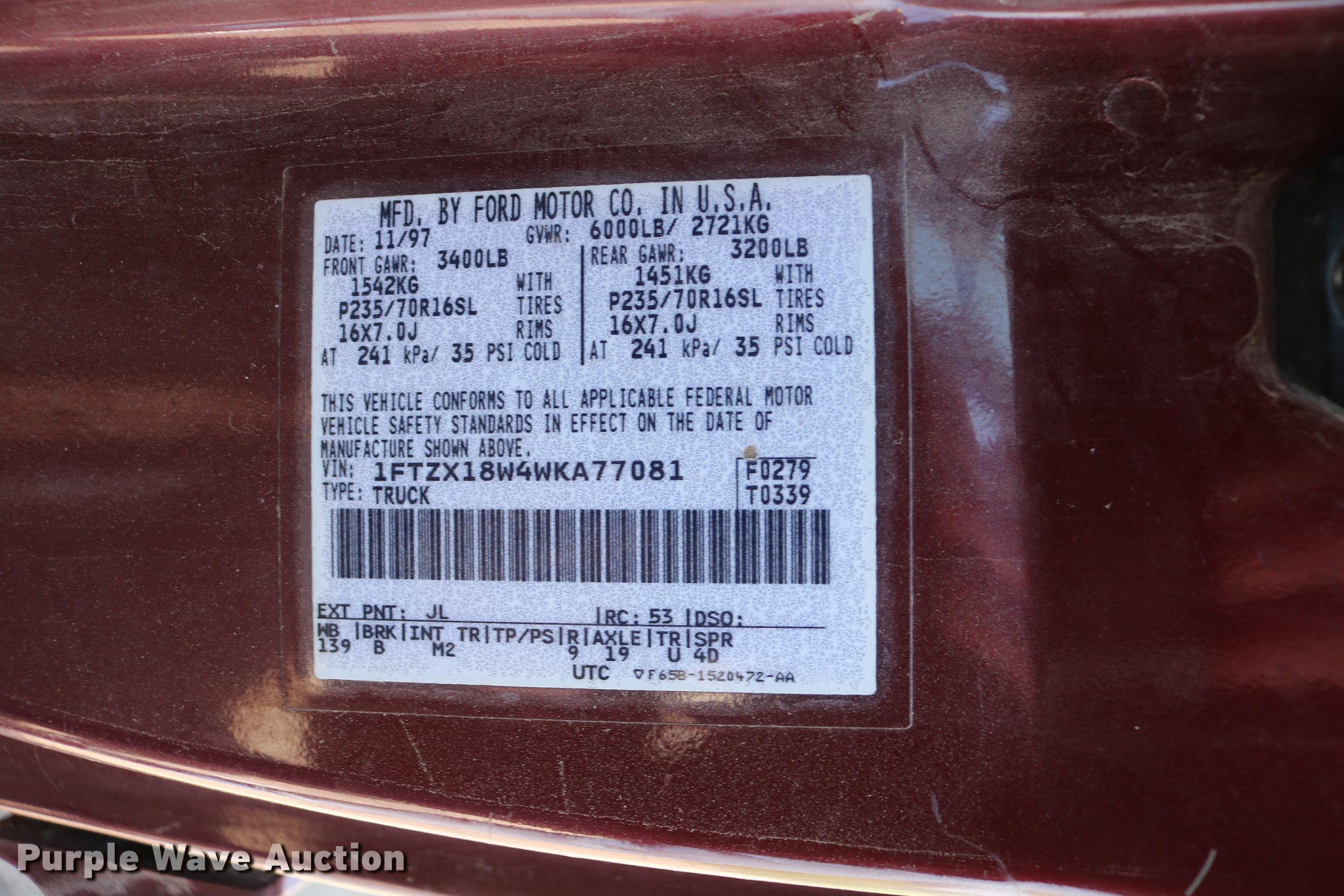 1998 Ford F150 SuperCab pickup truck. 222,831 miles on odometer, 4.6L V8 SOHC 16V gas engine, Automatic transmission, Four wheel drive, AC and heat, Tilt, Cruise, AM/FM, Power windows, locks, and mirrors, Cloth interior, Front tow hooks, Shop built running boards, Bed liner, Receiver hitch, Trailer wiring, 235/70R16 tires, Driver side rear side window is broken out, Cracked driver side mirror, Passenger side mirror missing, Drivers side taillight broken, Cracked windshield, Tailgate damaged, Unknown operating condition. Vehicle is abandoned. Condition and history are unknown. No additional information is available. Transfer of ownership documentation will be Kansas Department of Revenue form TR-105. This form is the only ownership documentation that will be provided and is sufficient for a Kansas buyer to apply for a Kansas title. Bidders are responsible for verifying if this is sufficient to obtain a title in their own titling jurisdiction prior to bidding. 1FTZX18W4WKA77081. Impound Lot. Norton, KS 67654
