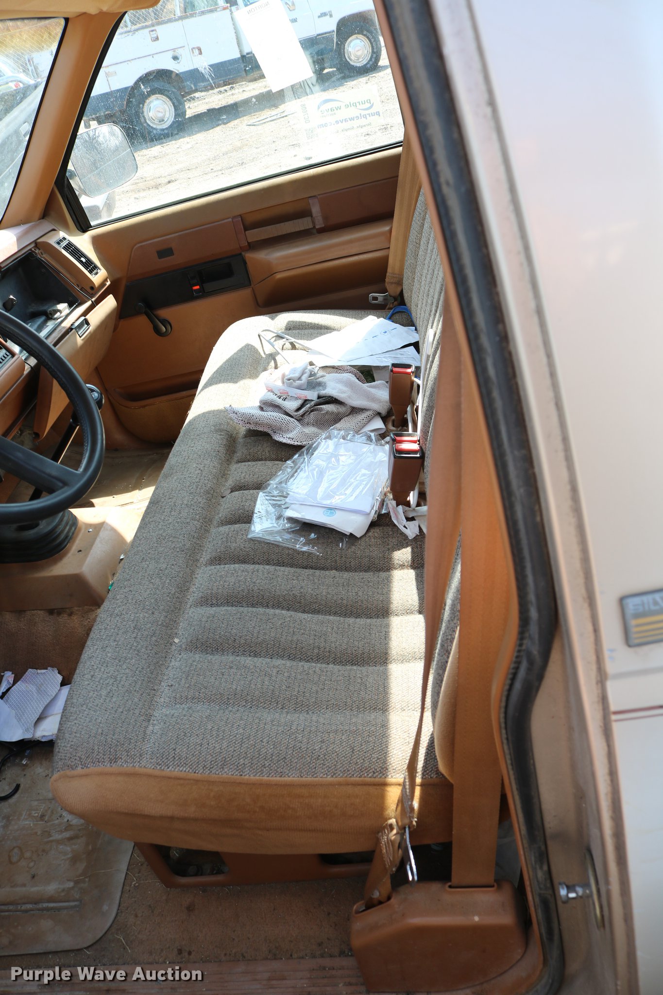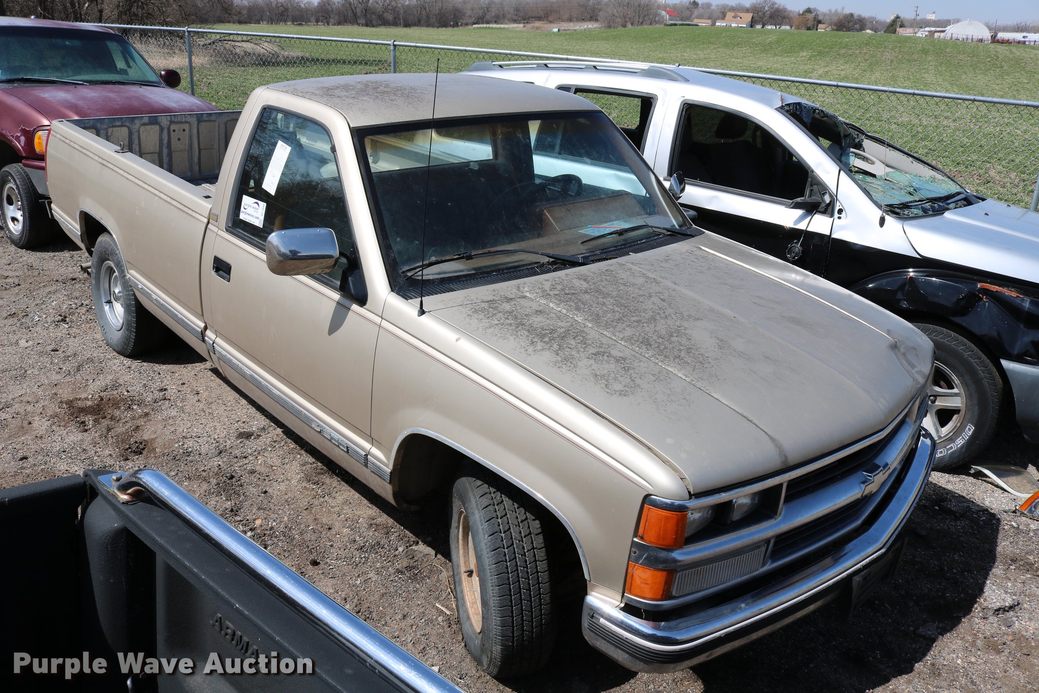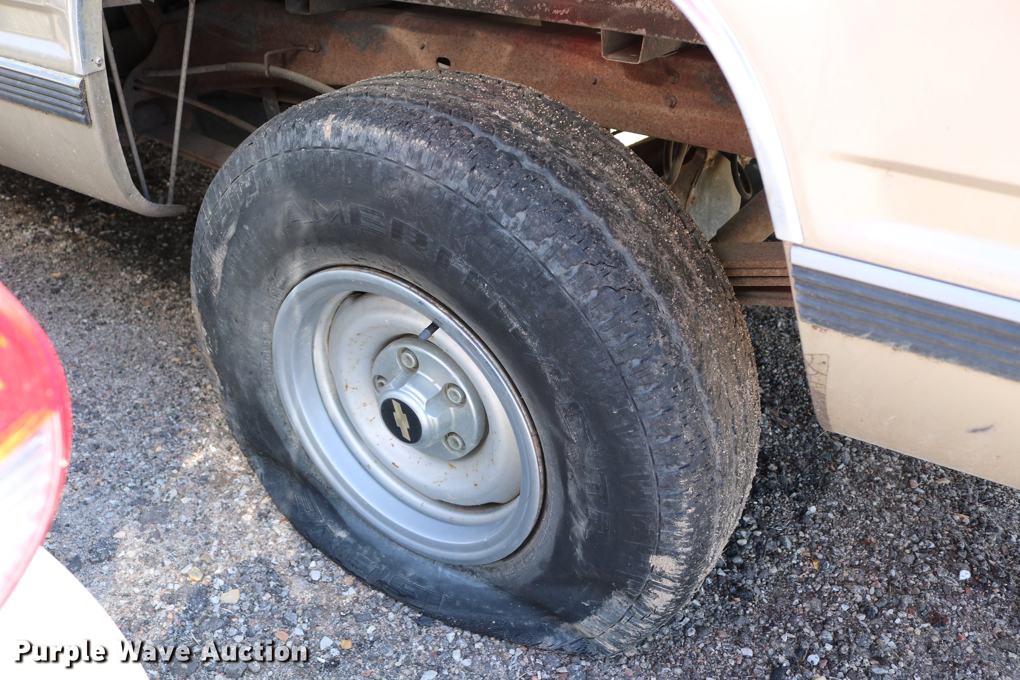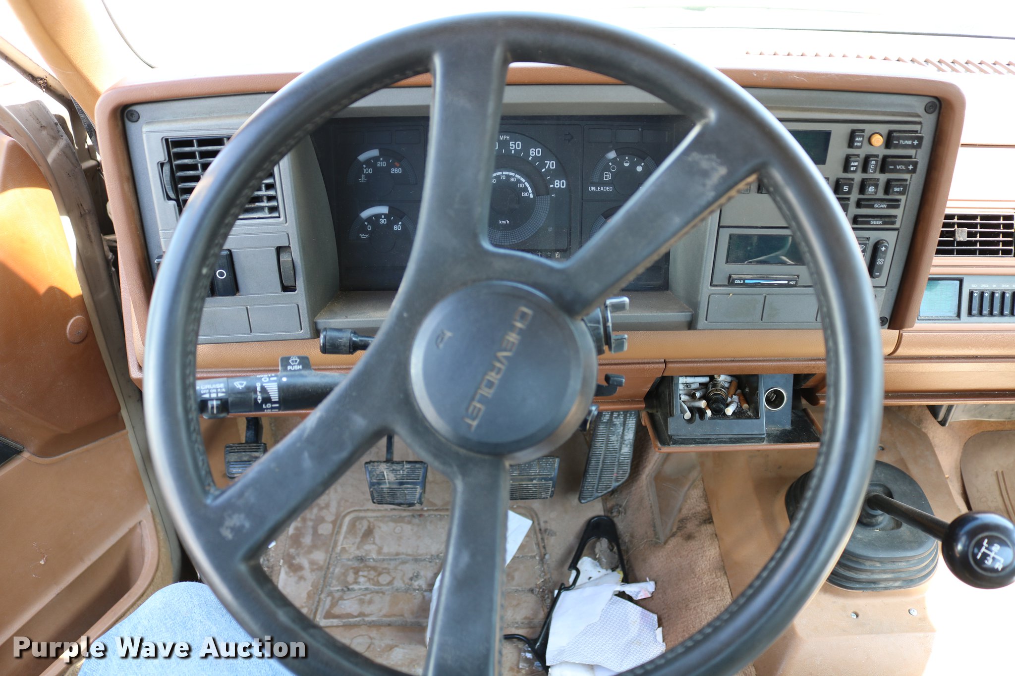 Purple Wave is selling a used 1/2 Ton Pickup or Van in Kansas. This item is a 1989 Chevrolet 1500 pickup truck with the following: 136,833 miles on odometer, 5.7L V8 OHV 16V gas engine, Four speed manual transmission, AC and heat, Tilt, Cruise, AM/FM, Cloth interior, Long bed, Receiver hitch, Trailer wiring, 235/75R15 tires, Drivers door will not open/close correctly, No keys, Unknown operating condition