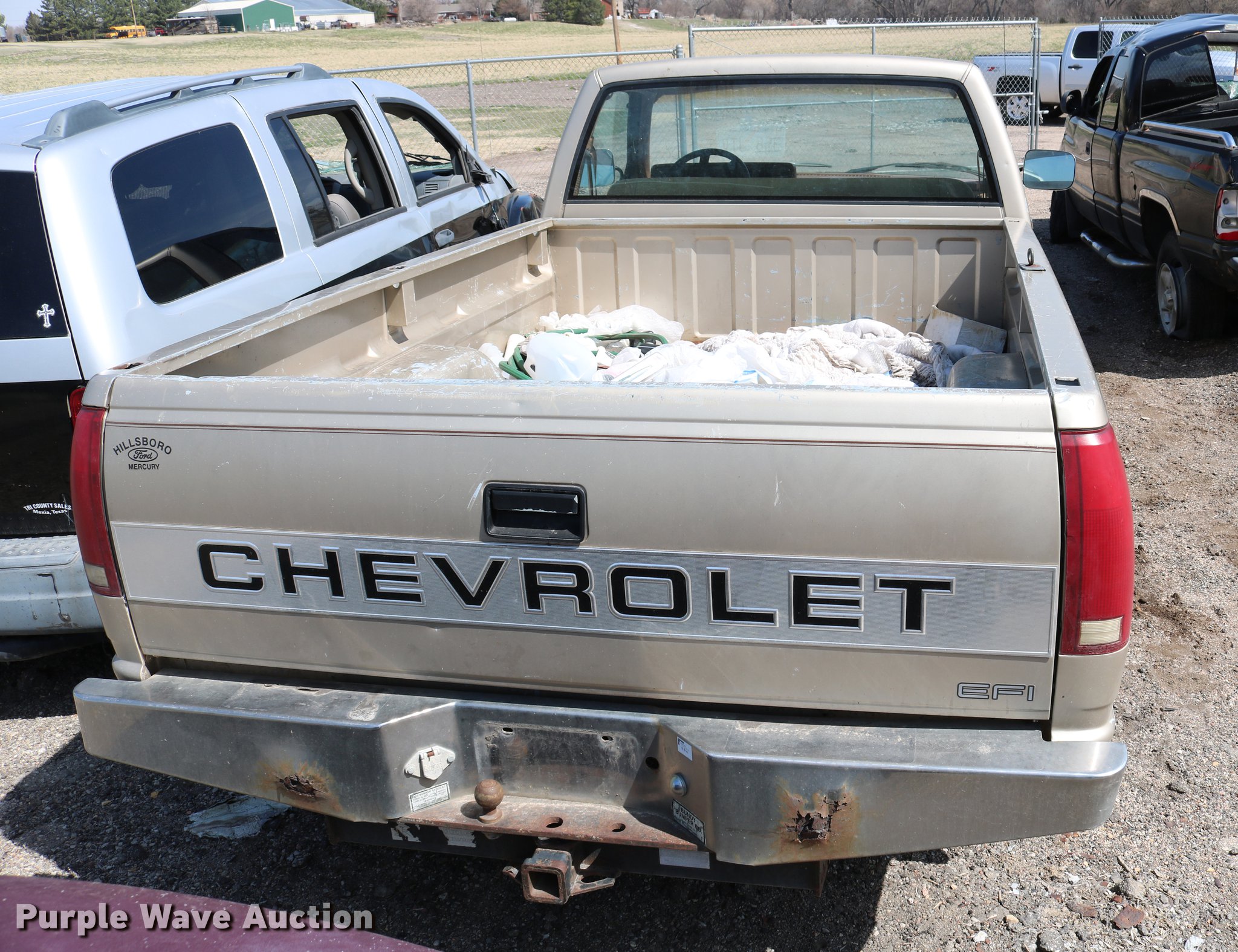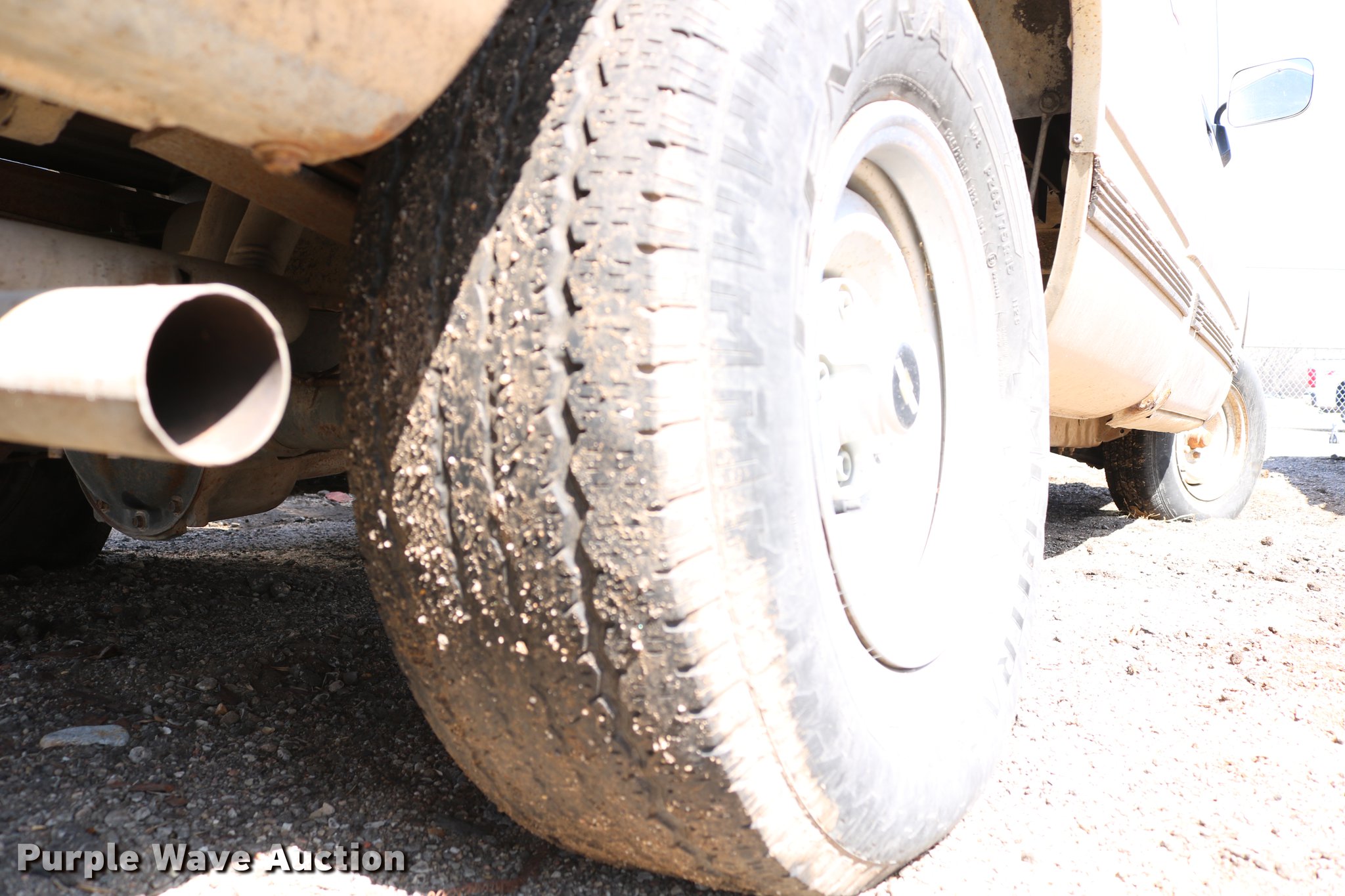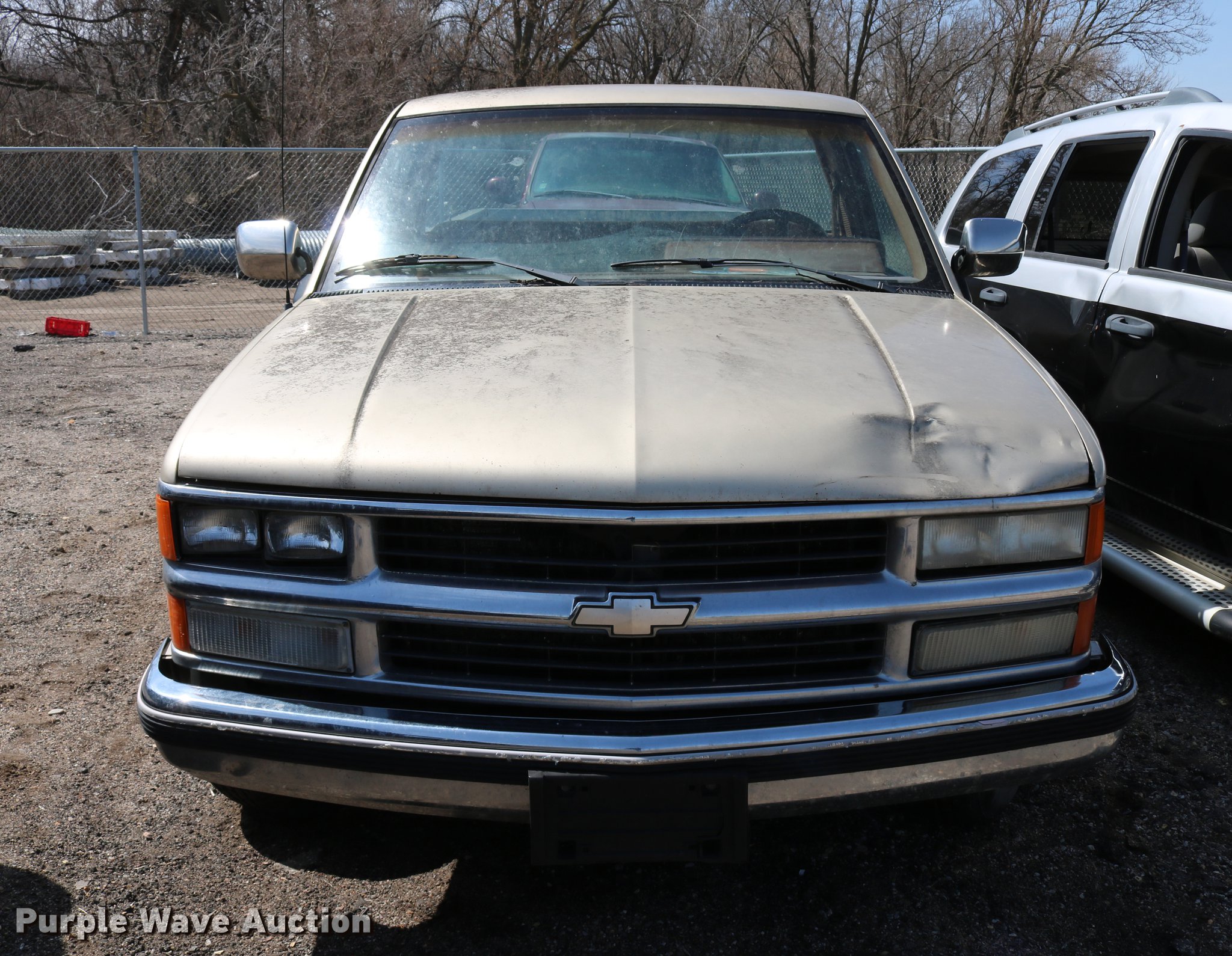 Purple Wave is selling a used 1/2 Ton Pickup or Van in Kansas. This item is a 1989 Chevrolet 1500 pickup truck with the following: 136,833 miles on odometer, 5.7L V8 OHV 16V gas engine, Four speed manual transmission, AC and heat, Tilt, Cruise, AM/FM, Cloth interior, Long bed, Receiver hitch, Trailer wiring, 235/75R15 tires, Drivers door will not open/close correctly, No keys, Unknown operating condition