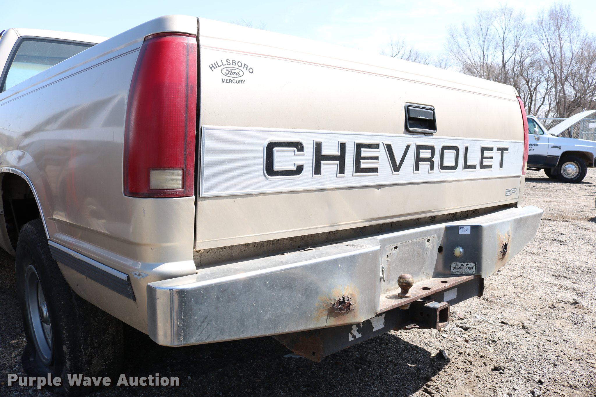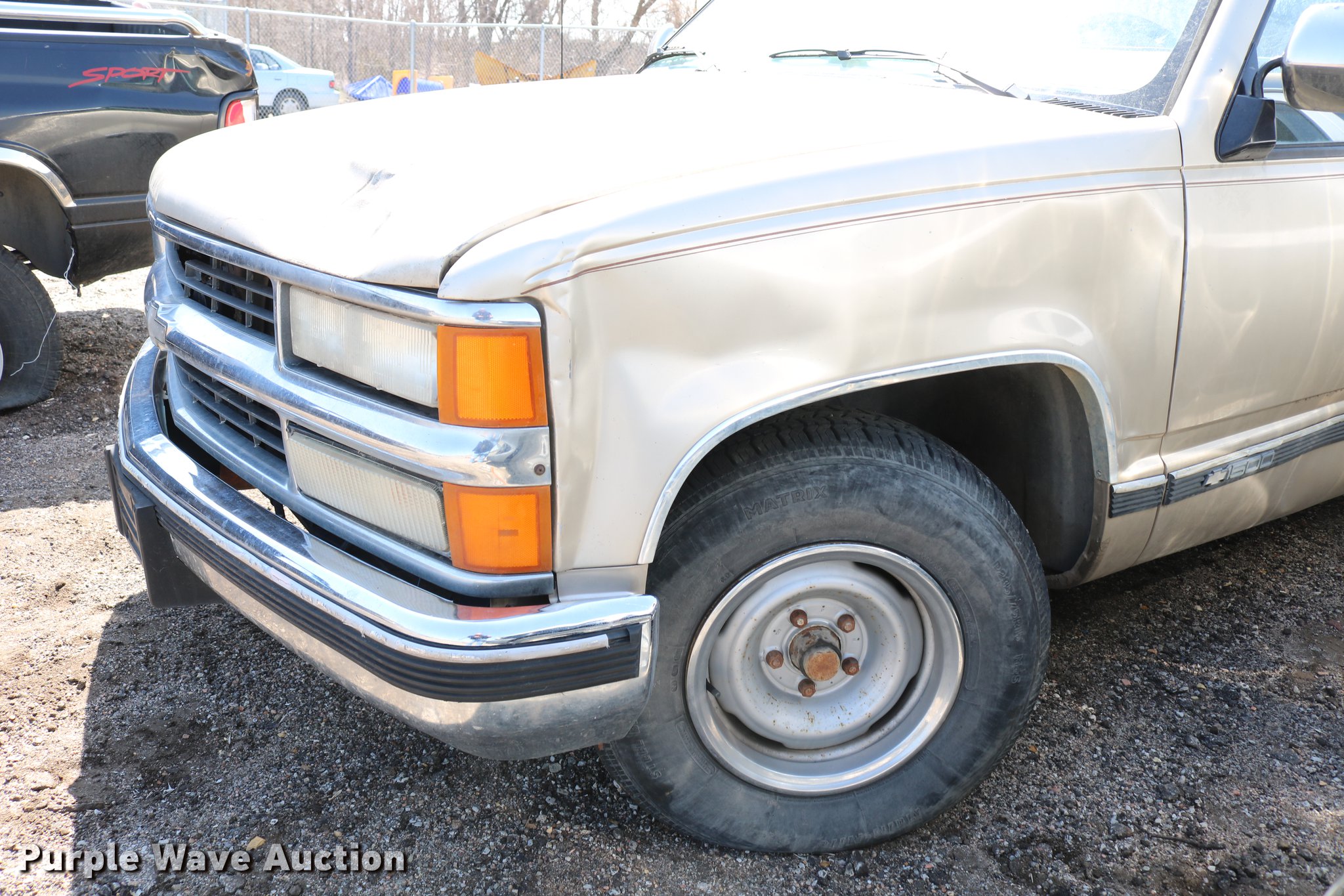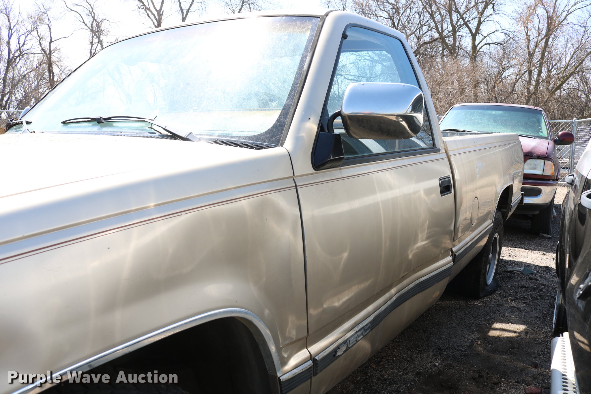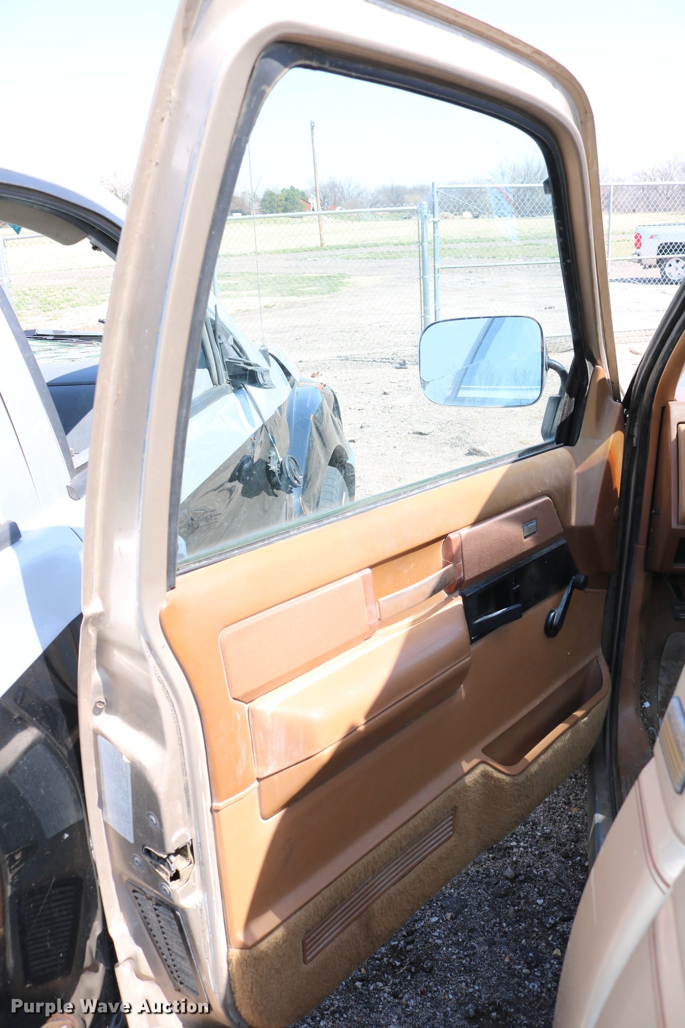 Purple Wave is selling a used 1/2 Ton Pickup or Van in Kansas. This item is a 1989 Chevrolet 1500 pickup truck with the following: 136,833 miles on odometer, 5.7L V8 OHV 16V gas engine, Four speed manual transmission, AC and heat, Tilt, Cruise, AM/FM, Cloth interior, Long bed, Receiver hitch, Trailer wiring, 235/75R15 tires, Drivers door will not open/close correctly, No keys, Unknown operating condition