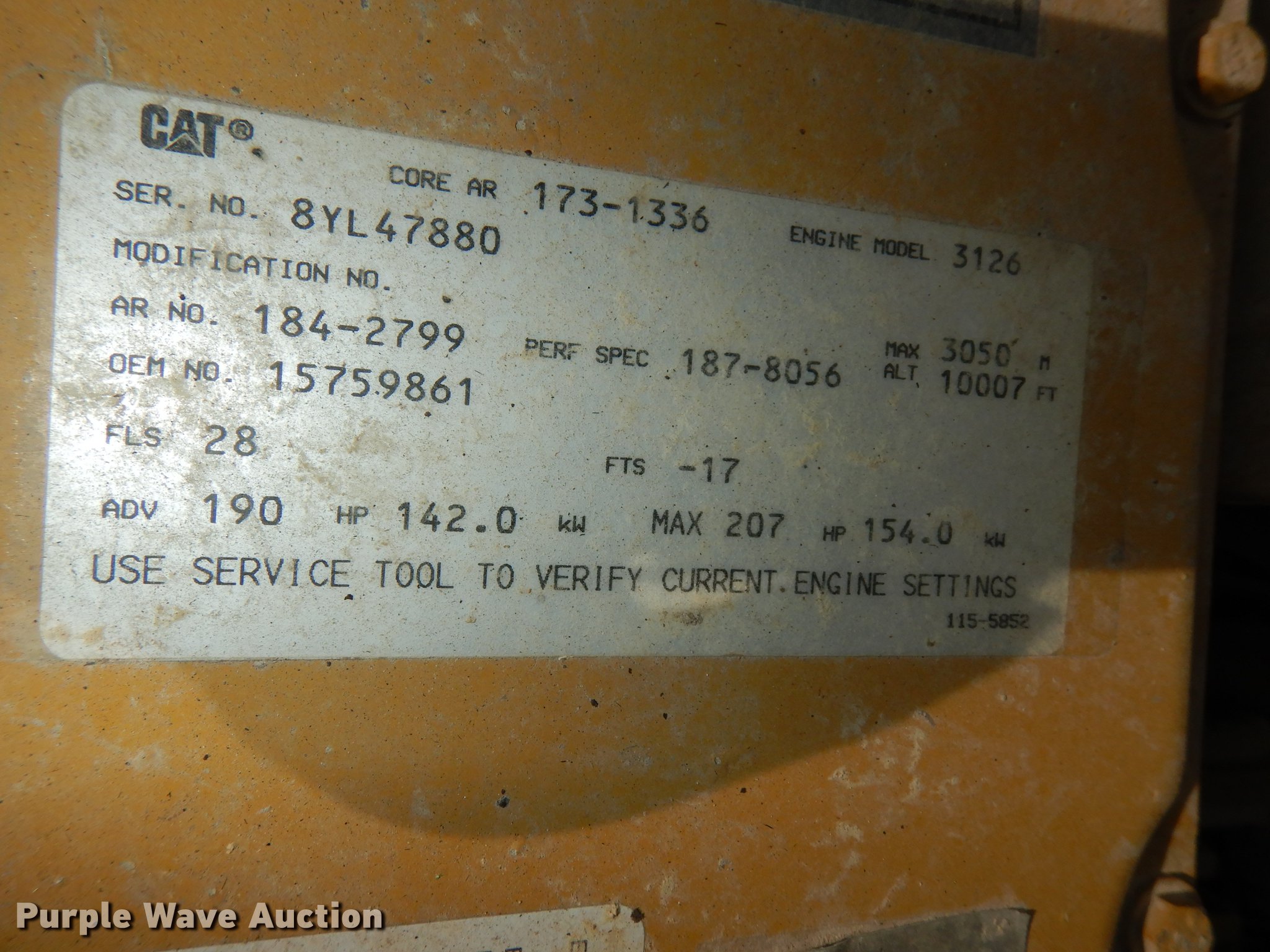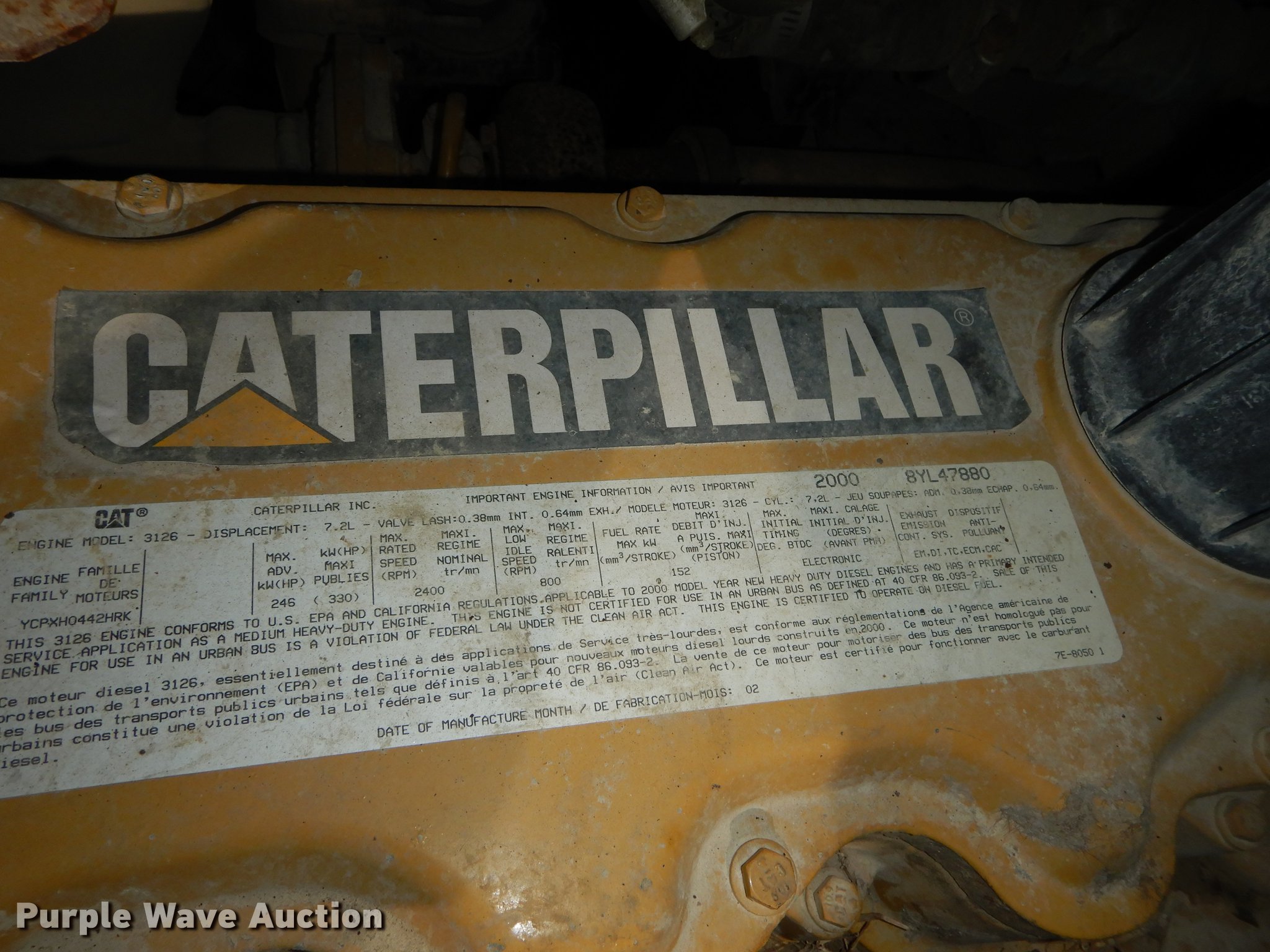 • Caterpillar 3126 7.2L L6 turbo diesel engine