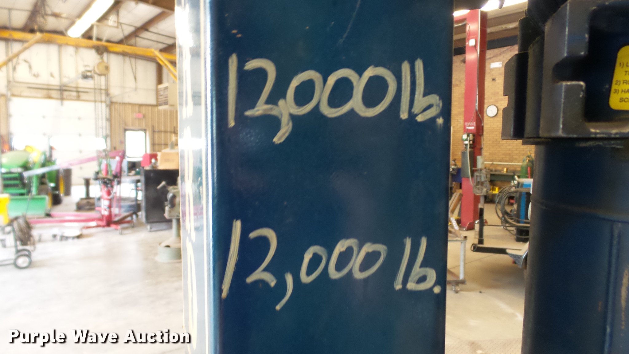 Purple Wave is selling a used Tools in Kansas. This item is a Forward 12000LF four post vehicle lift with the following: Approx. 206"L x 133"W, 12'L x 7'W ramps, Doerr electric motor, 2 HP, 220V, Single phase, 12,000 lbs capacity, (2) air jacks, Air hose not included, Serial 020DF8245