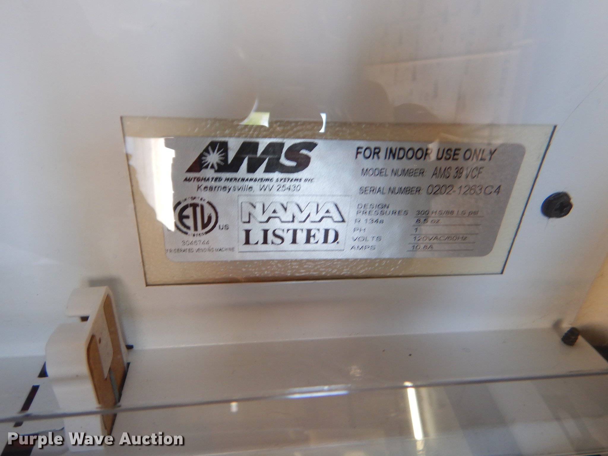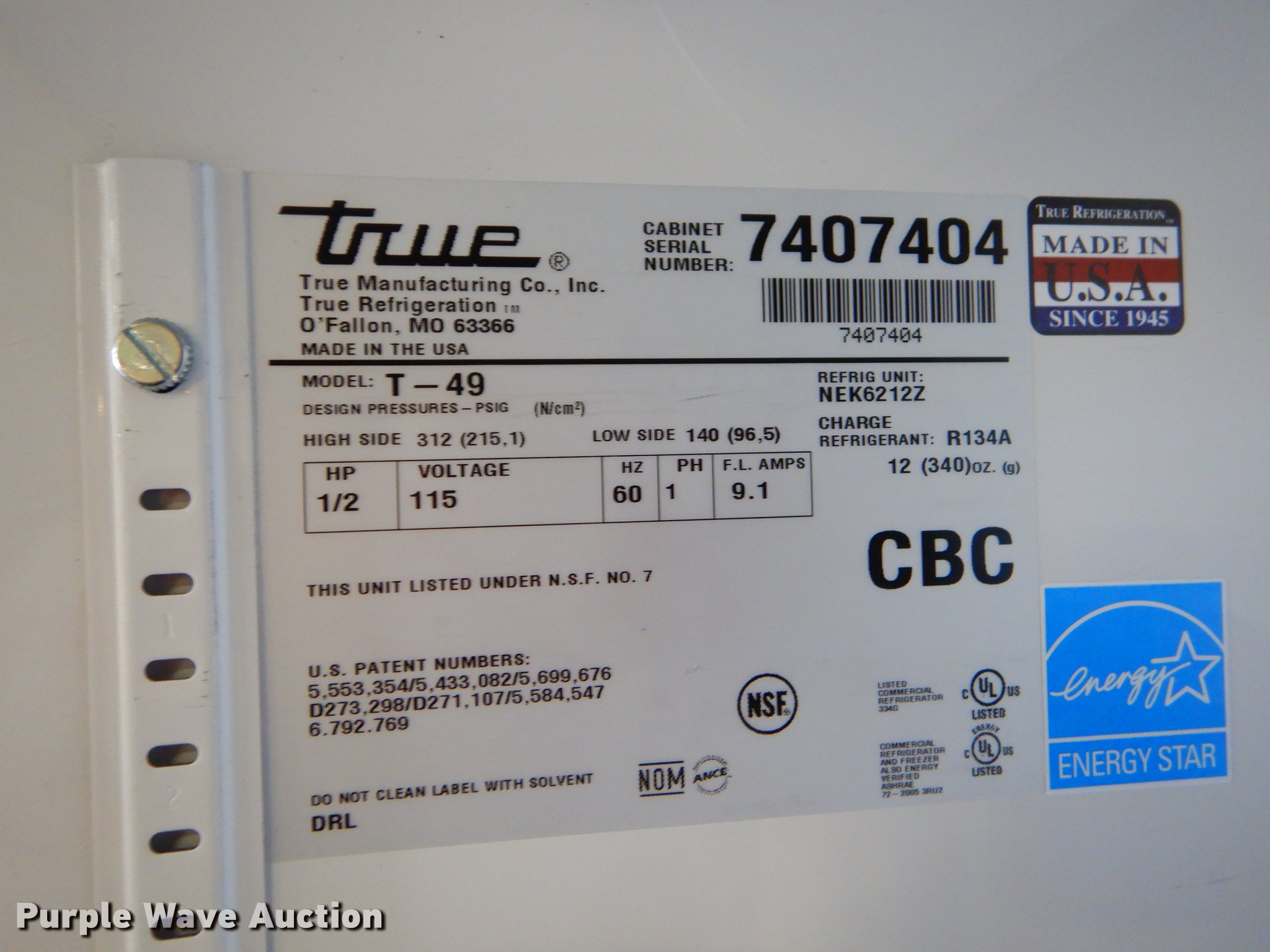 Purple Wave is selling a used Appliances in Kansas. This item is a Appliances with the following: True refrigerator, Model T-49, 54" x 30" x 83", Two doors, No racks included, Possible compressor issues, may be inoperable, Serial 7407404, AMS vending machine, Model AMS39VCF, 38.5" x 36" x 72", Possible compressor issues, may be inoperable, Serial 0202-1263C4