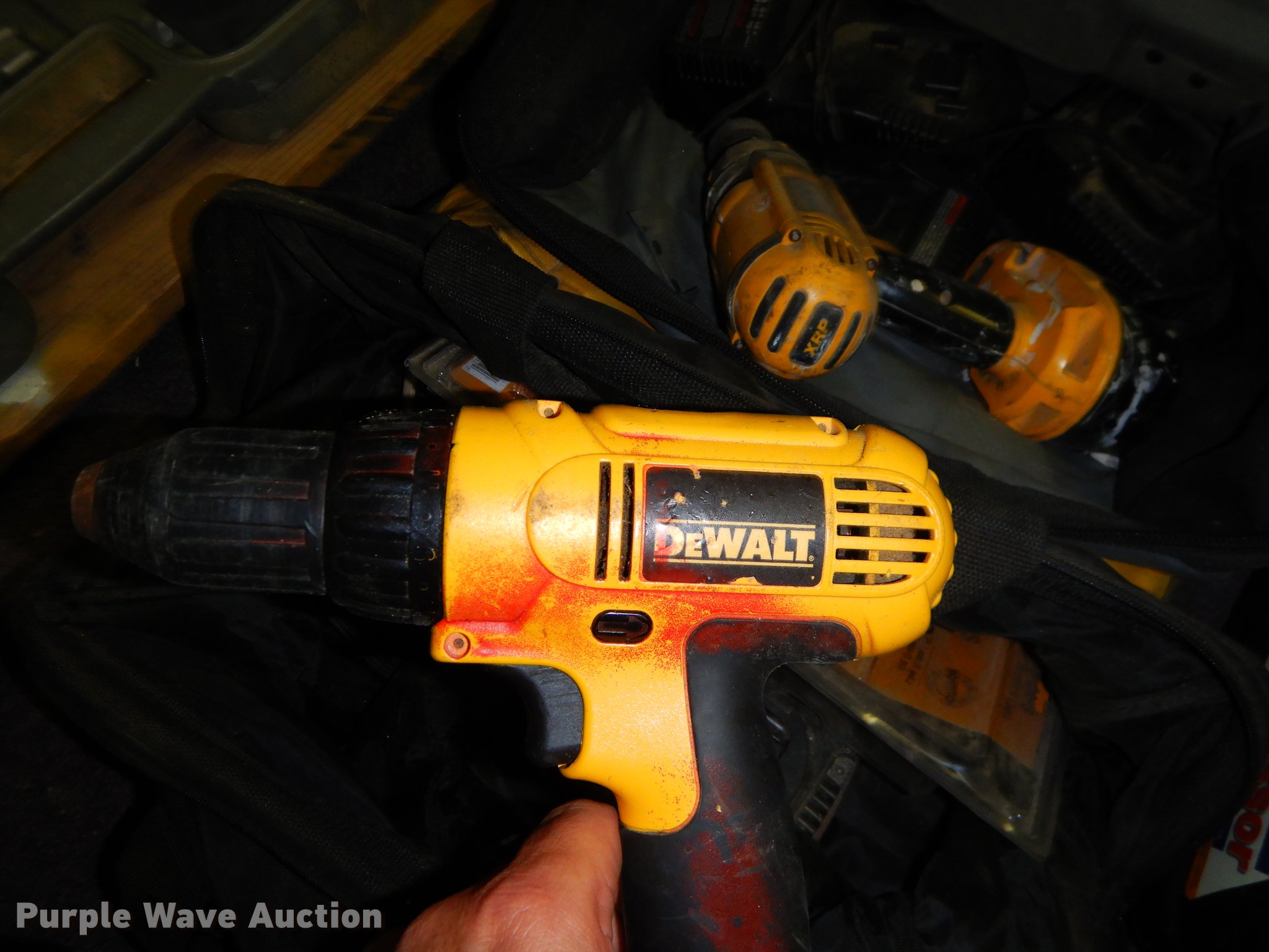 Purple Wave is selling a used Tools in Kansas. This item is a Tools with the following: Automotive diagnostic analyzer, Memory card missing, DeWalt power tools, Non-operational units, Triton power tools, Non-operational units, Porter Cable power tools, Non-operational units, Senco power tools, Non-operational units, (2) hydraulic jacks