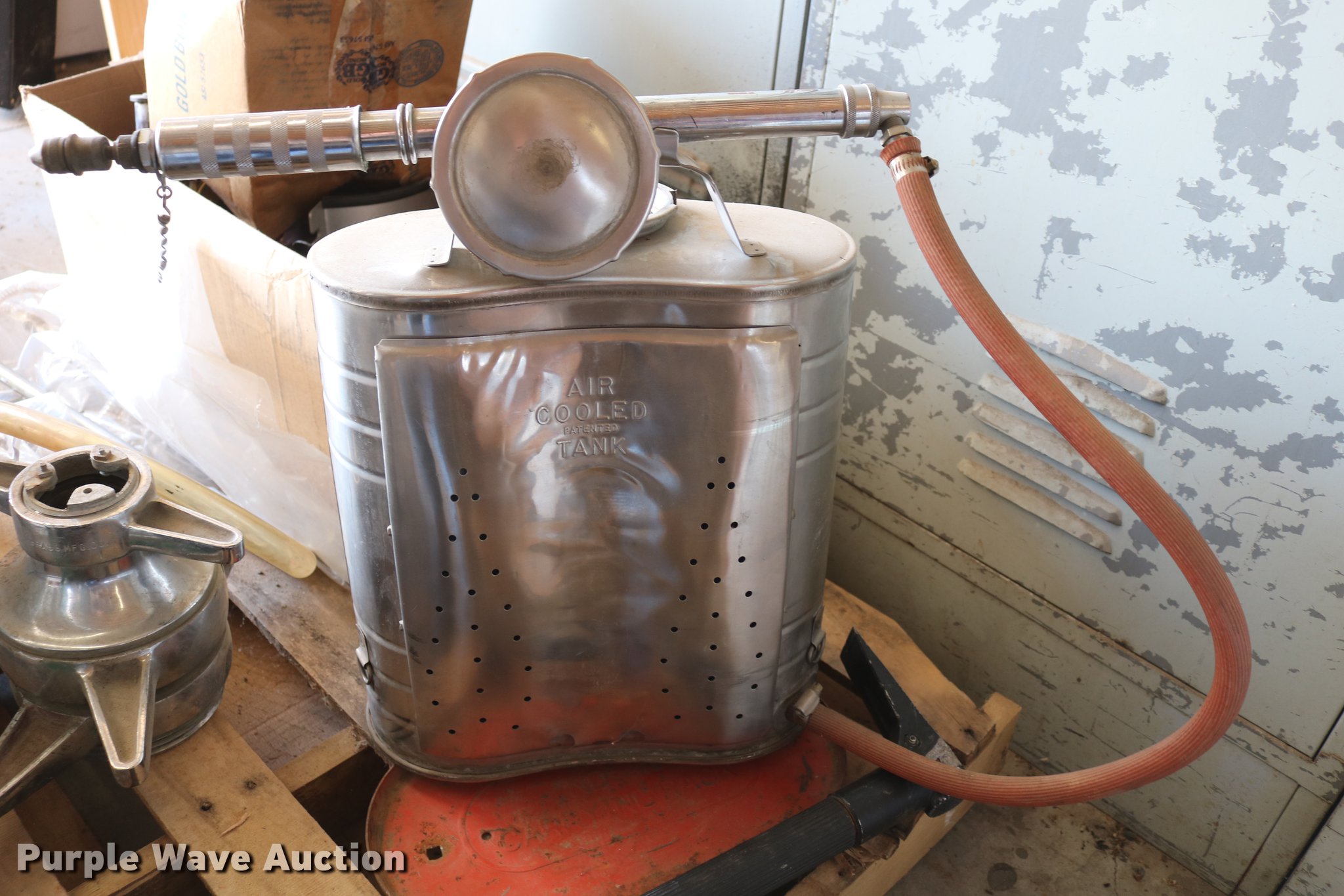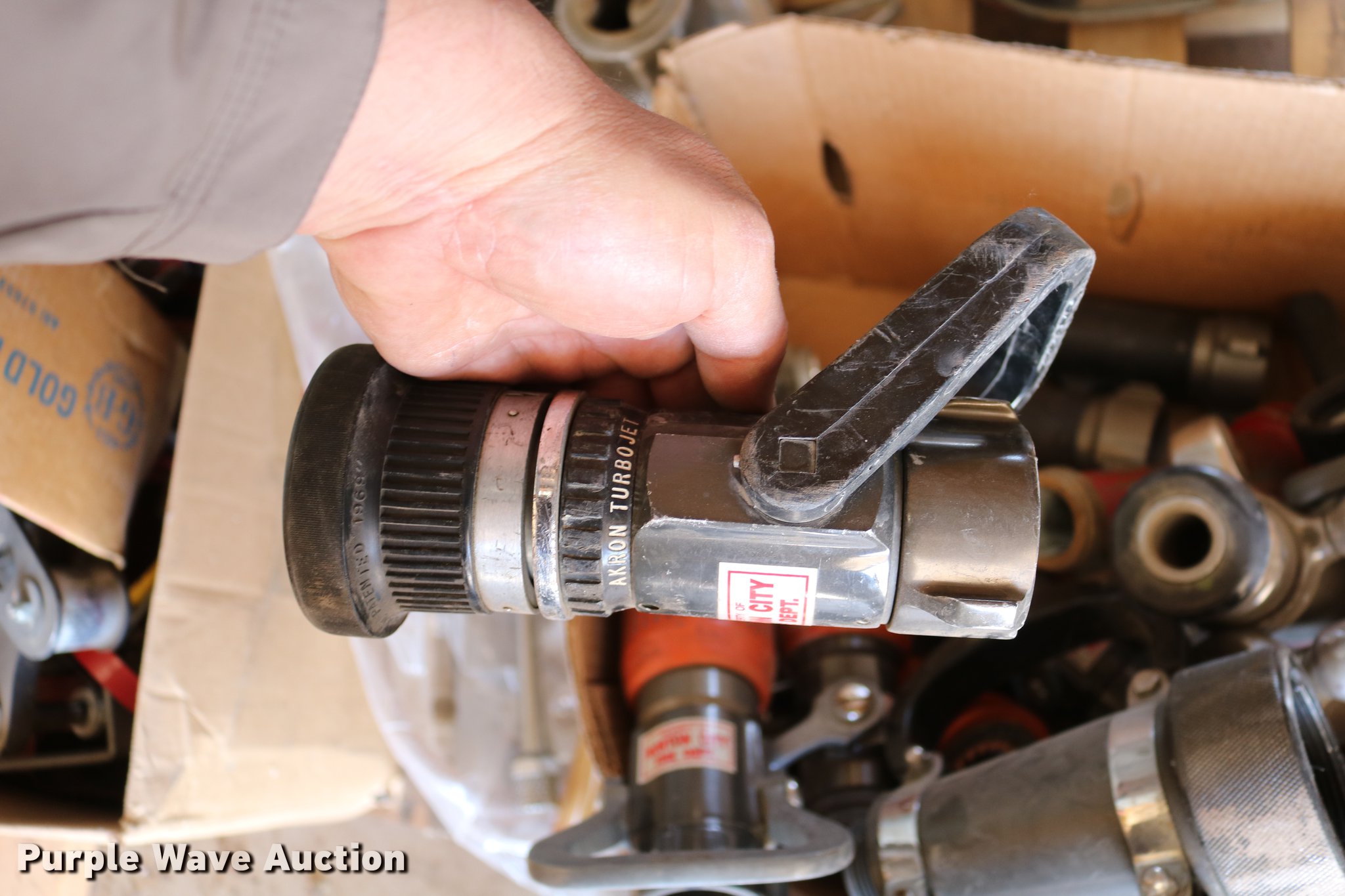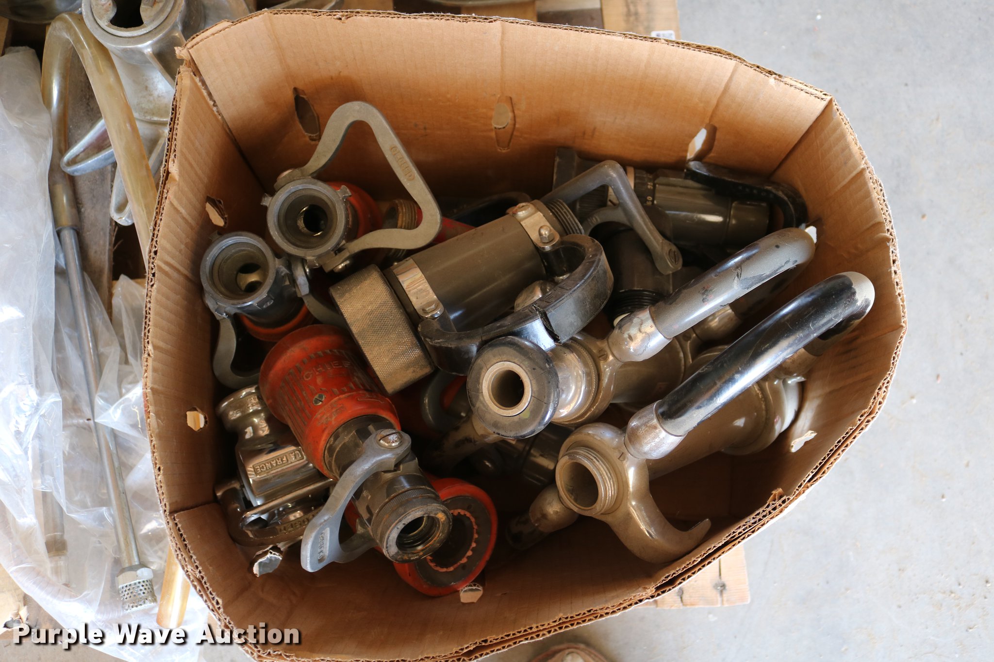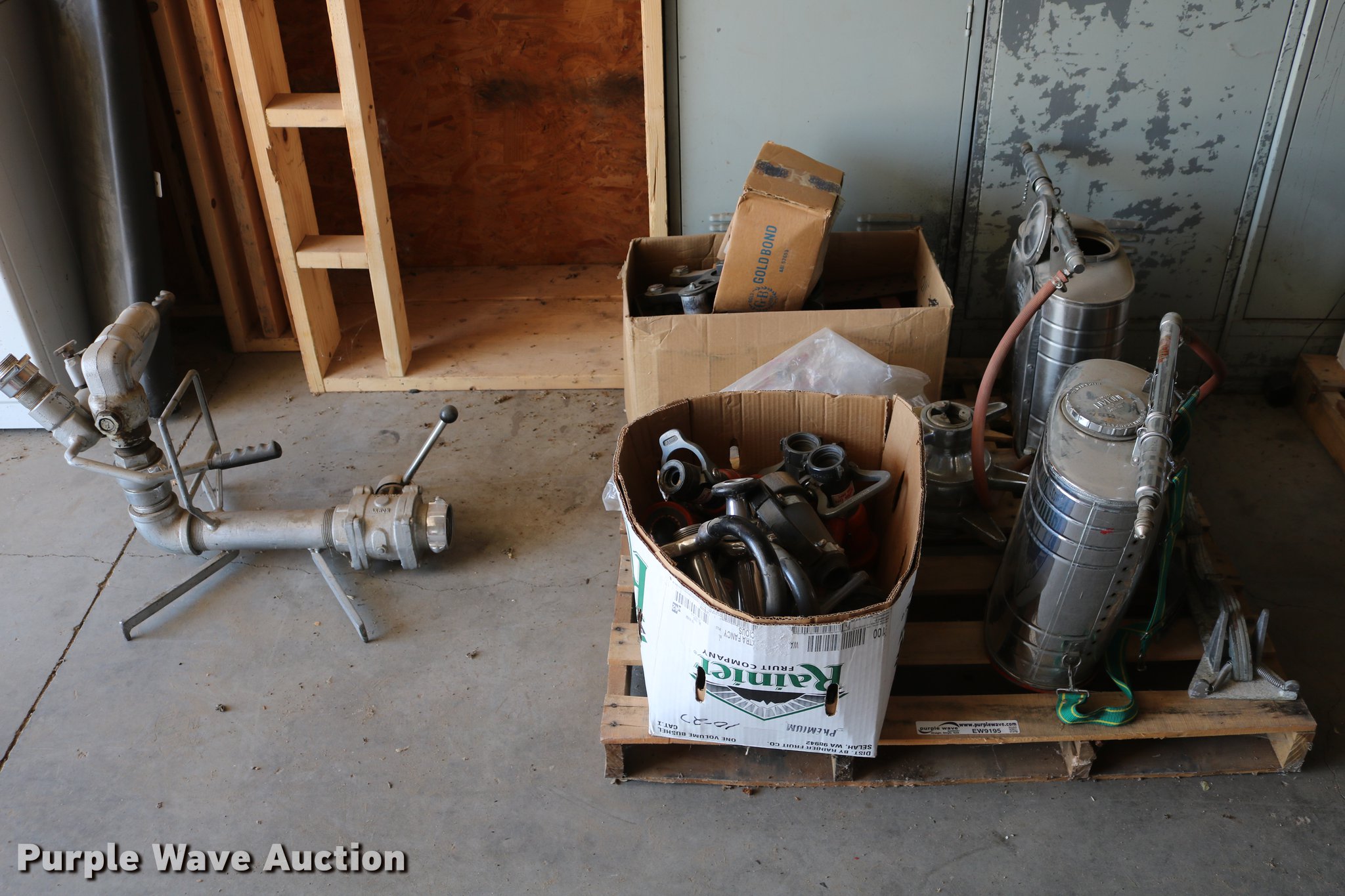 Purple Wave is selling a used Tools in Kansas. This item is a (2) Indian fire pumps with the following: Assorted fire nozzles, Assorted fire extinguisher brackets, Akron ground monitor