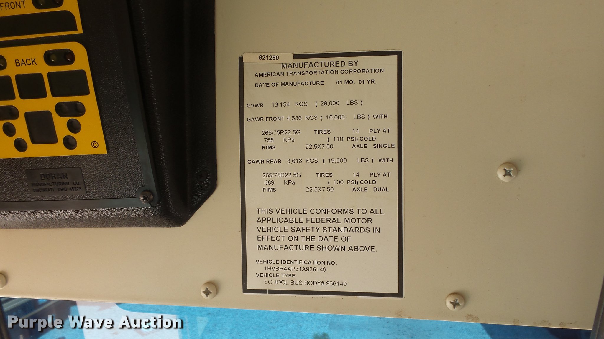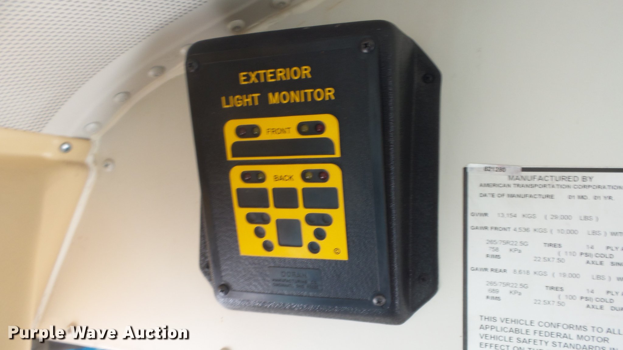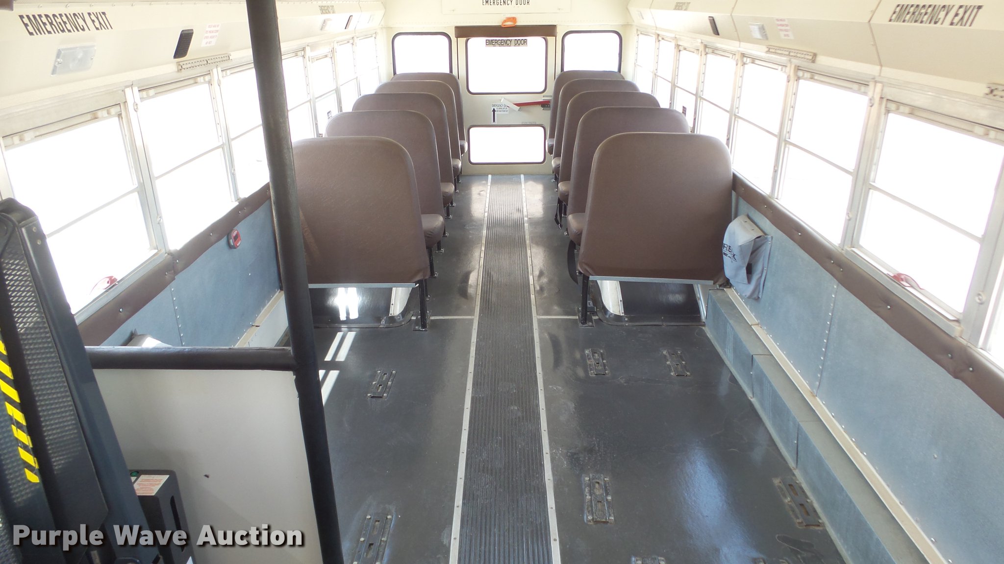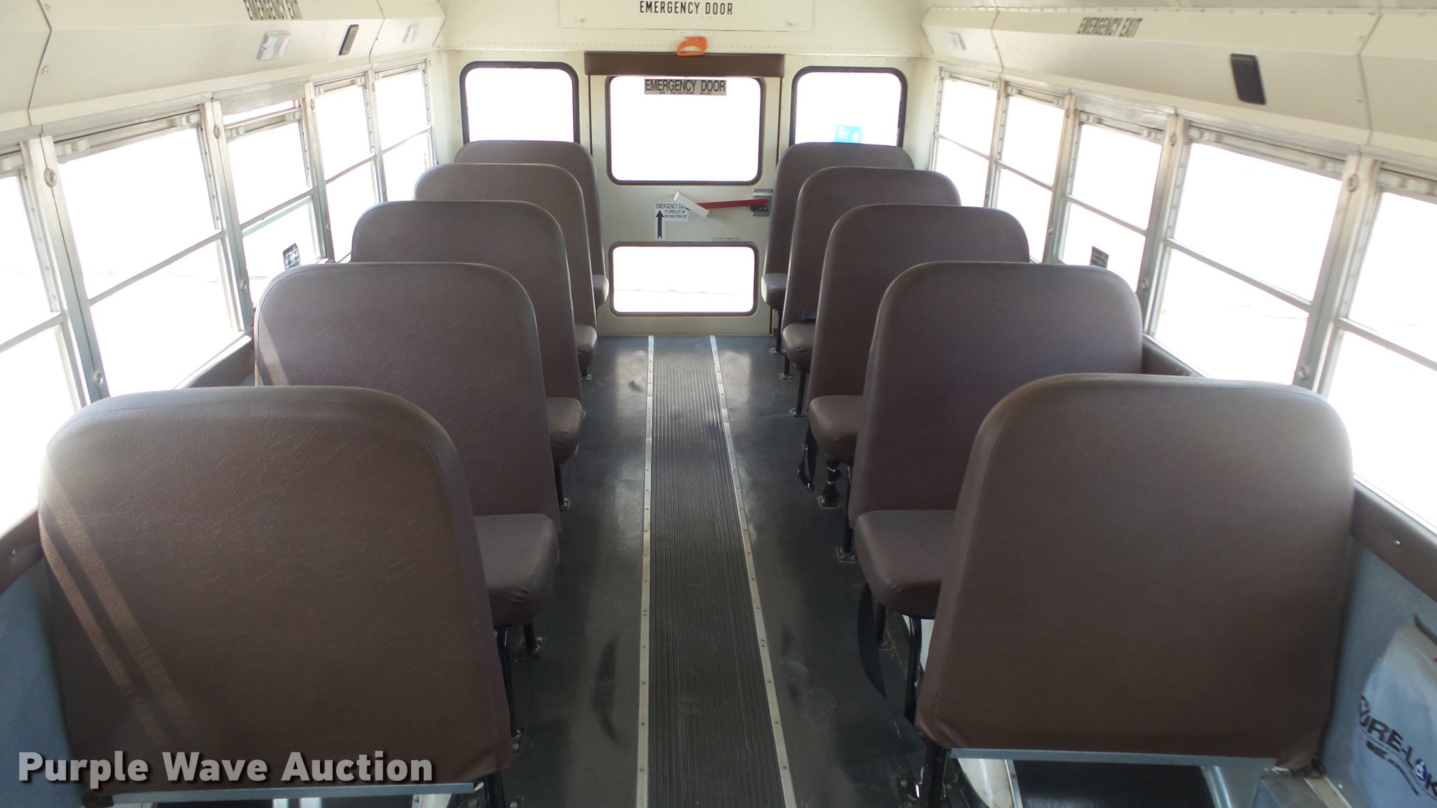 Purple Wave is selling a used Bus in Kansas. This item is a 2001 International school bus with the following: 74,495 miles on odometer, 4,004 hours on meter, International DT466 7.6L L6 diesel engine, Automatic transmission, Heat, Vinyl interior, Ricon S5003-T10000000 wheelchair lift, Hydraulic brakes, 11R22.5 tires