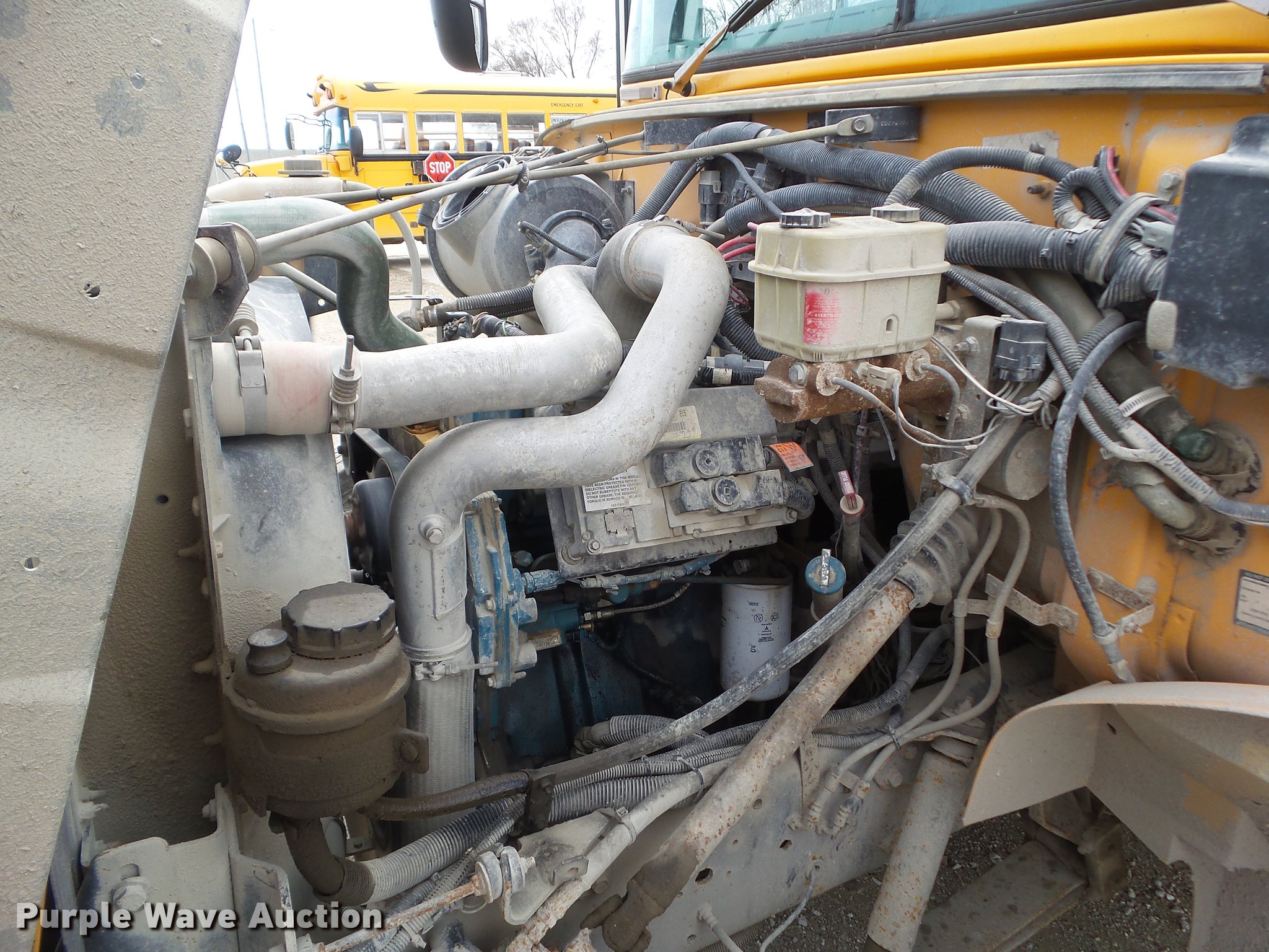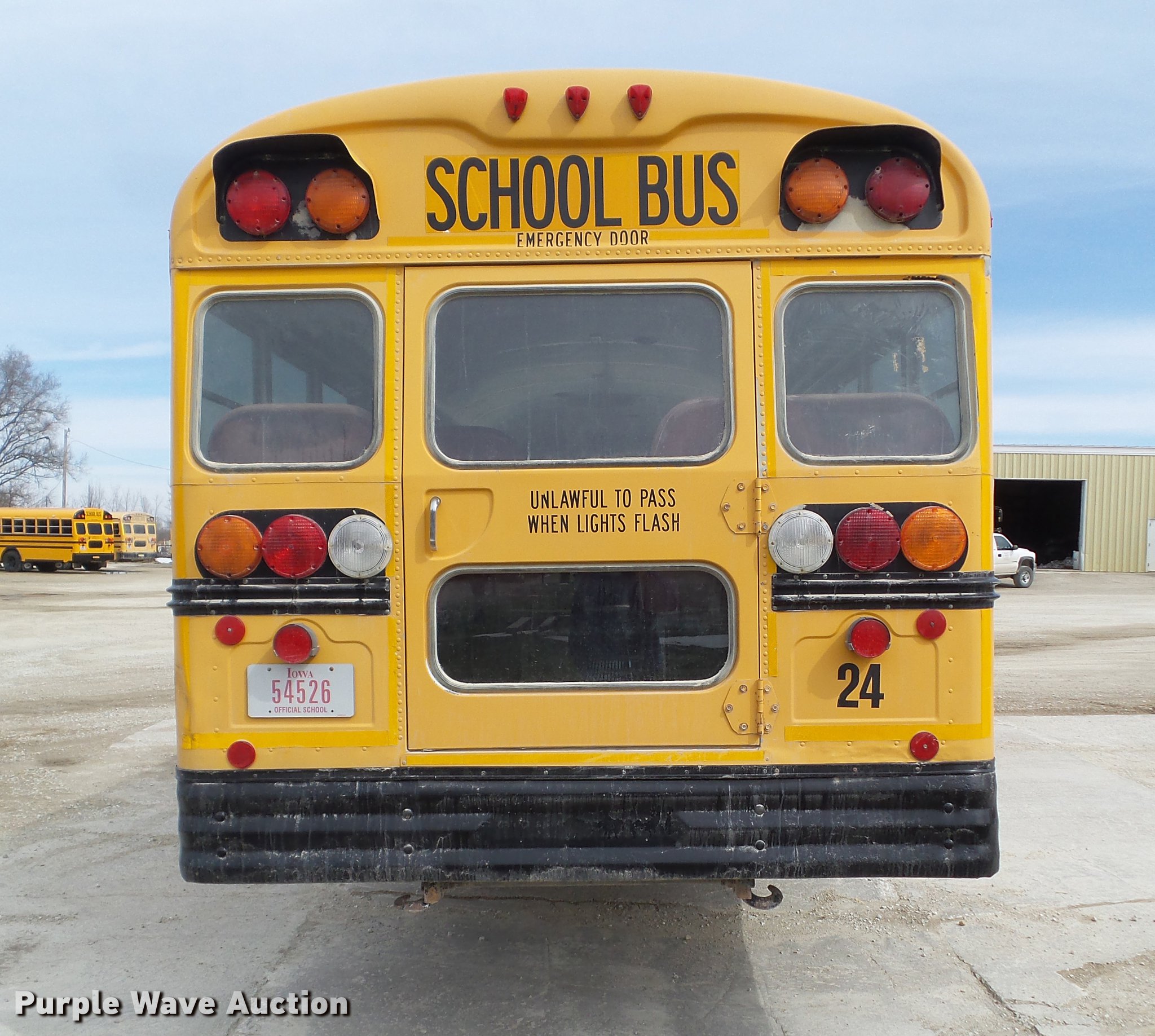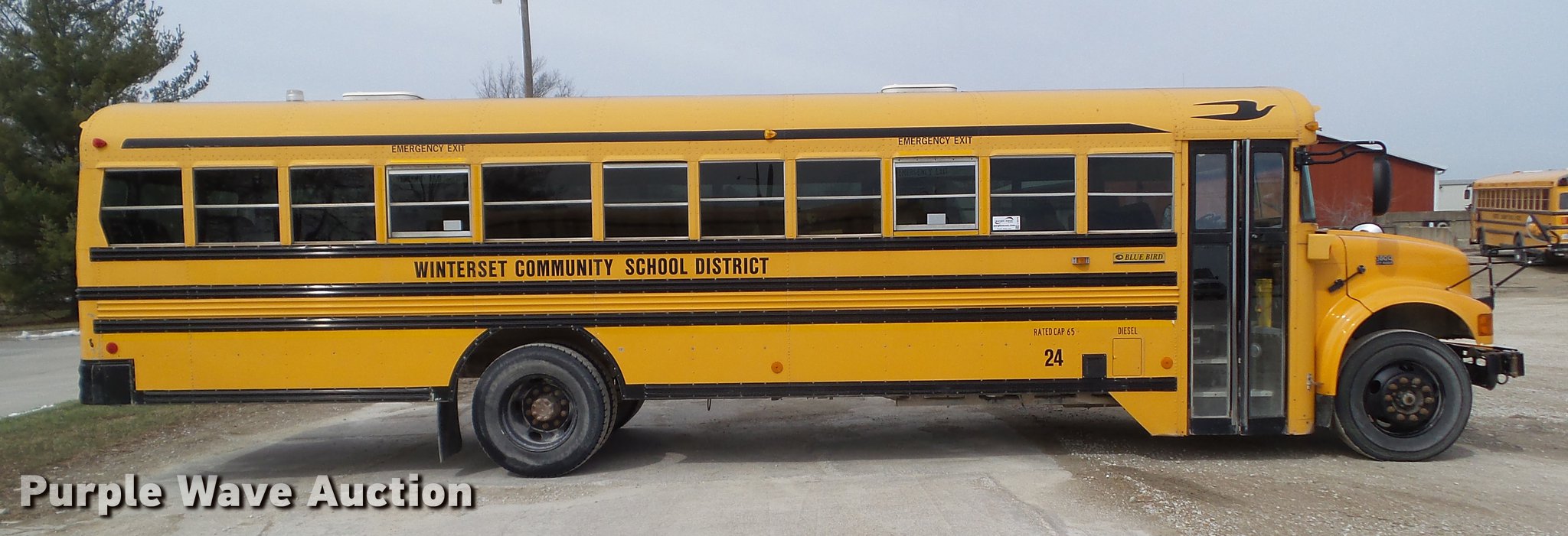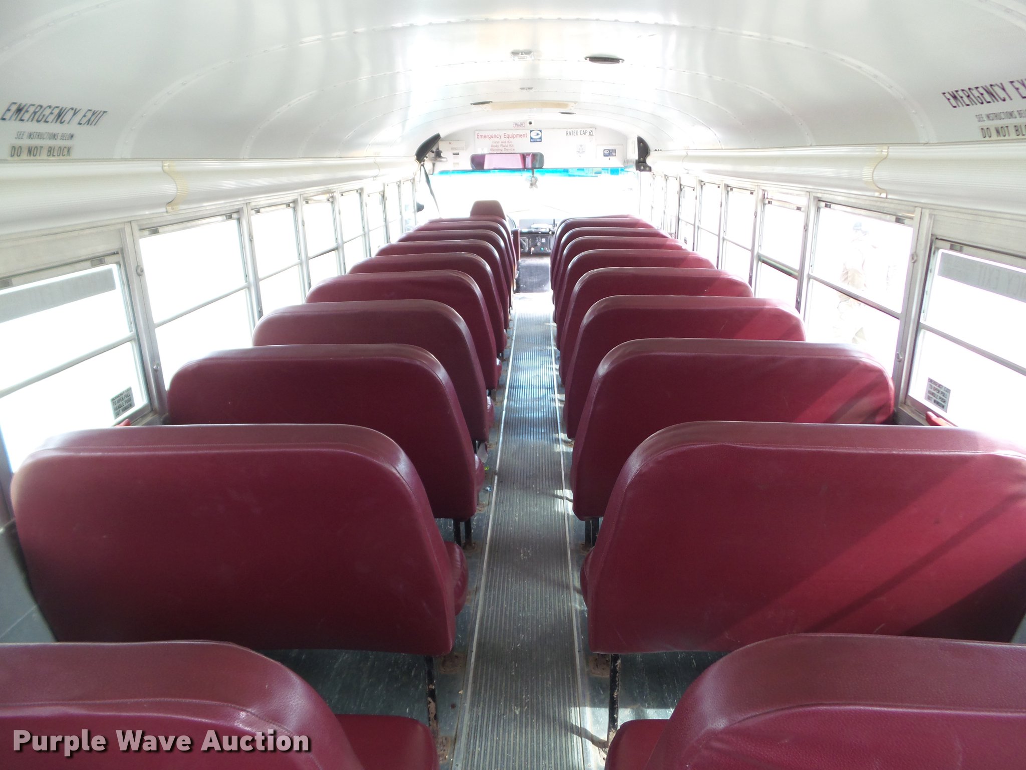 Purple Wave is selling a used Bus in Iowa. This item is a 2003 International 3800 Blue Bird CV600S school bus with the following: 162,925 miles on odometer, 7,268 hours on meter, Miles and hours may vary, still in use, International CL215 7.4L six cylinder turbo diesel engine, 215 HP, Automatic transmission, Single axle, Heat, AM/FM/cassette, Heated mirrors, Suspension seat, 65 passenger capacity, Ceiling, rear, and side emergency exits, Block heater, Backup alarm, Front and rear tow hooks, Spring suspension, Hydraulic brakes, 10R22.5 tires, GVWR 27,500 lbs, Cameras and two-way radio not included, Fire extinguisher and first aid kits not included, Engine issues, possible head gasket issues, Water in oil