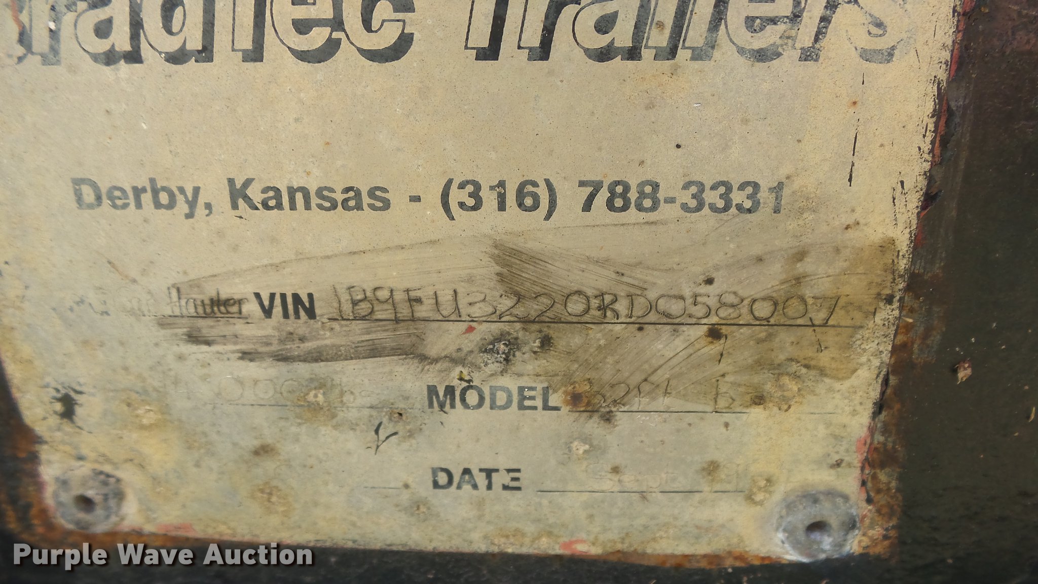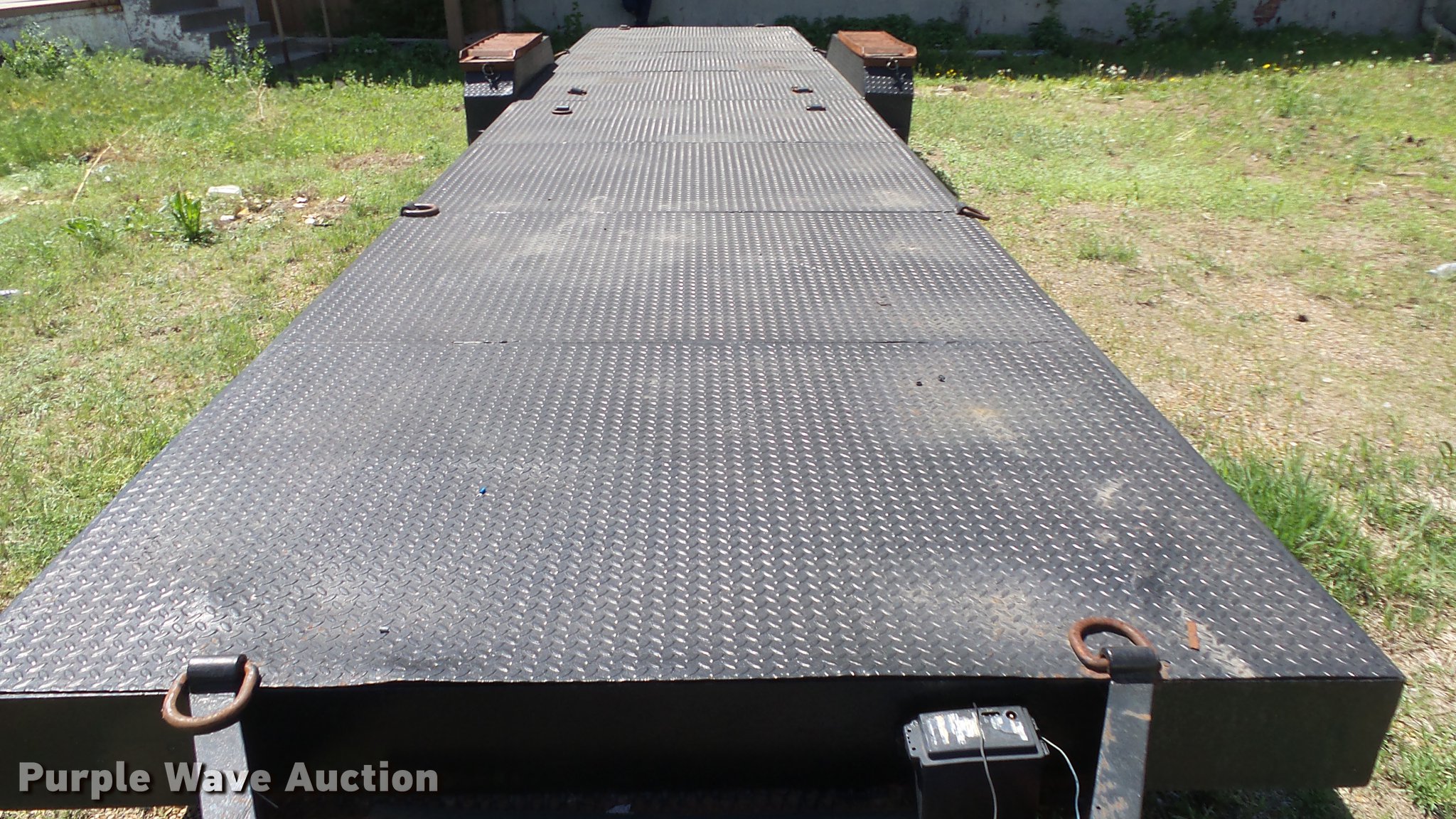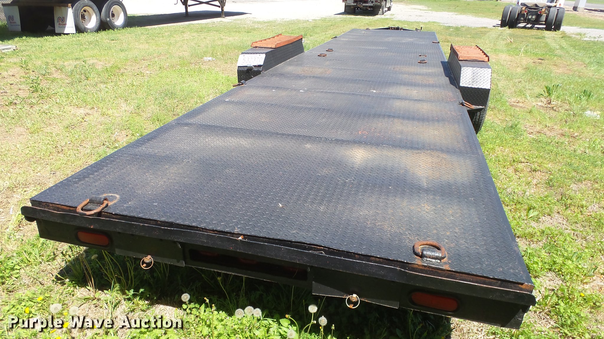 Purple Wave is selling a used Car or Utility Trailer in Kansas. This item is a 1994 Bradtec utility trailer with the following: 32'L x 79"W steel deck, 6'L x 11"W ramps, D-ring tie downs, Two car capacity, Full fenders, Pintle hitch, Tandem axle, 225/75R16 tires