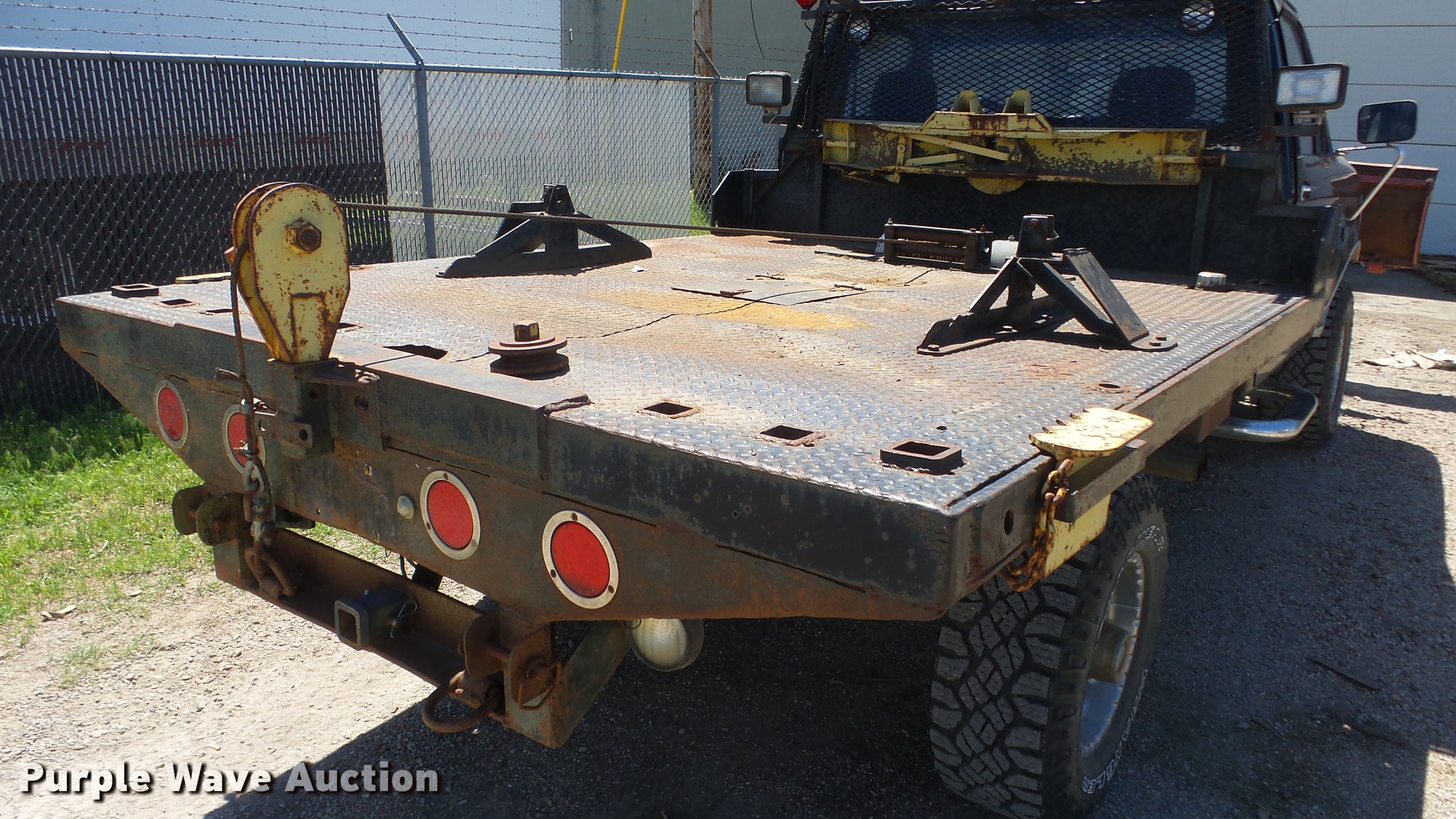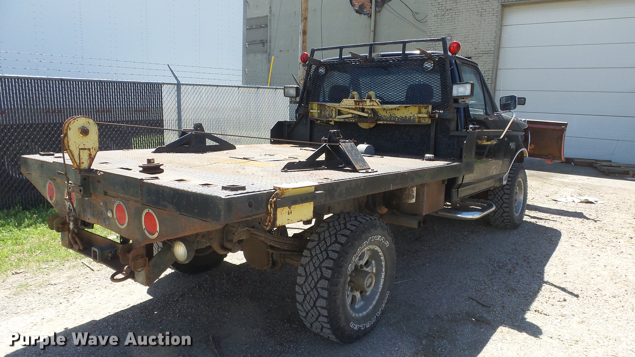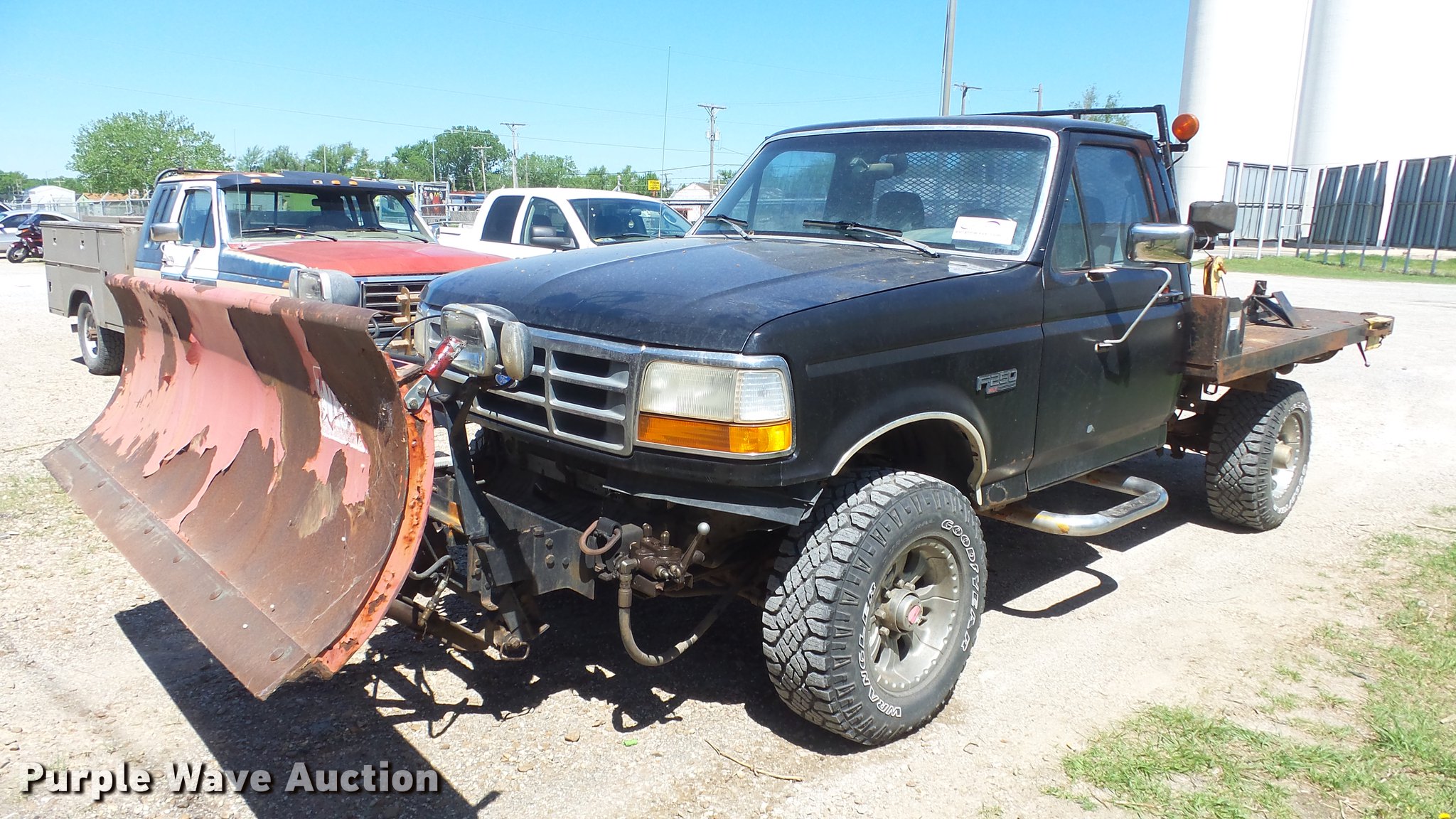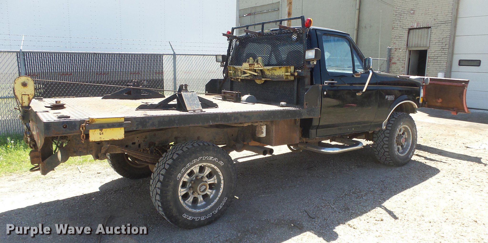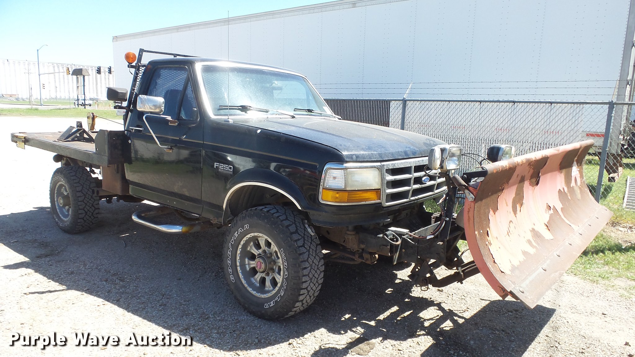 Purple Wave is selling a used 3/4 or 1 Ton Pickup or Van in Kansas. This item is a 1993 Ford F250 flatbed pickup truck with the following: 88,294 miles on odometer, Actual mileage unknown, 7.5L V8 VIH 16V gas engine, Five speed manual transmission, Four wheel drive, AC and heat, Tilt, Cruise, AM/FM/cassette, Power windows, locks, and mirrors, Cloth interior, Running boards, 8'8"L x 98"W flatbed, Ramsey winch, Front and rear hydraulics, 91"W snow plow, Receiver hitch, Trailer wiring, 285/70R17 tires