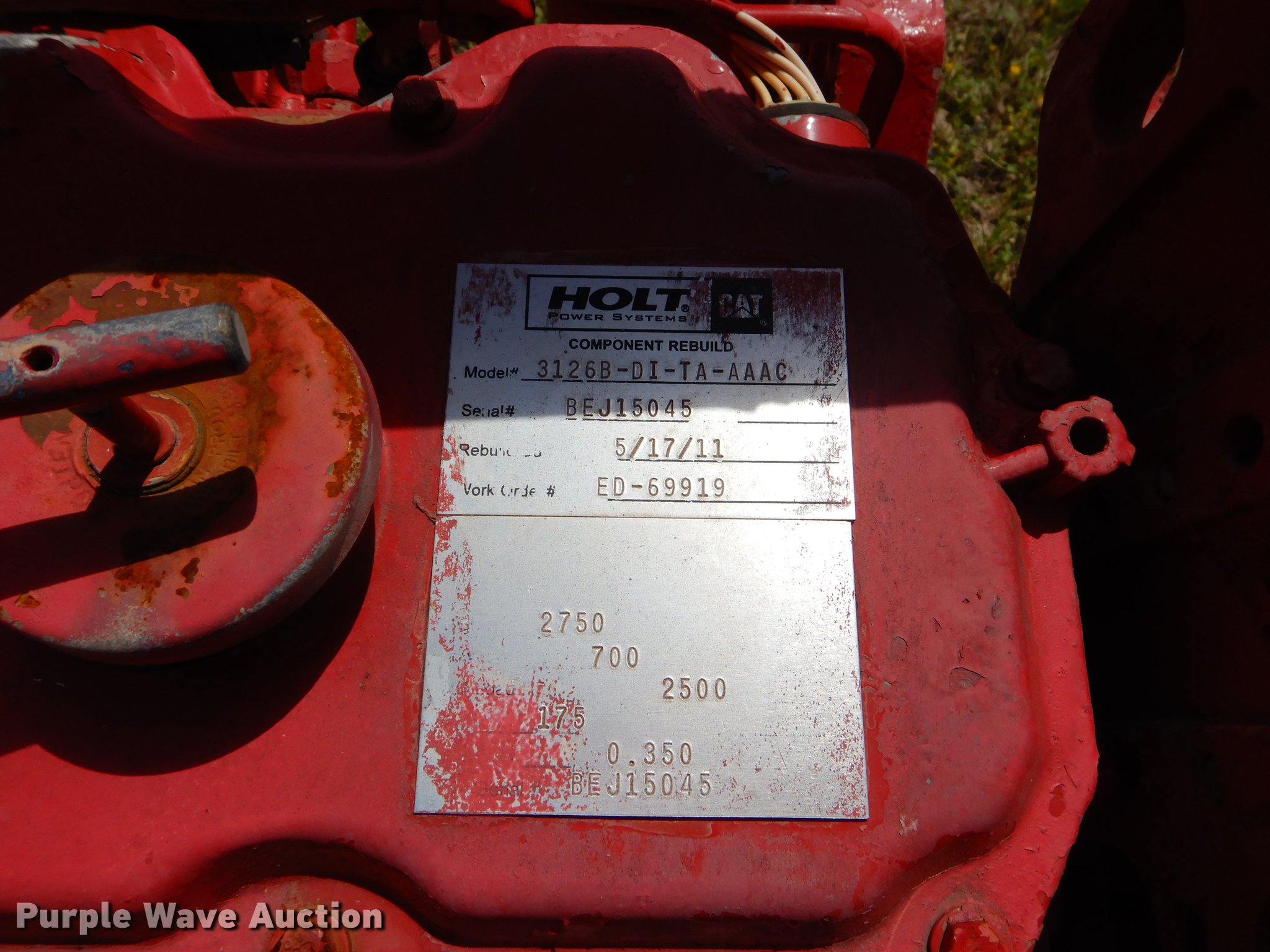Purple Wave is selling a used Engine in Oklahoma. This item is a Holt Caterpillar 3126B-DI-TA-AAAC six cylinder turbo diesel engine with the following: Unknown operating condition, Serial BEJ15045
