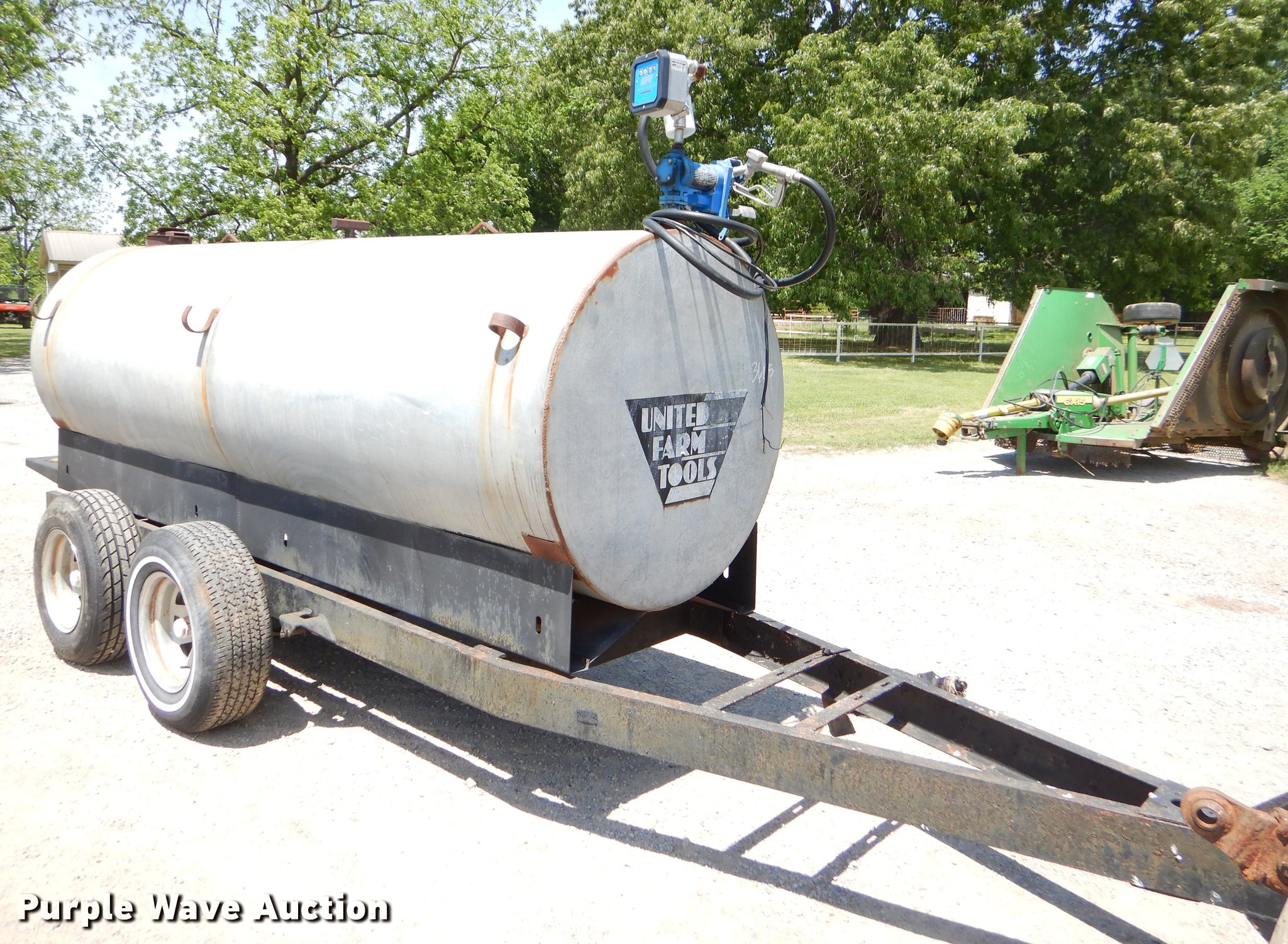 Purple Wave is selling a used Tank Trailer in Oklahoma. This item is a United Farm Tools fuel tank trailer with the following: 1,000 gallon capacity, GPI pump, Nozzles, Hoses, Pin hitch, Jack stand, Spring suspension, Tandem axle, 235/75R15 tires