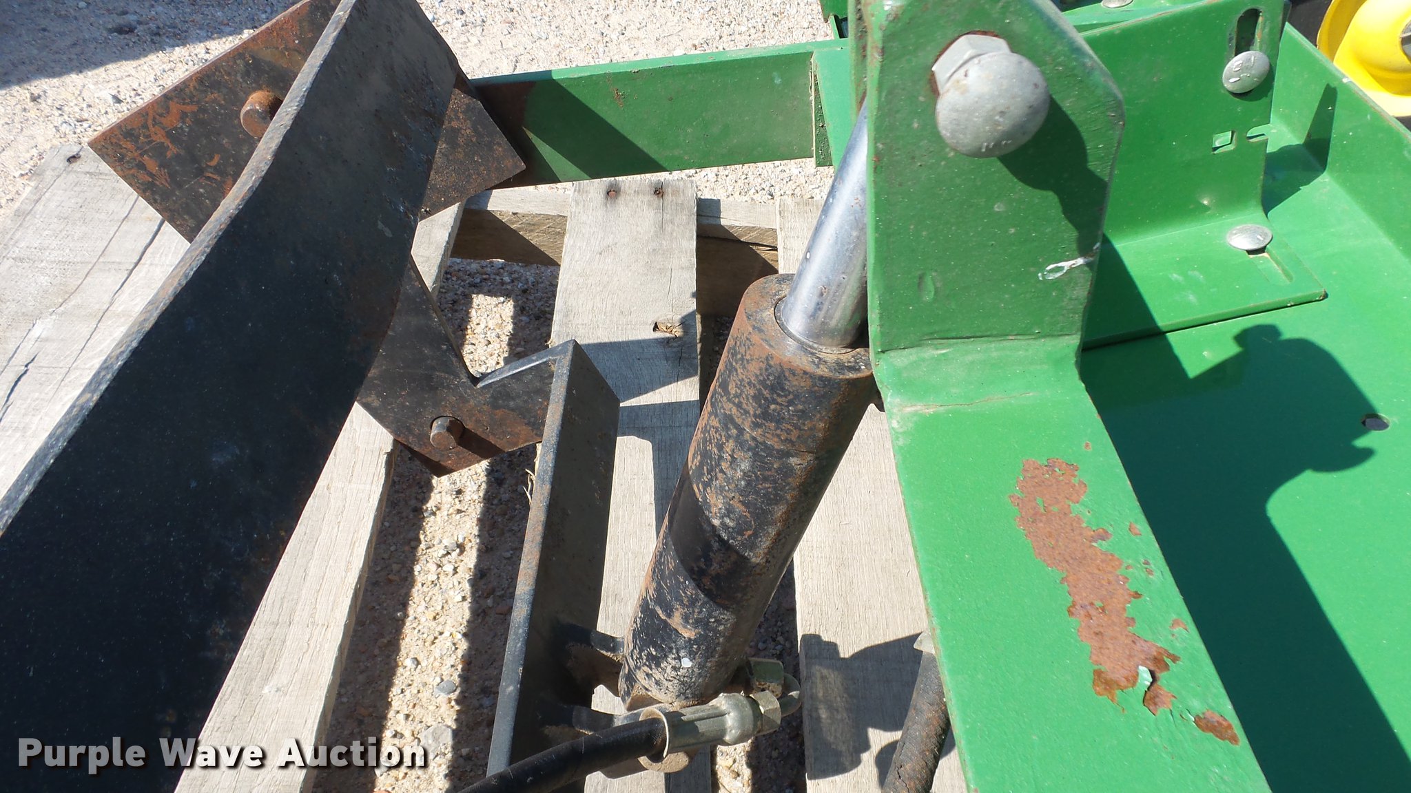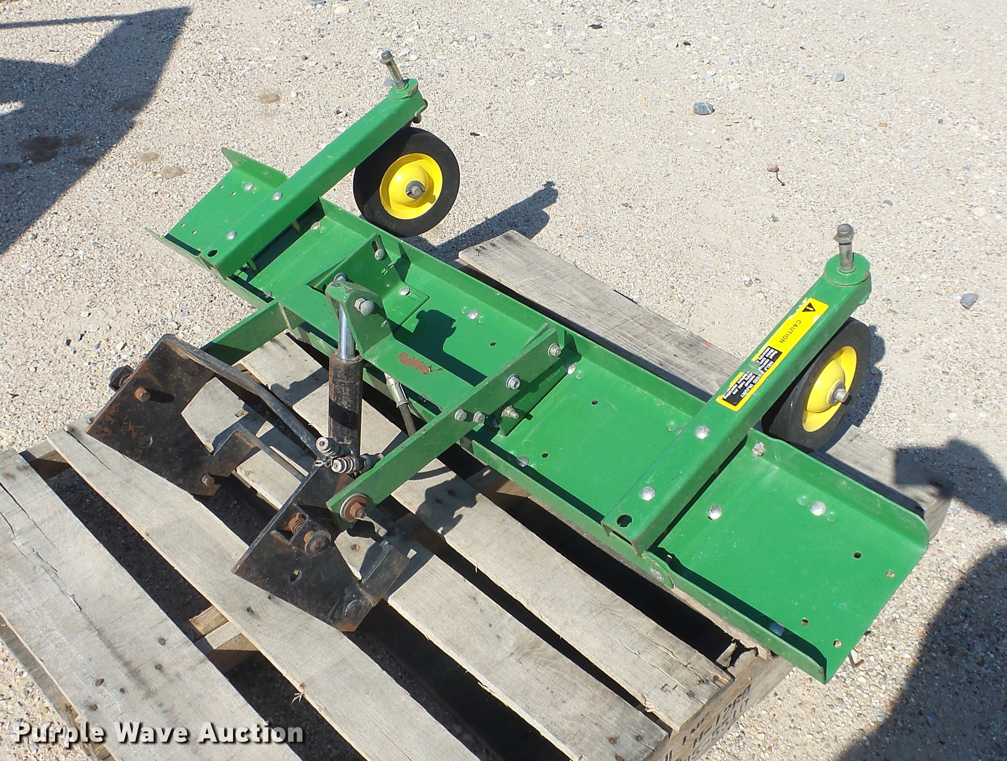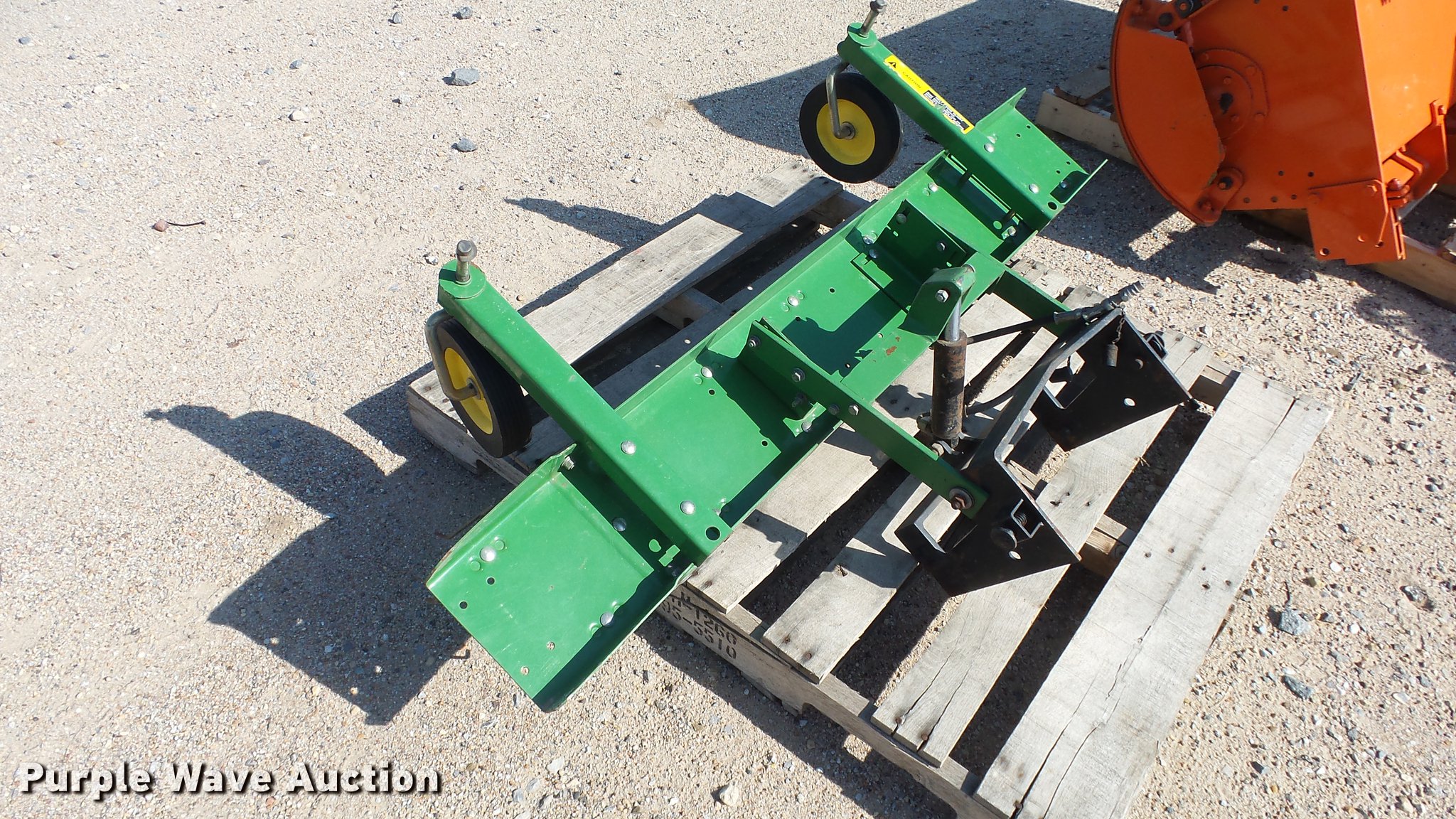 Purple Wave is selling a used Lawn and Garden in Kansas. This item is a John Deere thatcher with the following: 48"W, Spring tines, Mounting bracket, 8x1.75W wheels, Fits John Deere 18 series