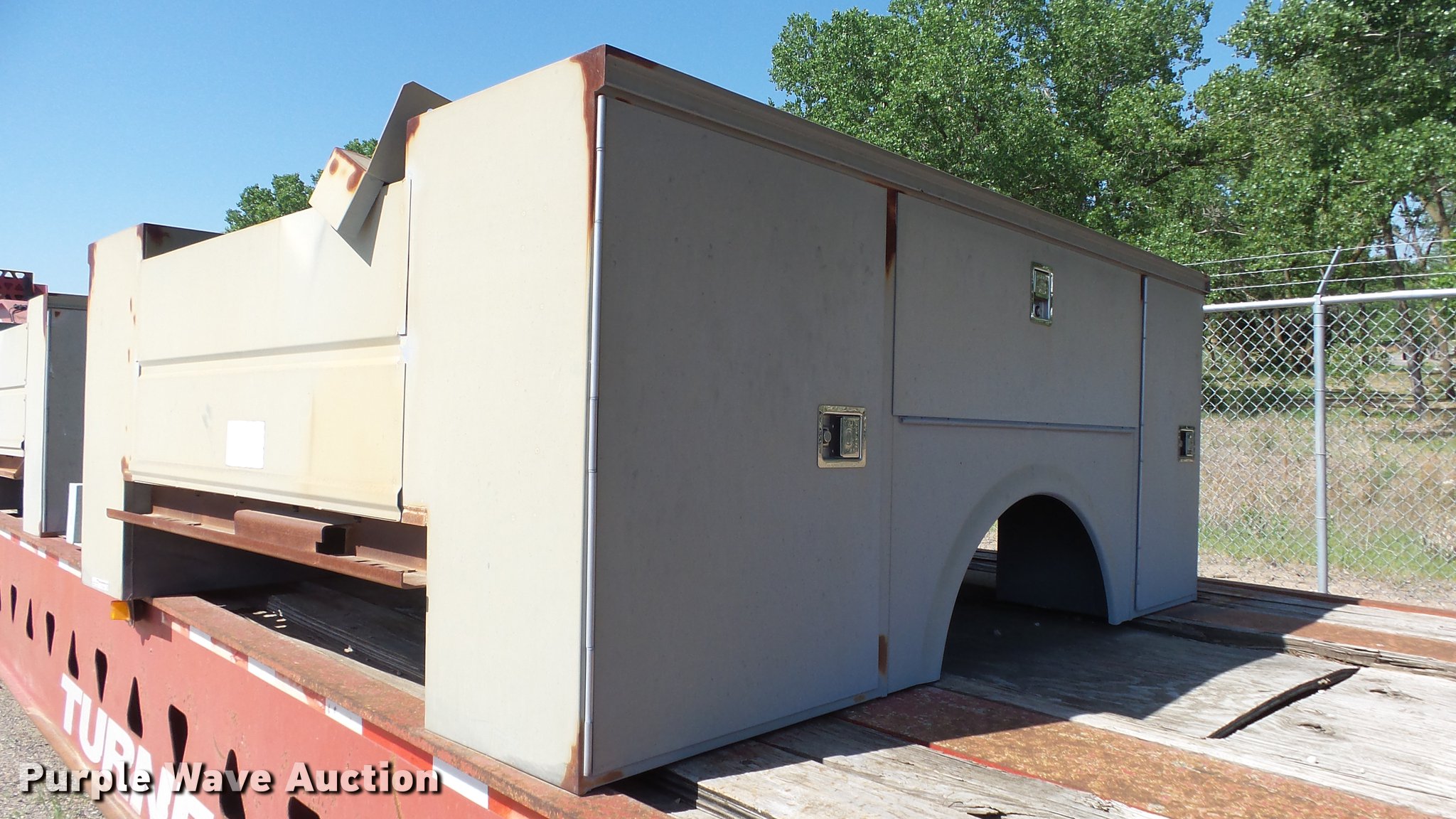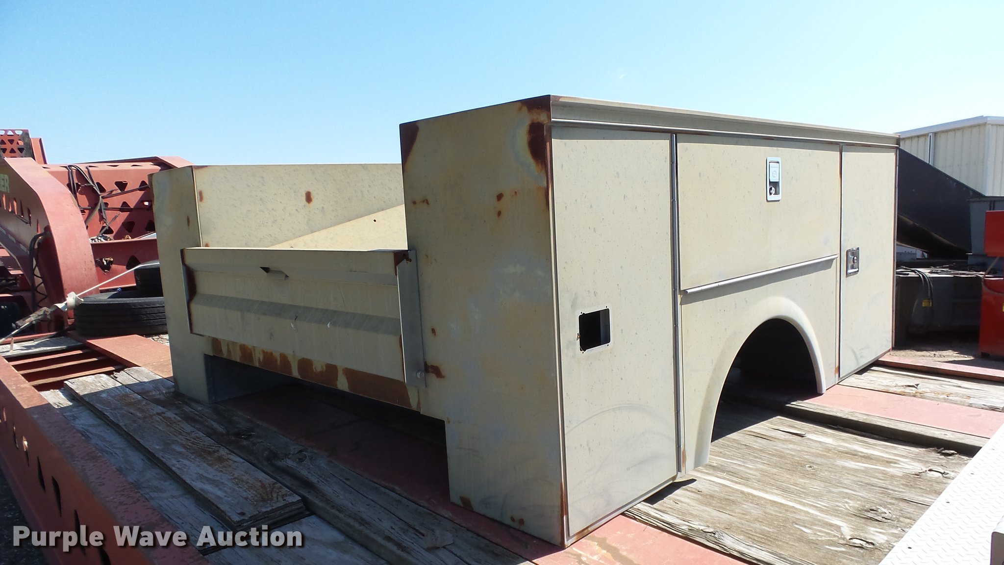 Purple Wave is selling a used Automotive Parts or Acces. in Kansas. This item is a Omaha steel utility bed with the following: 8'L x 8'W, (6) compartments, Bumper, Unused