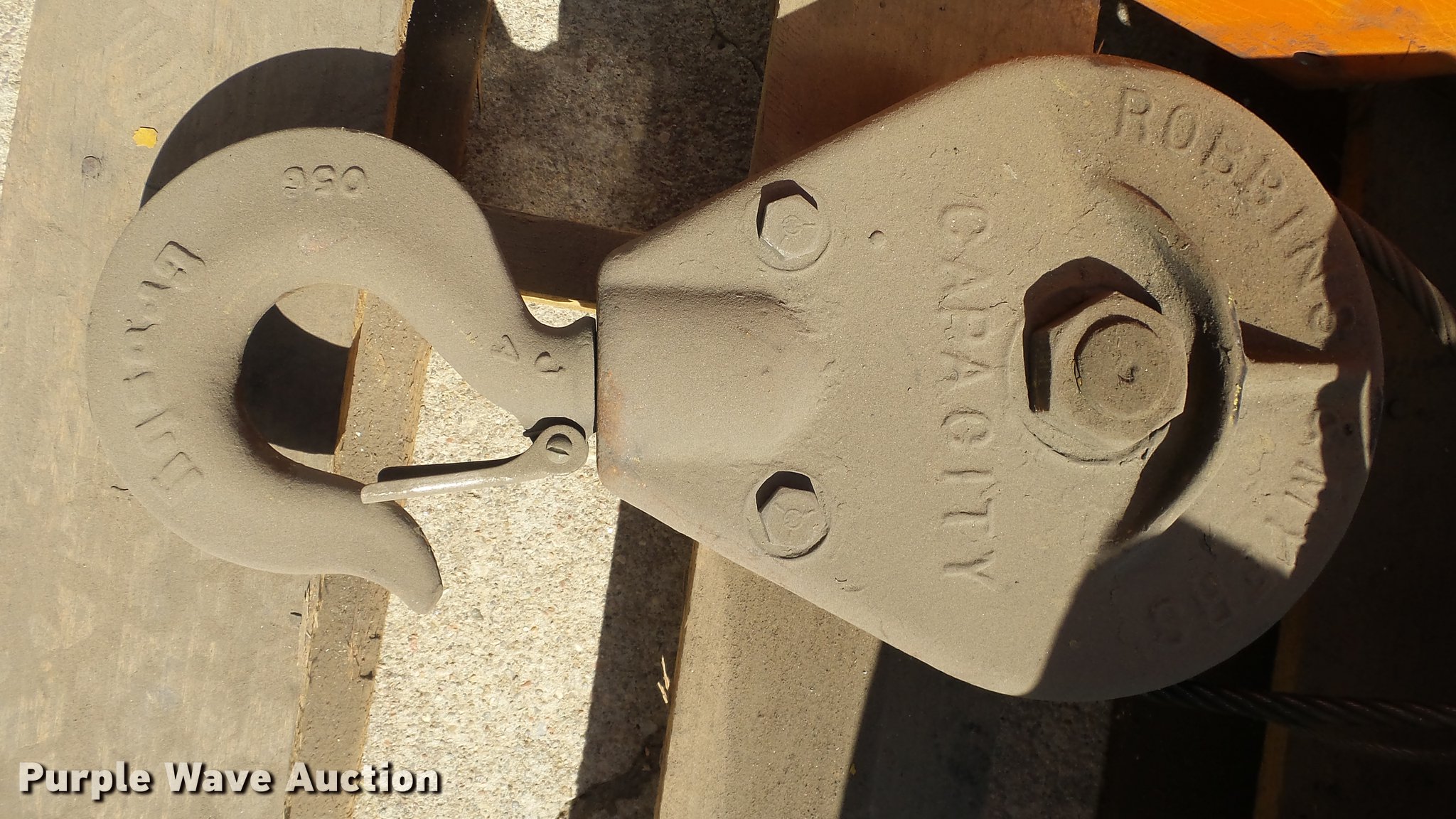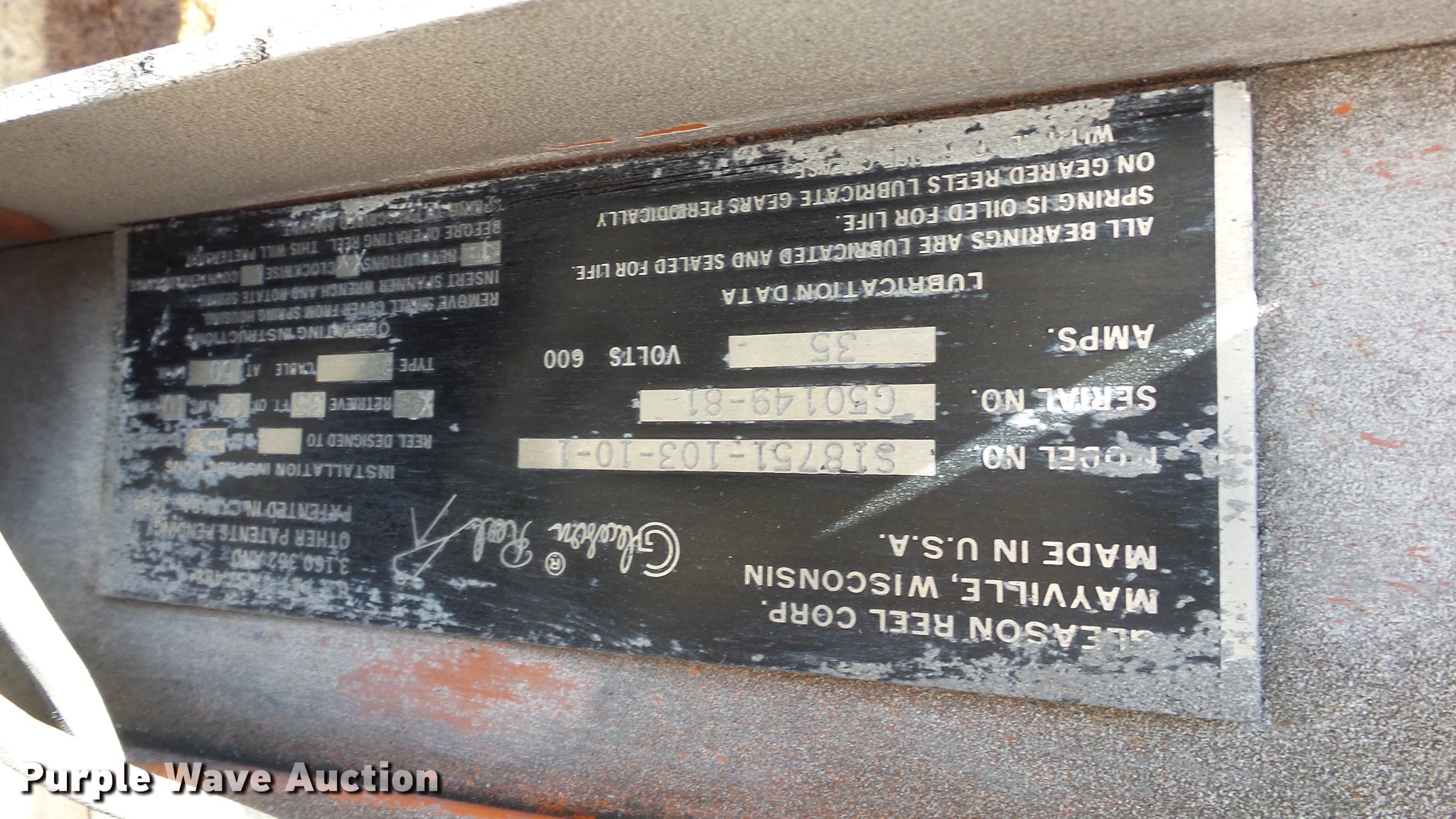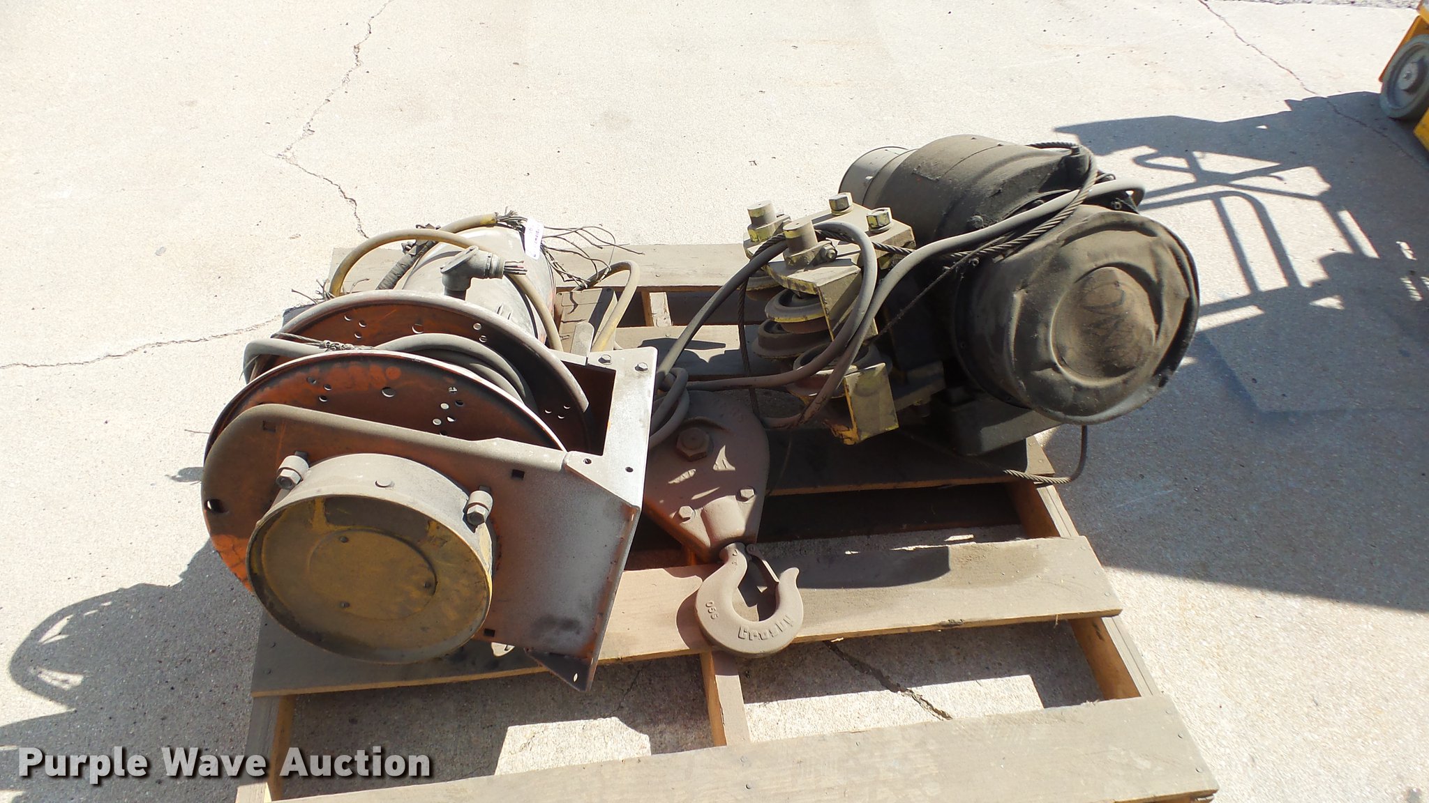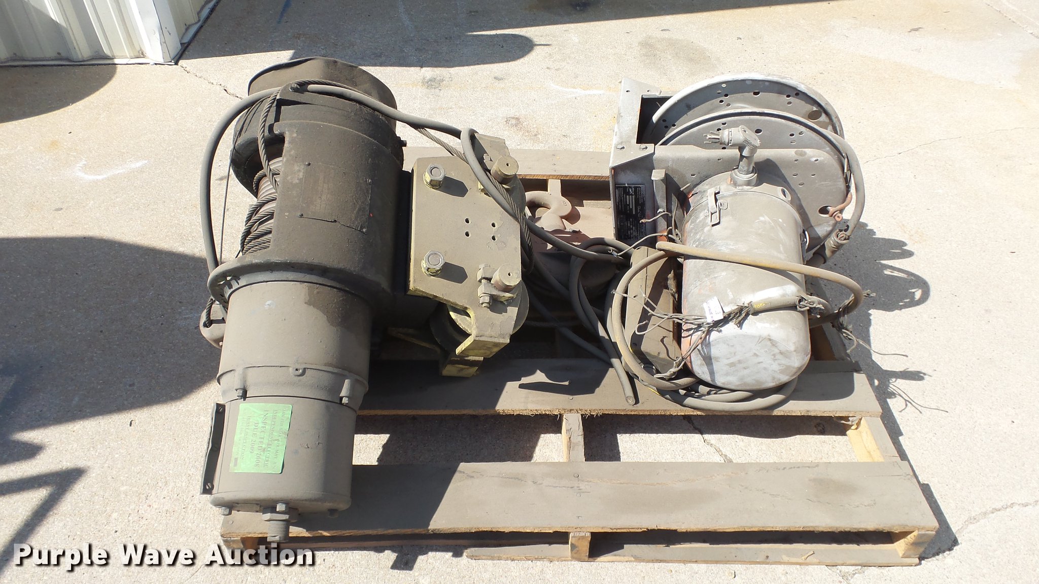 Purple Wave is selling a used Overhead or Straddle Crane in Kansas. This item is a Gantry crane system with the following: 25' x 90"H beam, Dual electric motor, 3,000 lbs capacity, 48' twin I-beams, (6) 13.5' support beams, Robbins & Meyers J-3 crane, 440V, Three phase, Serial J16038, Gleason reel, 35 amps, 600V, 50 fpm, Robbins hook, Four button pendant control