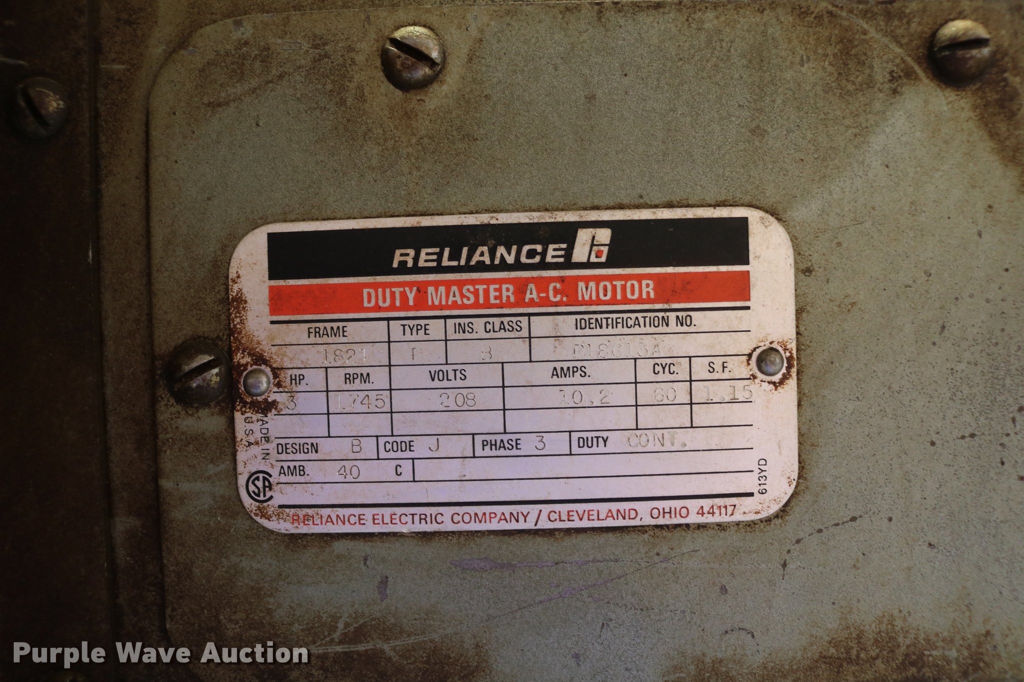 Oster Rapiduction 792A threading machine. Reliance electric motor 208V, 3 HP at 1,745 RPM, Three phase, Multi-speed, Belt driven, Allen-Bradley disconnect box 1/4" to 1.5" diameter, Course and fine thread SAE, 1/2" up to 20" pipe thread dies, Catalog no. 792A-XM391. Quinter, KS 67752