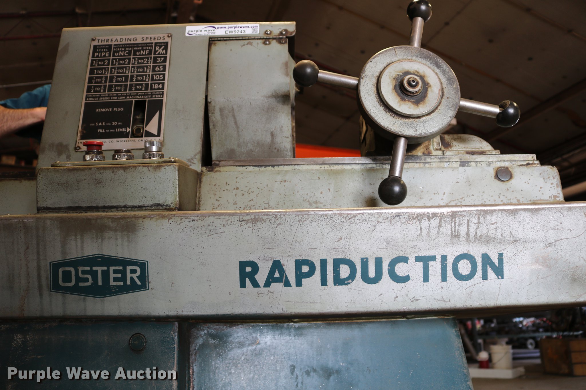 Take a look at this used Oster Rapiduction 792A threading machine being sold on June 13th, 2018 in the SOLD! June 13 Vehicles and Equipment Auction made by Oster. Take a look at all of the item information below or take a look at similar auctions for Machine Tools.