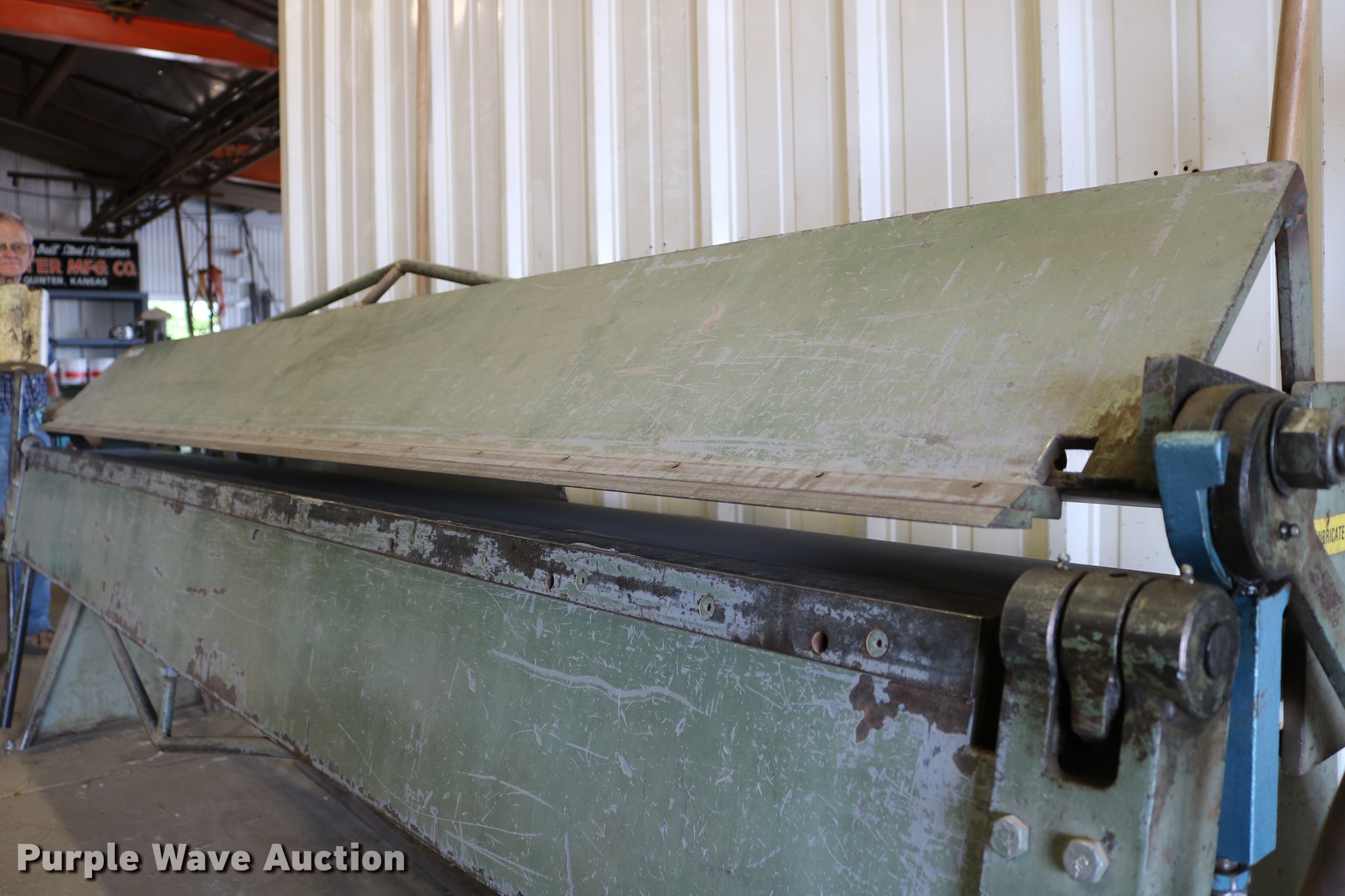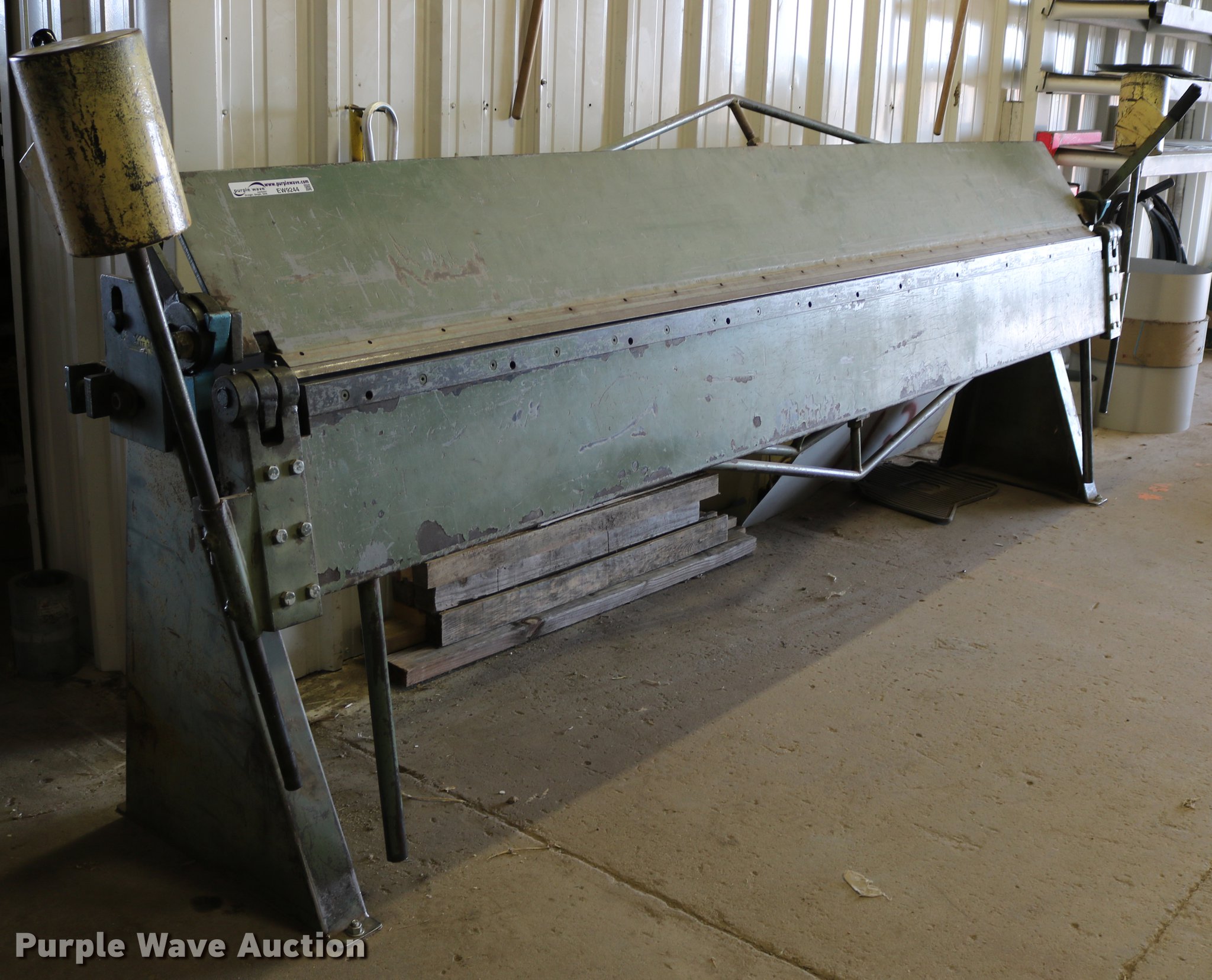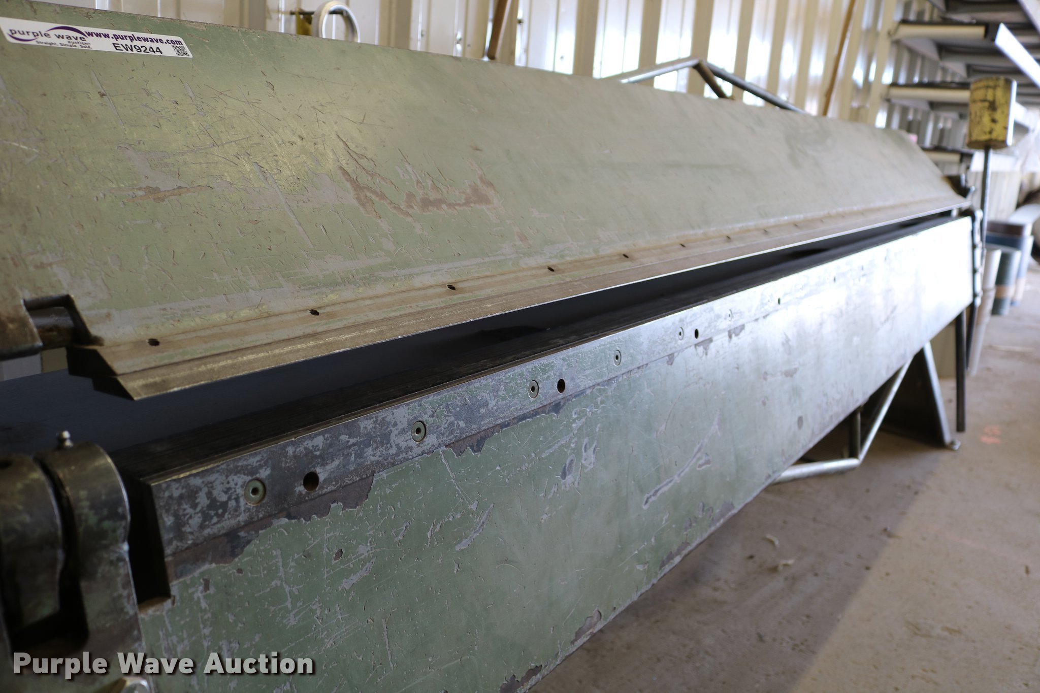 Purple Wave is selling a used Machine Shop Tools and Equip. in Kansas. This item is a Roper Whitney 1018 metal brake with the following: 10'L, 18 gauge max capacity