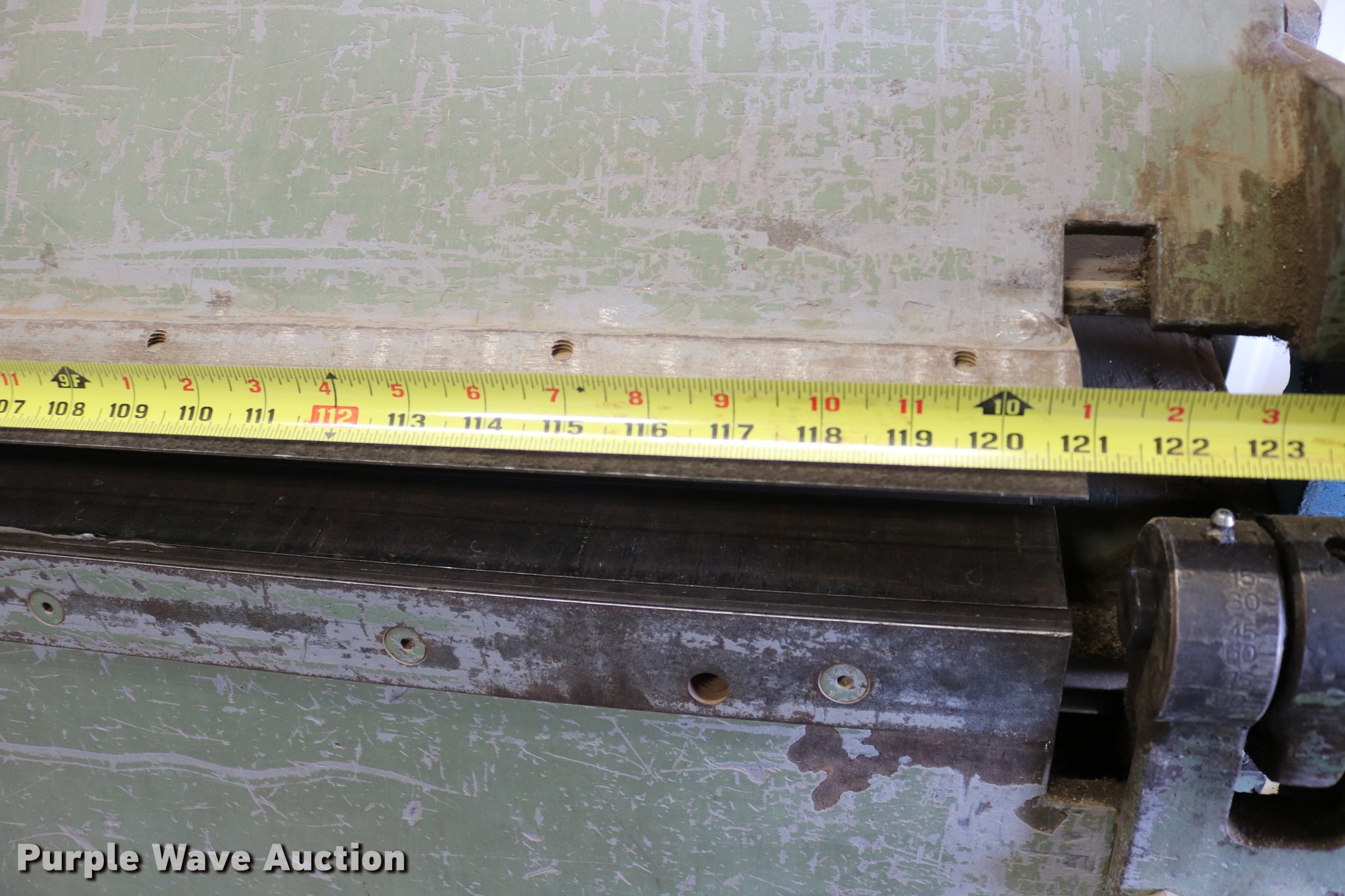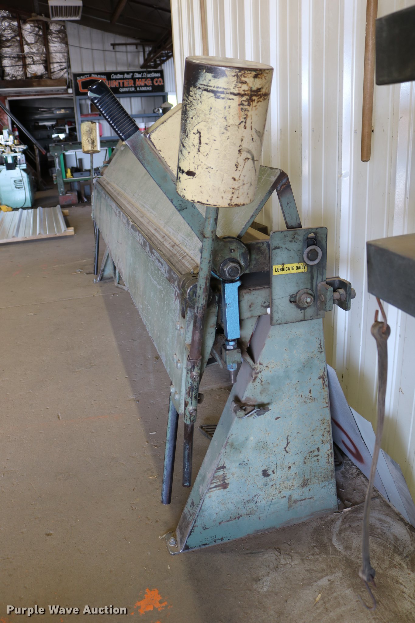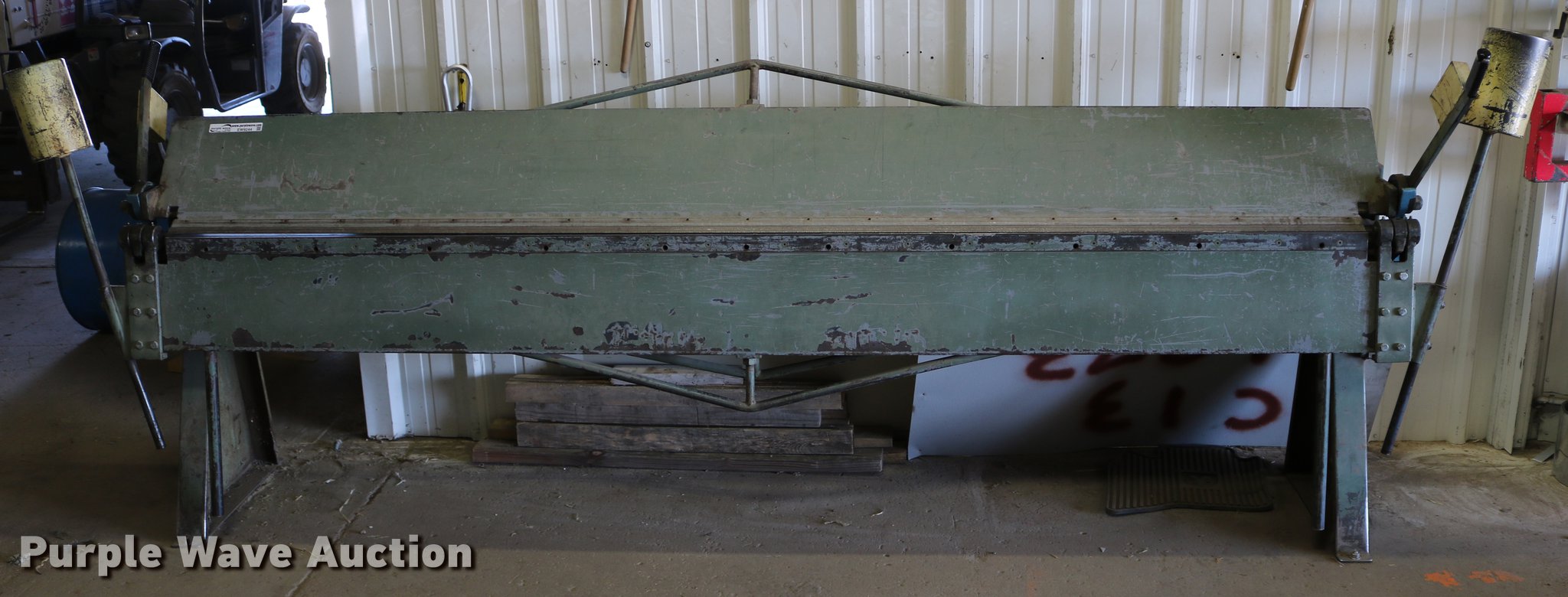 Purple Wave is selling a used Machine Shop Tools and Equip. in Kansas. This item is a Roper Whitney 1018 metal brake with the following: 10'L, 18 gauge max capacity