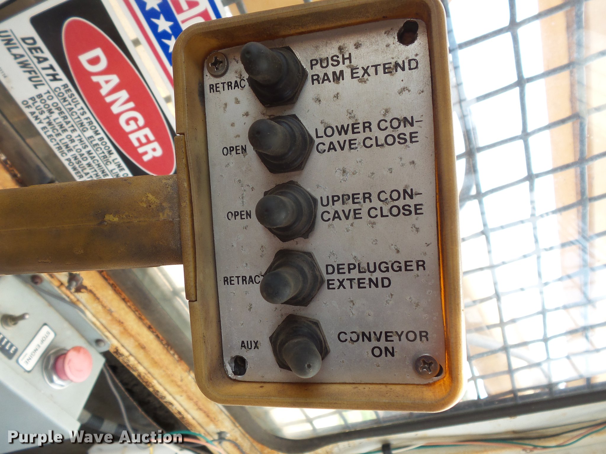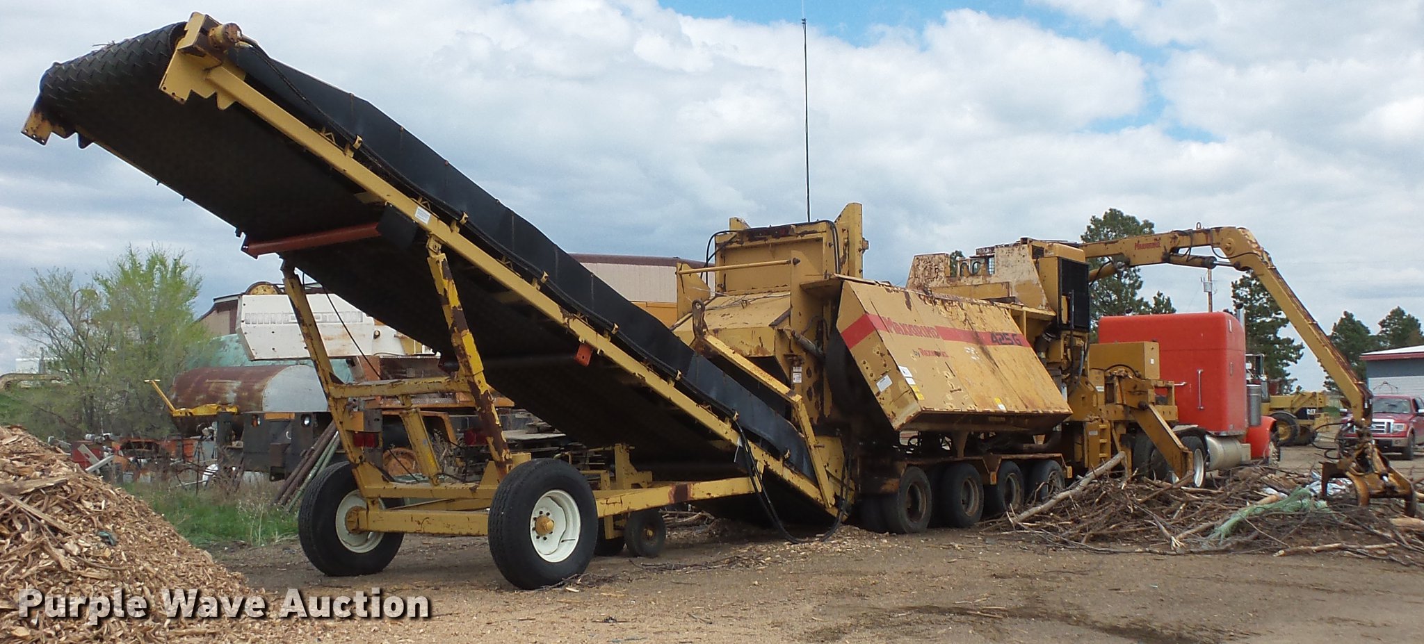 Purple Wave is selling a used Wood Grinder in South Dakota. This item is a 1993 Rexworks Maxigrind 425G horizontal grinder with the following: Caterpillar six cylinder turbo diesel engine, Knuckle boom, Bypass clam, 10' x 57" grinder hopper, Automatic slide gate, Fifth wheel plate, Spring suspension, Air brakes, Quad axle, 215/75R17.5 tires, 28'L conveyor, 57"W belt, Hydraulic orbit motor, Pintle hitch, Single axle, 10.00-20 tires, Serial 9193000253