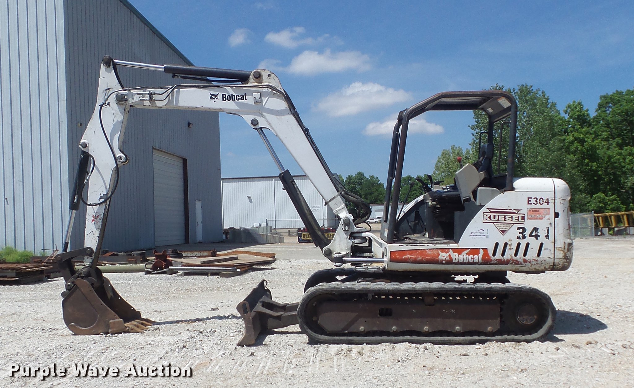 Purple Wave is selling a used Mini Excavator in Missouri. This item is a 2006 Bobcat 341G min excavator with the following: 7,331 hours on meter, Kubota V2003-M-DI-T-EU5 2.0L four cylinder turbo diesel engine, 48 HP, Two speed hydrostatic transmission, OROPS, Suspension seat, Pattern changer, Travel alarm, Bobcat 24"W bucket, (4) teeth, 5.14 cu. ft. capacity, Bobcat mechanical quick coupler, Two way auxiliary hydraulics, 16"W rubber tracks, Serial 234713565