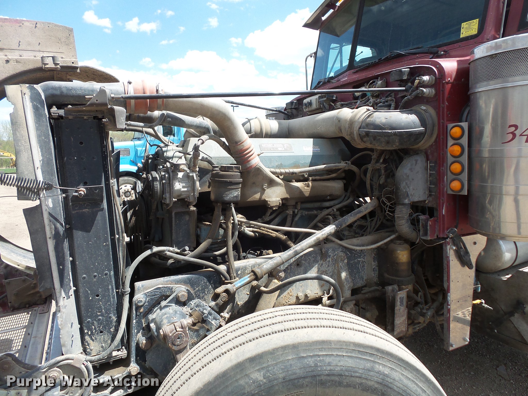 Purple Wave is selling a used Construction Dump Truck in Minnesota. This item is a 1991 Peterbilt 379 dump truck with the following: 1,878,142 miles on odometer, Detroit Diesel Series 60 12.7L L6 turbo diesel engine, 13 speed manual transmission, Inter-axle differential lock, Quad axle, AC and heat, Tilt, AM/FM/cassette, Air suspension seat, PTO, Exterior visor, 19.5'L x 94"W steel dump bed, 42" side height, 6" side board height, Single ram hoist, Bed vibrator, Air operated end gate, Single fuel tank, 262" wheelbase, Steerable pusher axles, Air suspension, Air brakes, 315/80R22.5 front tires, 255/70R22.5 pusher axle tires, 275/80R24.5 rear tires, GVWR 50,000 lbs, FAWR 12,000lbs, IAWR 19,000 lbs, RAWR 19,000 lbs