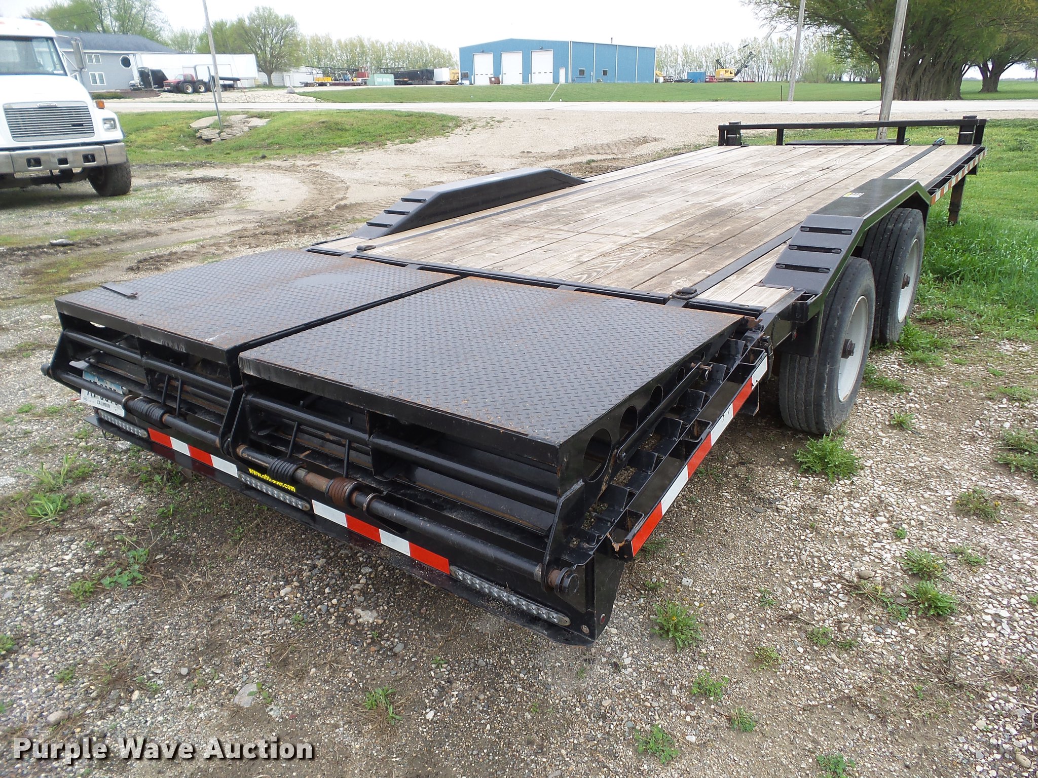 Purple Wave is selling a used Equip. Trailer in Iowa. This item is a 2016 H&H equipment trailer with the following: 27' overall length, 18'L x 102"W wood deck, 4'L beavetail, 4'L ramps, Stake side pockets, D-ring tie downs, Toolbox, Pintle htich, Dual leg landing gear, Spring suspension, Electric brakes, Tandem axle, Steel wheels, 235/75R17.5 tires, GVWR 22,500 lbs