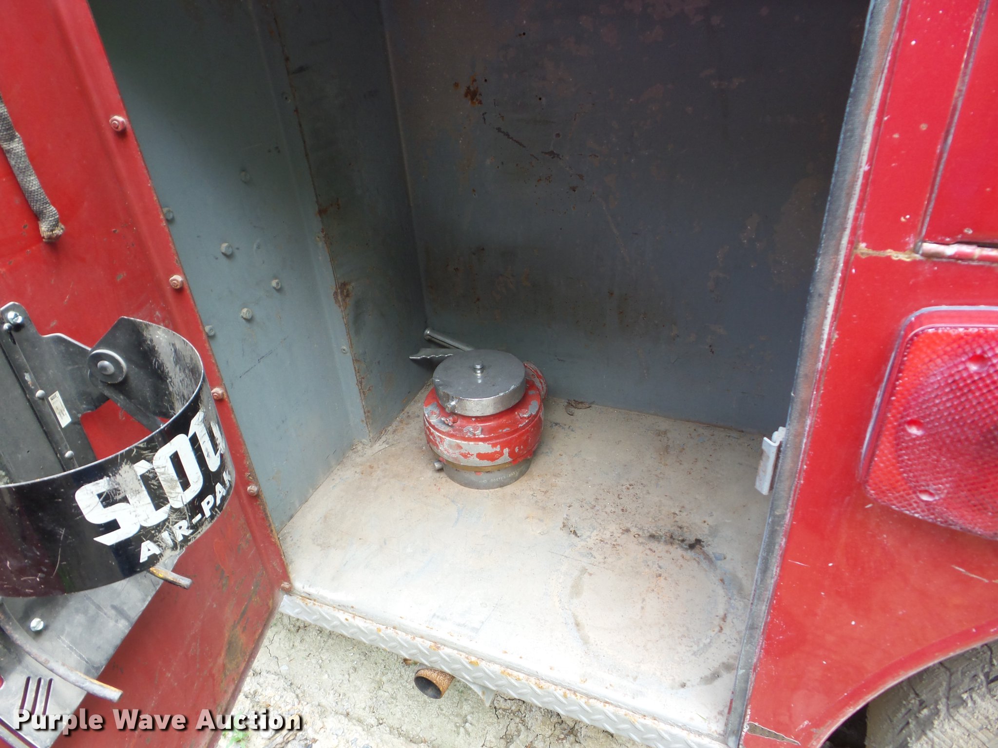 Purple Wave is selling a used Fire Truck or Emergency Vehicle in Kansas. This item is a 1972 Chevrolet C50 fire truck with the following: 11,453 miles on odometer, Chevrolet 360 C.I.D. eight cylinder gas engine, Five speed manual transmission, Two speed rear end, Single axle, Heat, American fire apparatus bed, 500 gpm pump, Front mounted pump, Hose, Ladder, 9.00-20 tires