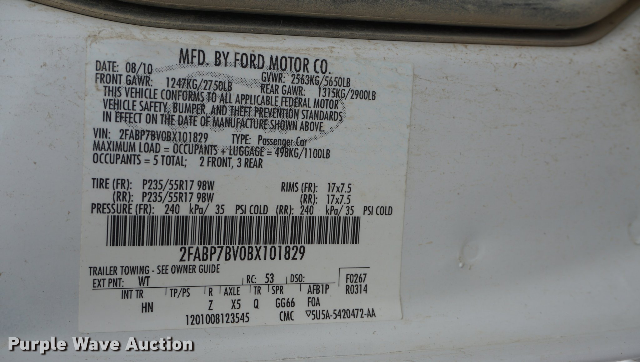 Purple Wave is selling a used Passenger Vehicle in Kansas. This item is a 2011 Ford Crown Victoria Police Interceptor with the following: 129,327 miles on odometer, 4.6L V8 SOHC 16V FFV gas engine, Automatic transmission, AC and heat, Tilt, Cruise, AM/FM/CD, Power windows, locks, mirrors, and seat, Cloth interior, Divider cage, 235/55R17 tires