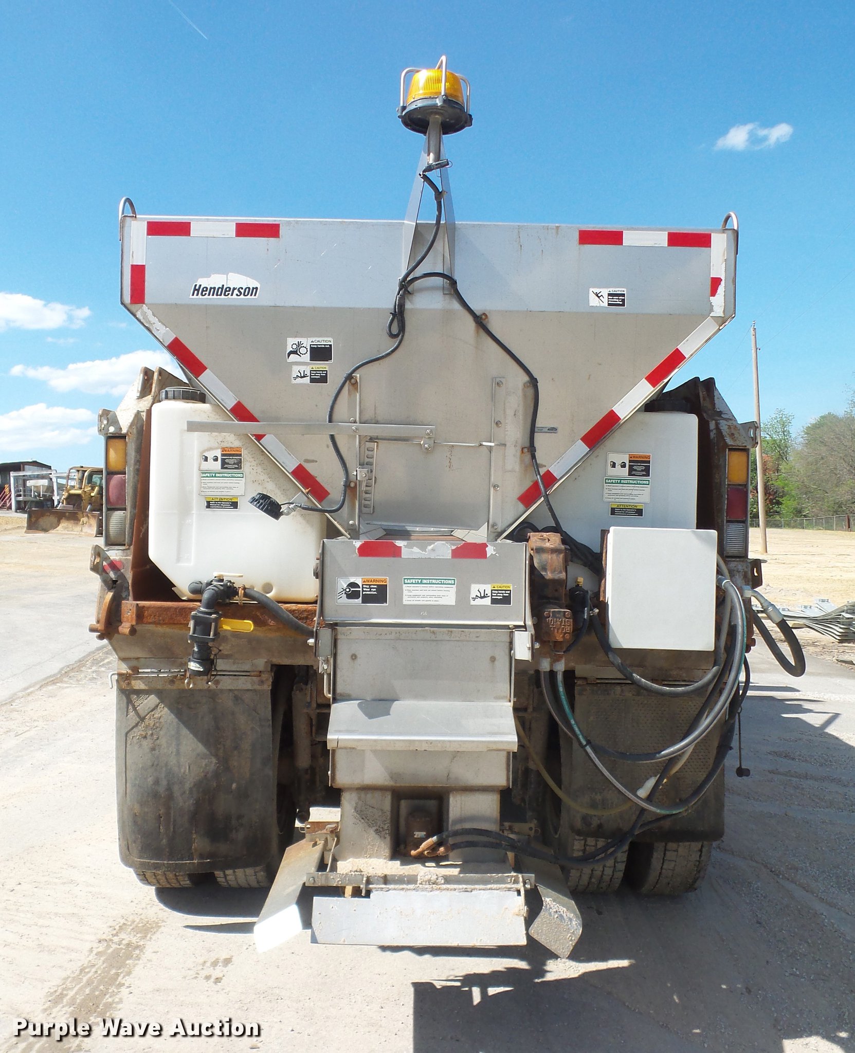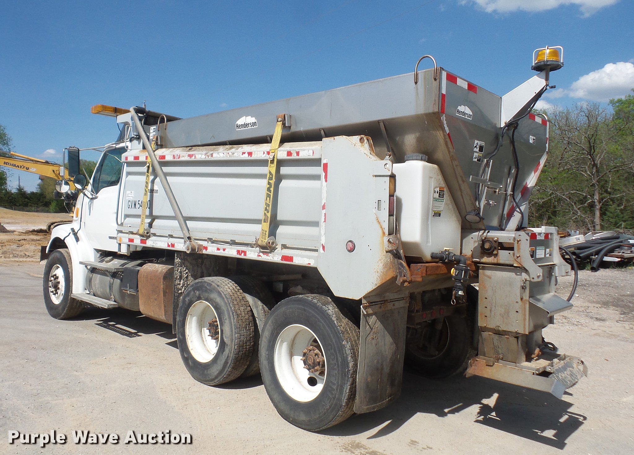 2010 Sterling L7500 dump truck. 258,686 miles on odometer, Cummins ISC 8.3L L6 turbo diesel engine 330 HP, Serial 46981163, Allison automatic transmission, Inter-axle differential lock, Tandem axle, AC and heat, Cruise, AM/FM, Power windows, Air suspension seat, Front mount PTO, In-cab plow and spreader controls, Henderson steel dump bed 15'L x 96"W, 36" side height, Single ram hoist, Air operated end gate, Roll tarp, Henderson 14' spreader, Poly tanks, Toolboxes, Snow plow mounting bracket, Single fuel tank, Spring suspension, Air brakes, 315/80R22.5 front tires, 11R22.5 rear tires, GVWR 56,000 lbs, FAWR 16,000 lbs, IAWR 20,000 lbs, RAWR 20,000 lbs. Kansas title. Title distribution may be delayed up to 14 days from verification of funds. 2FZHATBS4AAAN4025. Leavenworth County. 23690 187th St. Leavenworth, KS 66048