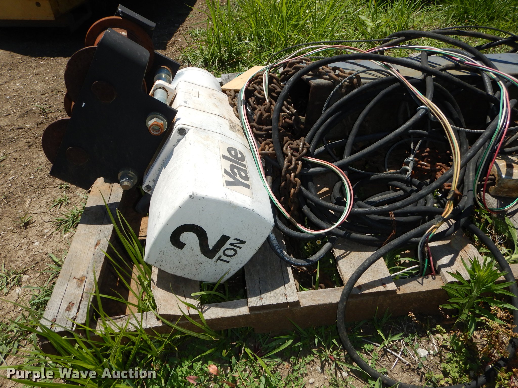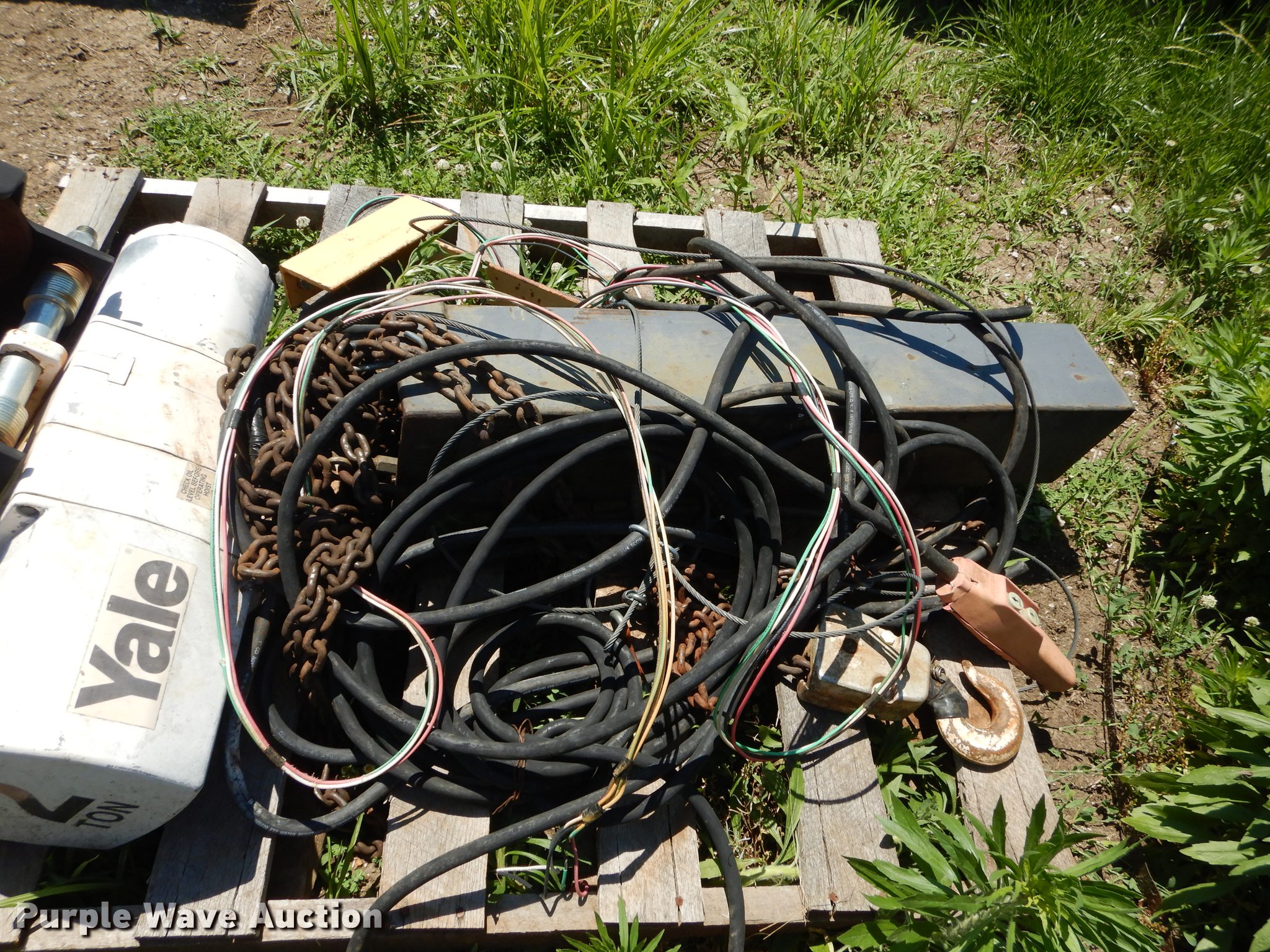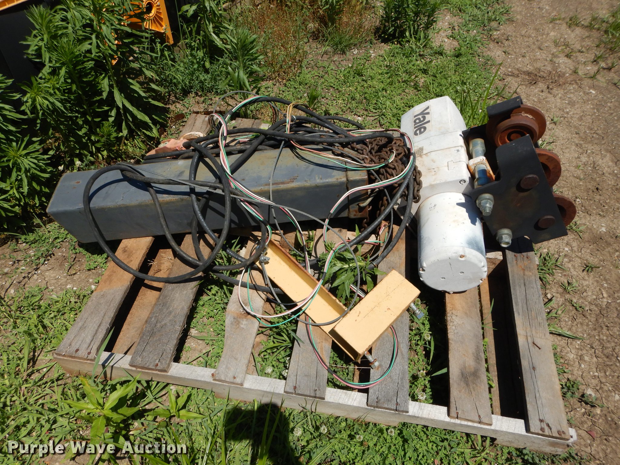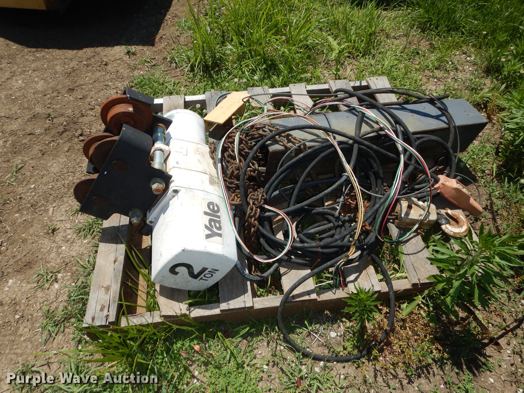 Purple Wave is selling a used Overhead or Straddle Crane in Kansas. This item is a Gorbel crane with the following: Yale two ton electric chain hoist, 22' arm, 15'H base, 5' diameter base