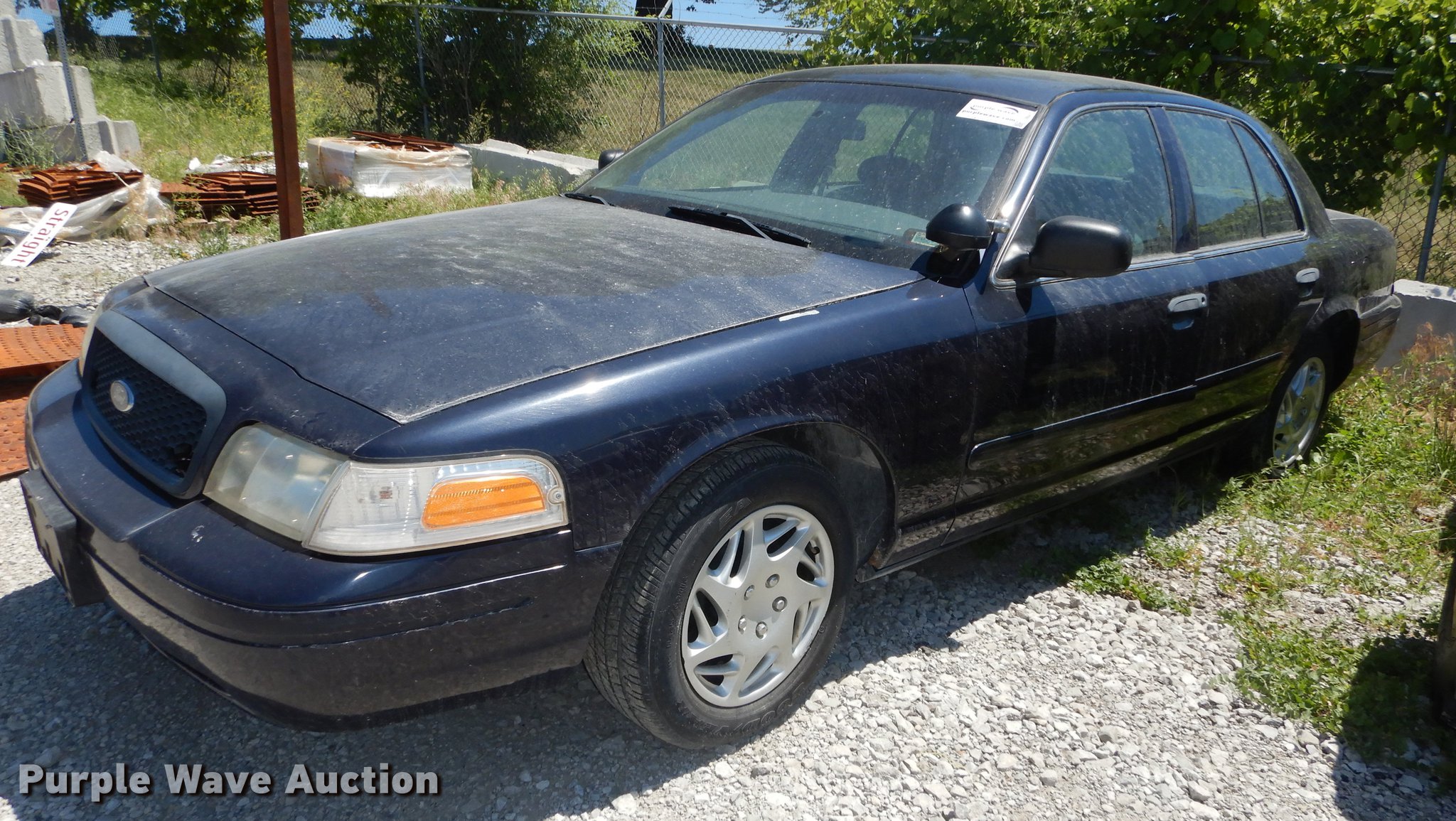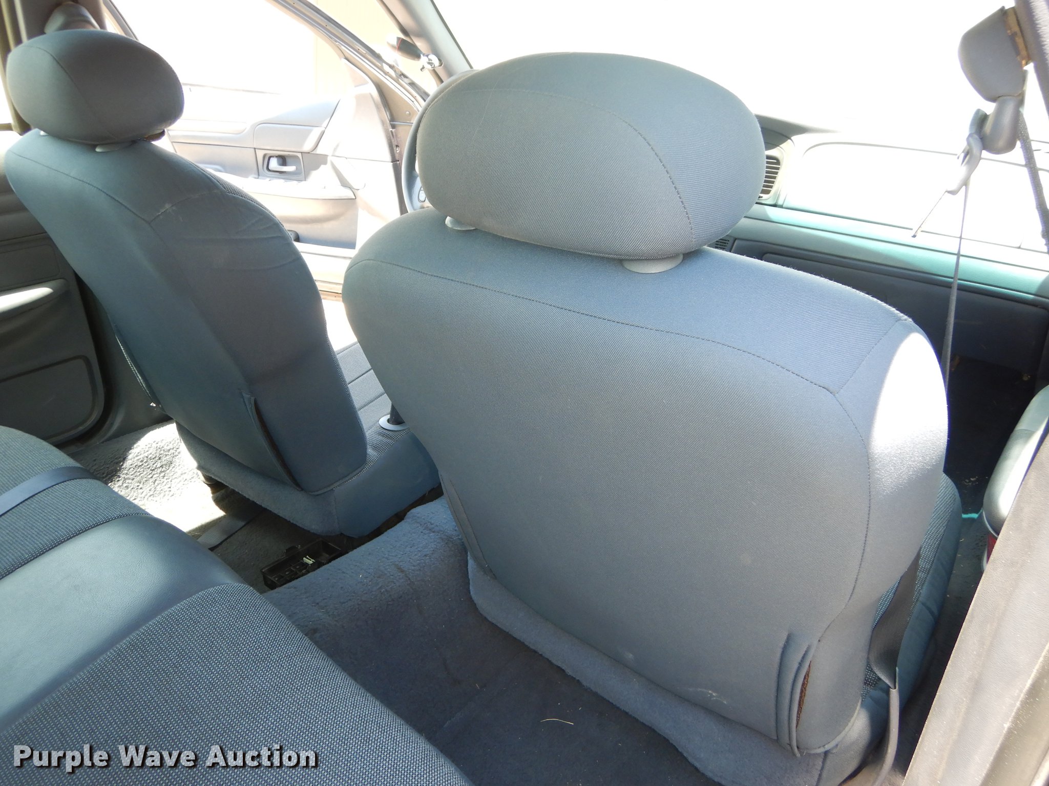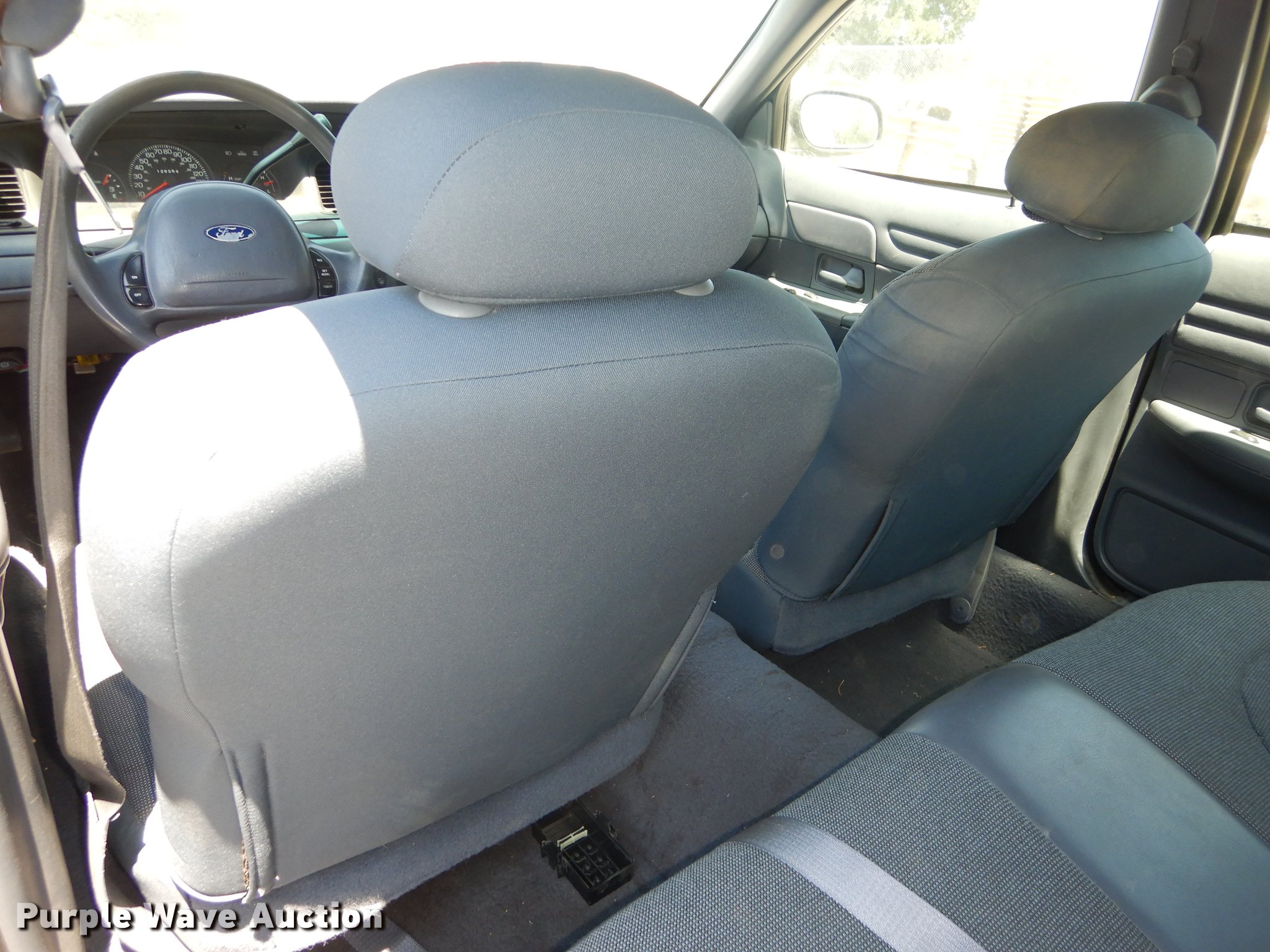 Purple Wave is selling a used Passenger Vehicle in Kansas. This item is a 2002 Ford Crown Victoria Police Interceptor with the following: 128,564 miles on odometer, 4.6L V8 SOHC 16V gas engine, Automatic transmission, AC and heat, Tilt, Cruise, AM/FM, Power windows, locks, and mirrors, Cloth interior, Spotlight, Goodyear 225/60R16 tires, Check engine light on