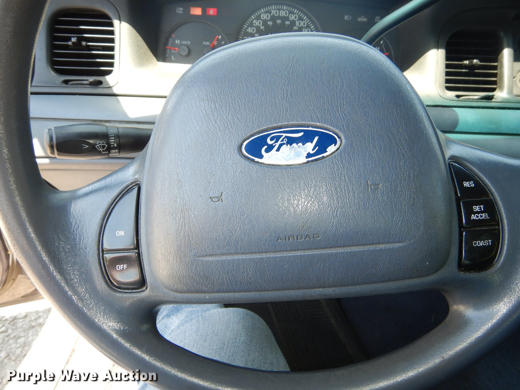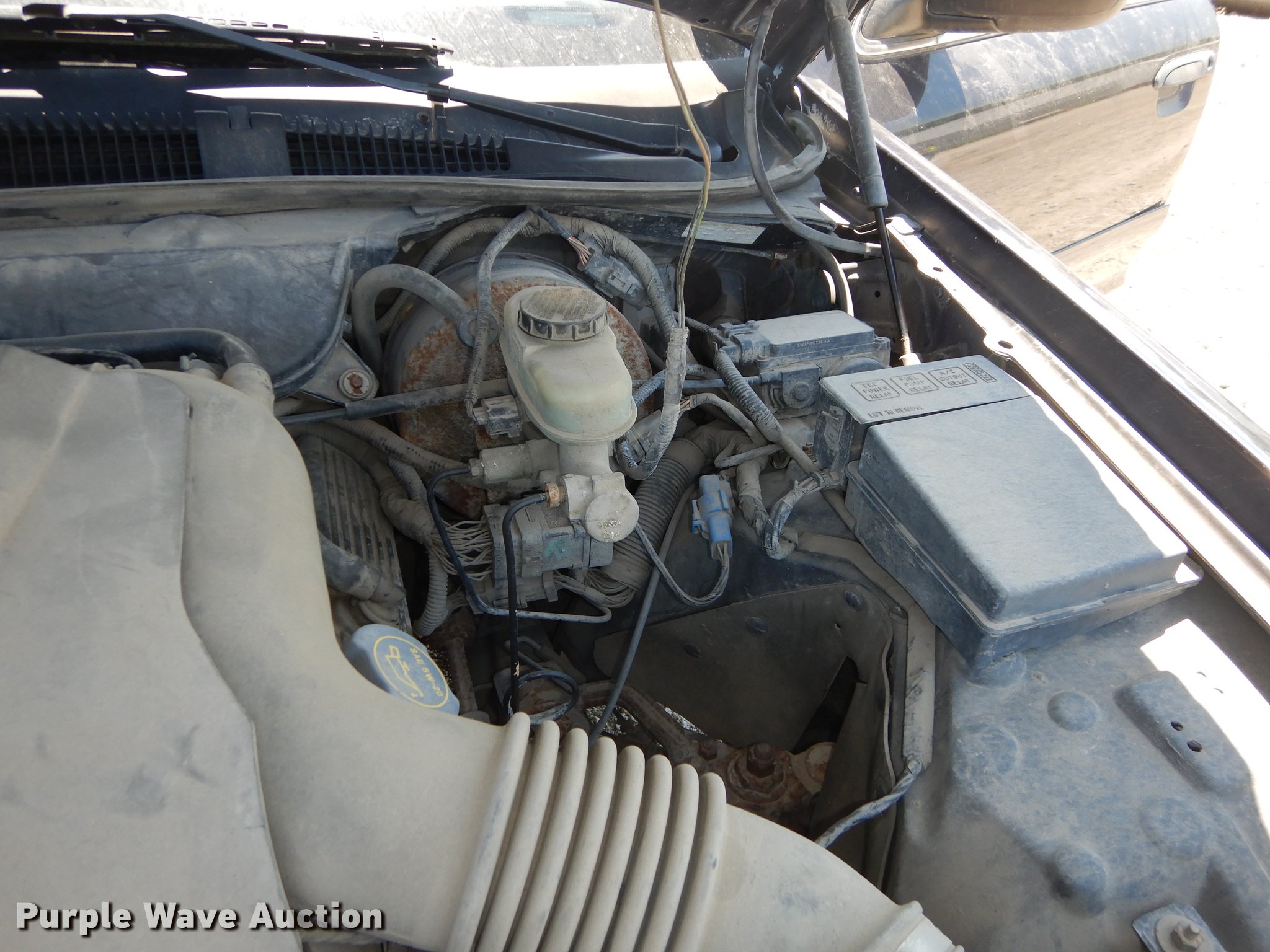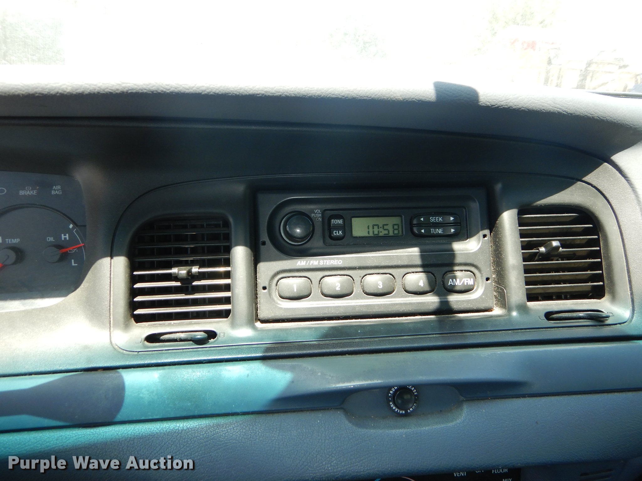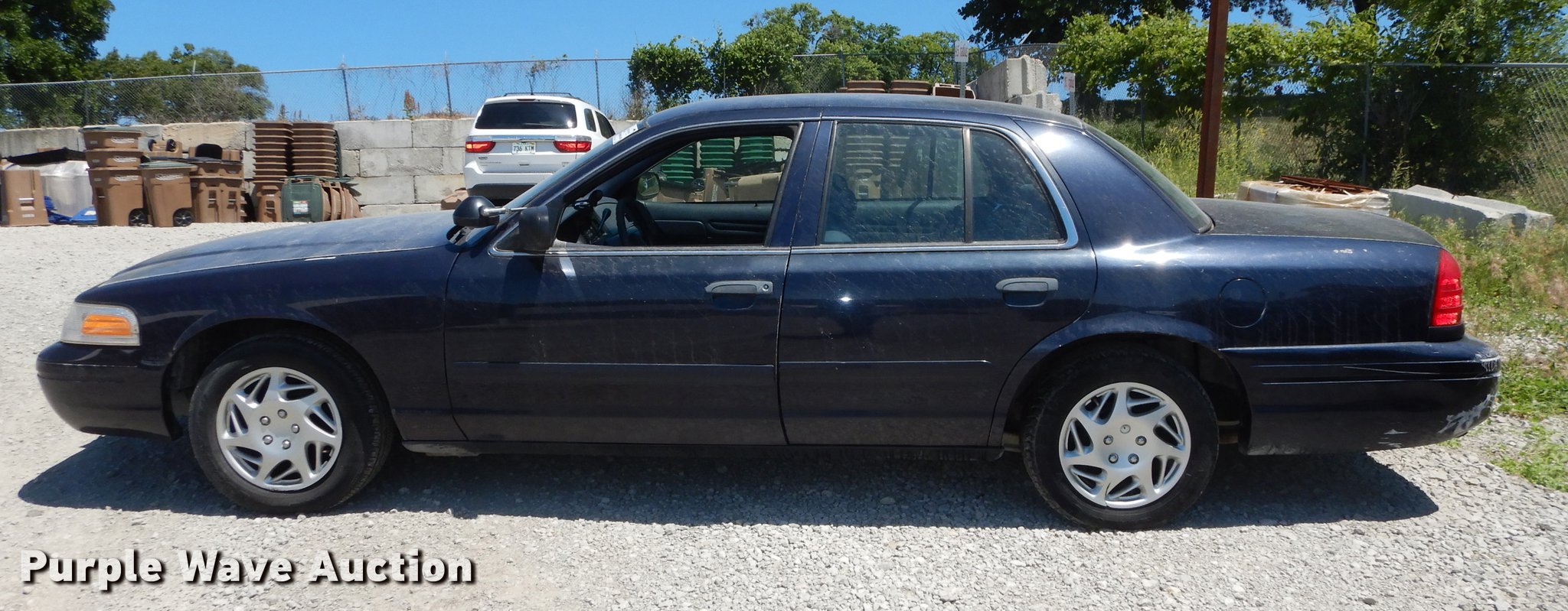 Purple Wave is selling a used Passenger Vehicle in Kansas. This item is a 2002 Ford Crown Victoria Police Interceptor with the following: 128,564 miles on odometer, 4.6L V8 SOHC 16V gas engine, Automatic transmission, AC and heat, Tilt, Cruise, AM/FM, Power windows, locks, and mirrors, Cloth interior, Spotlight, Goodyear 225/60R16 tires, Check engine light on