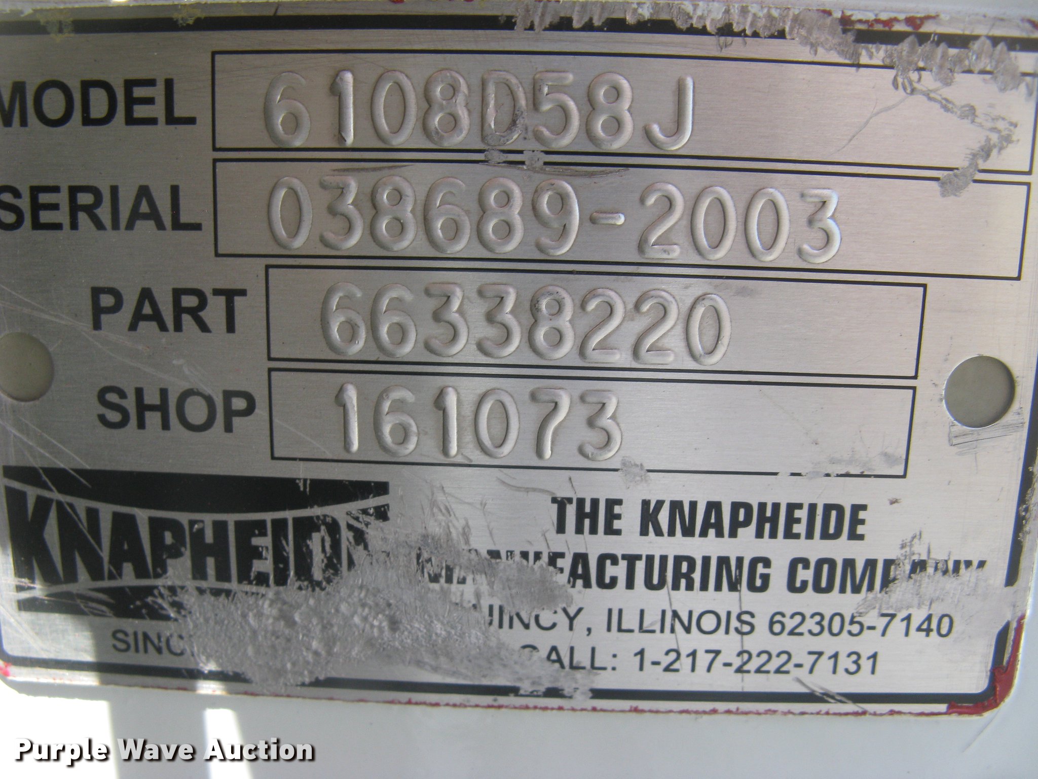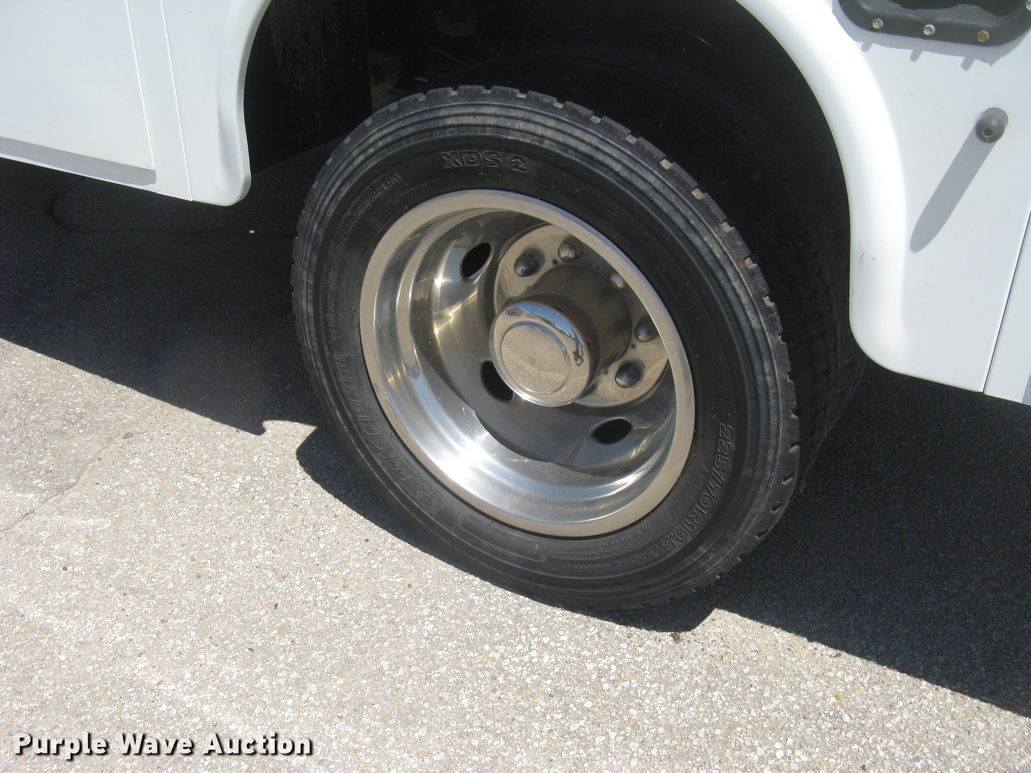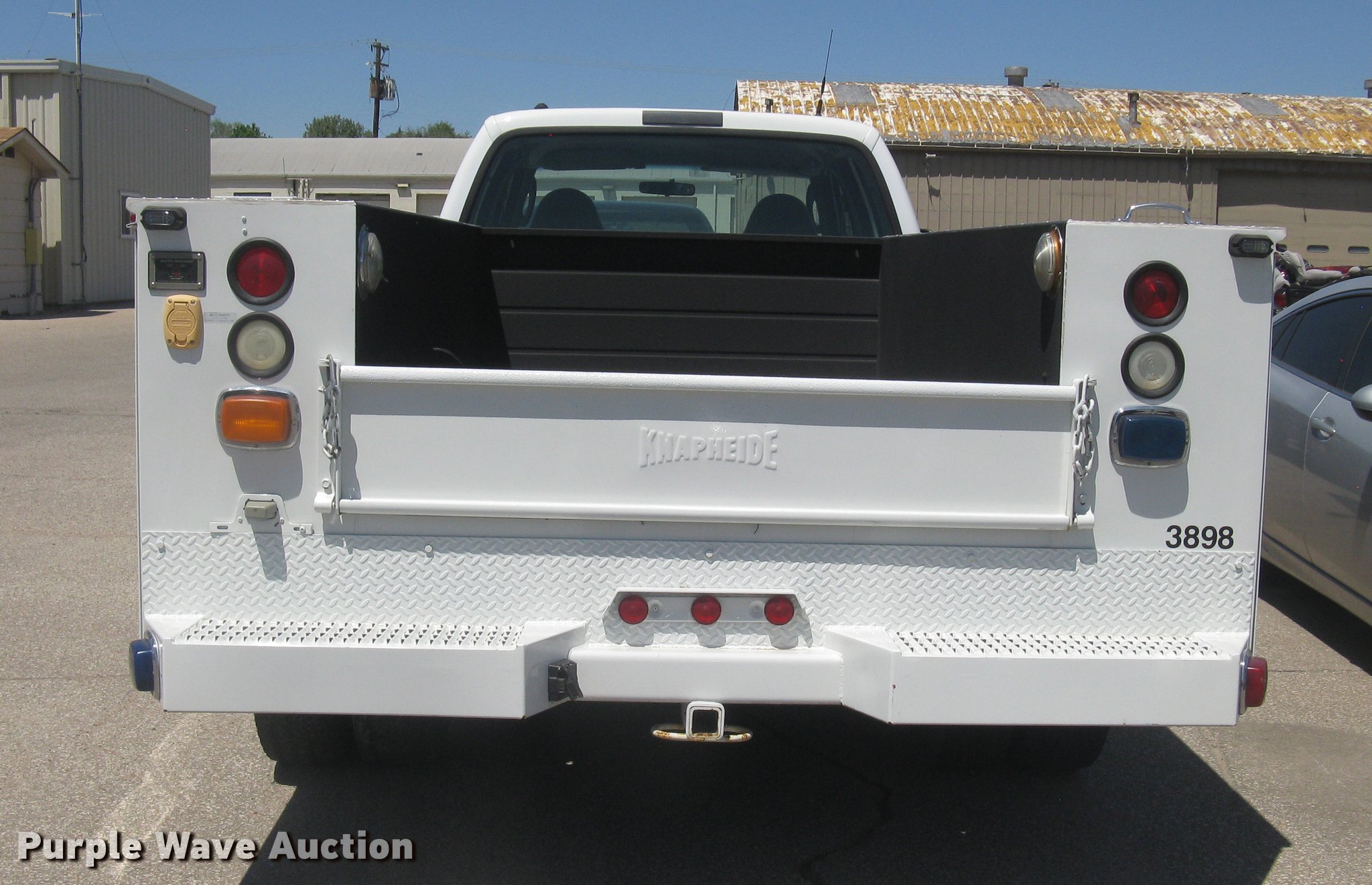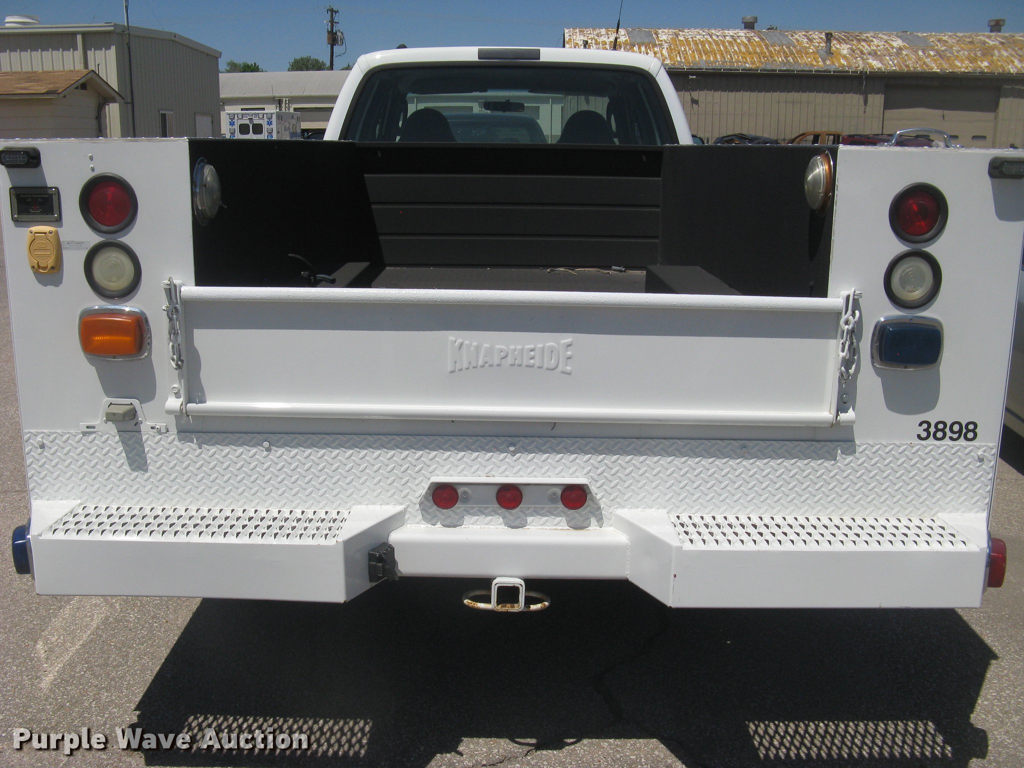 Purple Wave is selling a used Service Truck in Kansas. This item is a 2003 Ford F550 Super Duty XL Crew Cab utility truck with the following: Approx. 113,892 miles, 6.0L V8 OHV 32V turbo diesel engine, Automatic transmission, Four wheel drive, AC and heat, Tilt, Cruise, AM/FM, Power windows and locks, Vinyl interior, Front tow hooks, Running boards, Knapheide 6108D58J utility bed, 9'L x 94"W, Receiver hitch, Trailer wiring, 225/70R19.5 tires, Port holes in roof, No rear seats, Non-operational engine, Dead battery, Non-operational unit, Unit# 3898