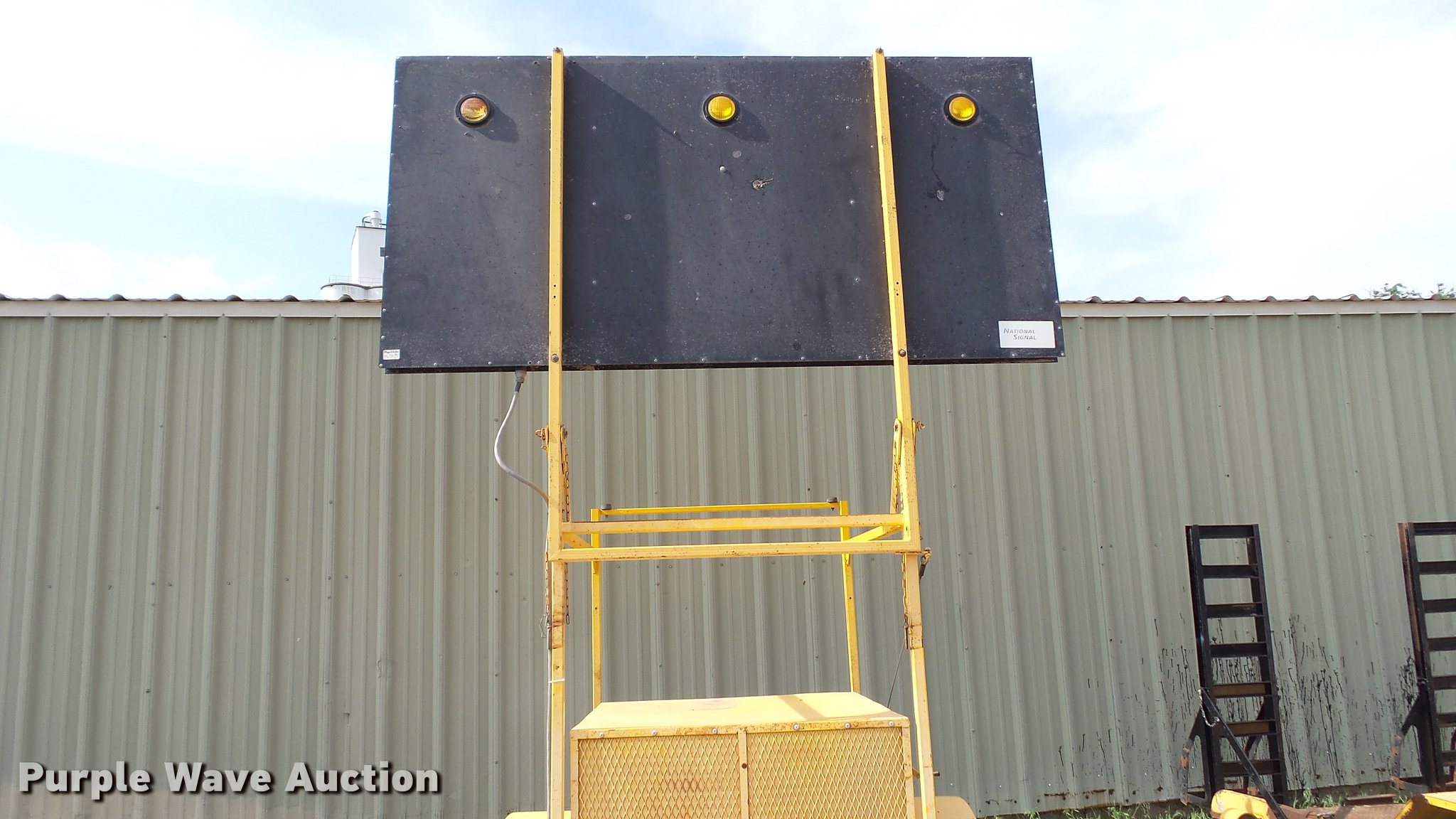 Purple Wave is selling a used Road Safety Equip. in Kansas. This item is a Over-Lowe WLTFD sign trailer with the following: 3,447 hours on meter, Yanmar L40ABE-DEA single cylinder diesel engine, 3.1 kW output, Serial 00365, Fold-down sign, Manual crank, 2" ball hitch, Jack stand, Spring suspension, Single axle, 7.8-15 tires, Serial 80407