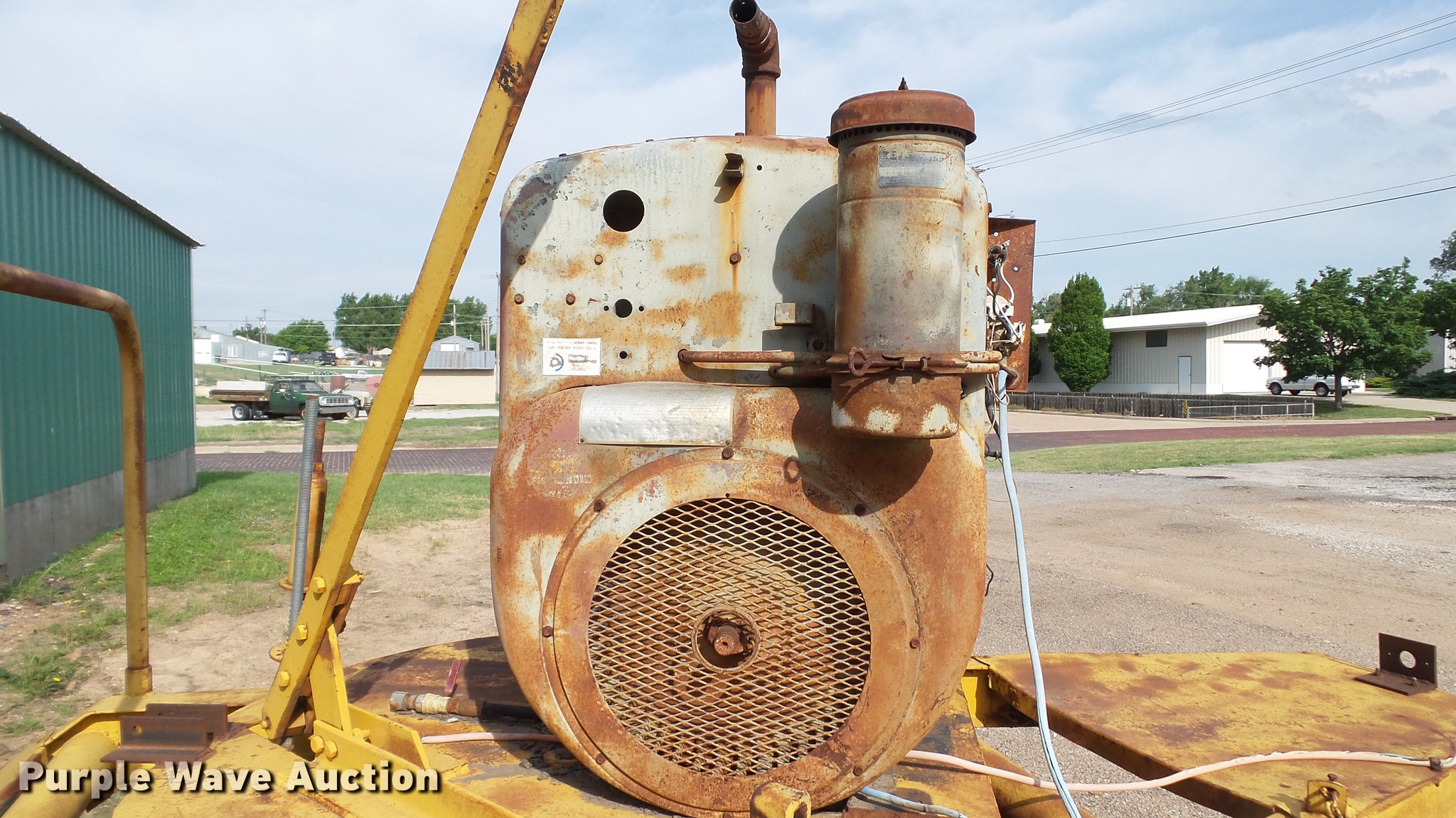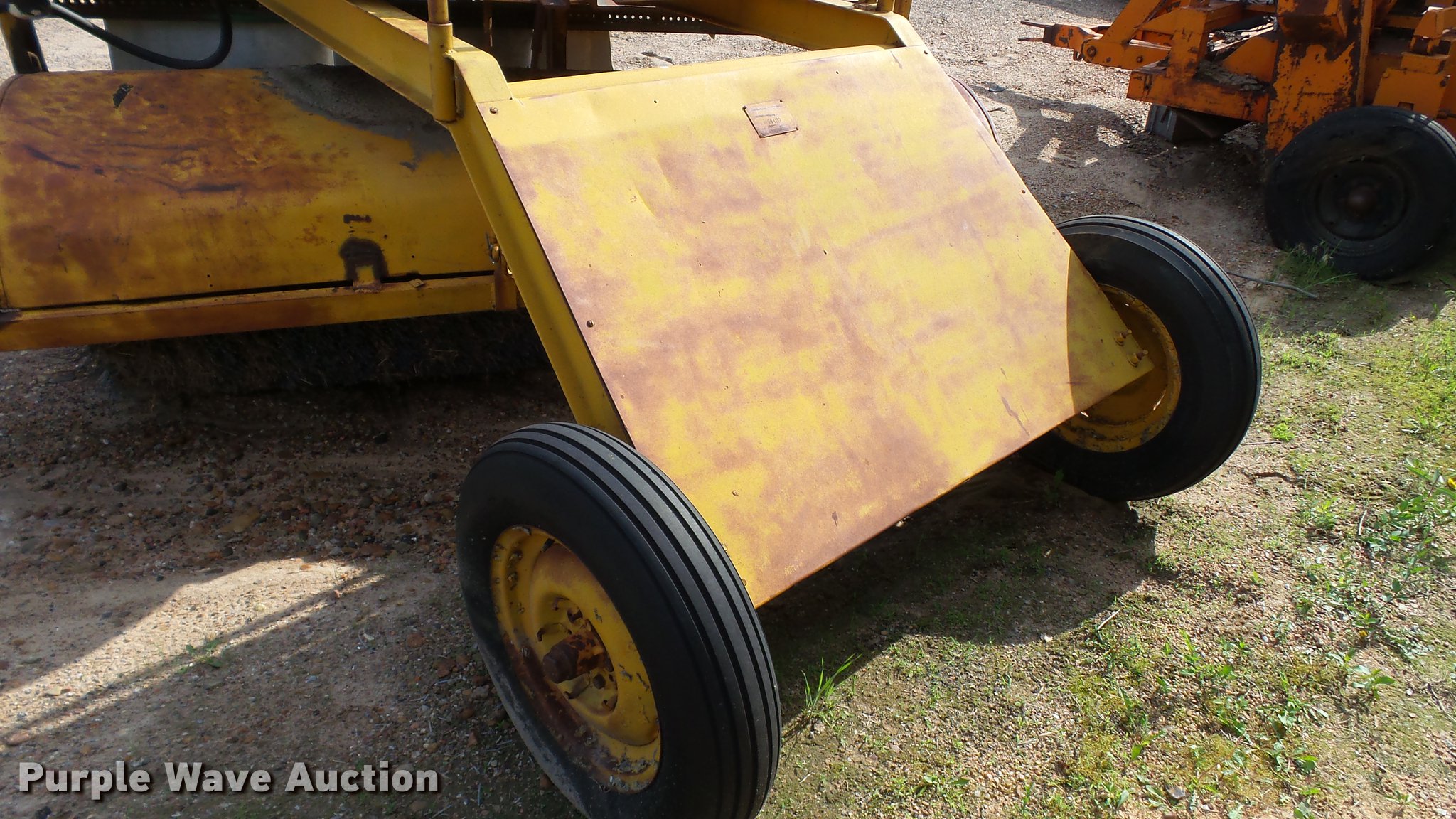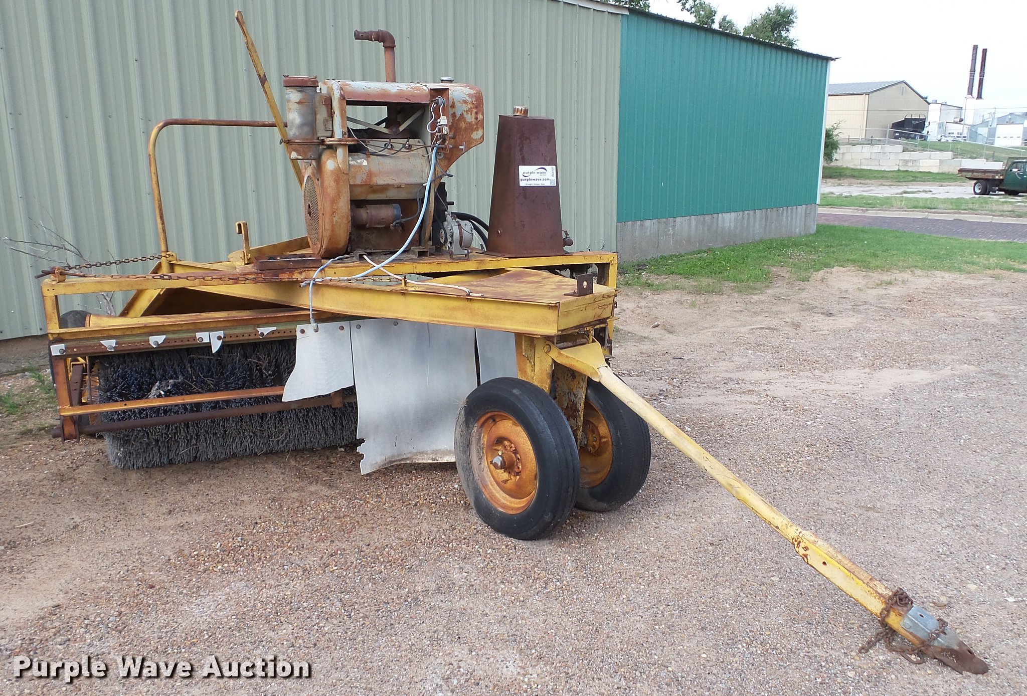 Purple Wave is selling a used Sweeper in Kansas. This item is a Sweeper with the following: Wisconsin V64D four cylinder gas engine, Serial 3477039, 8'W, Hydraulic lift and rotation, 2" ball hitch, Lift cylinder missing, No battery