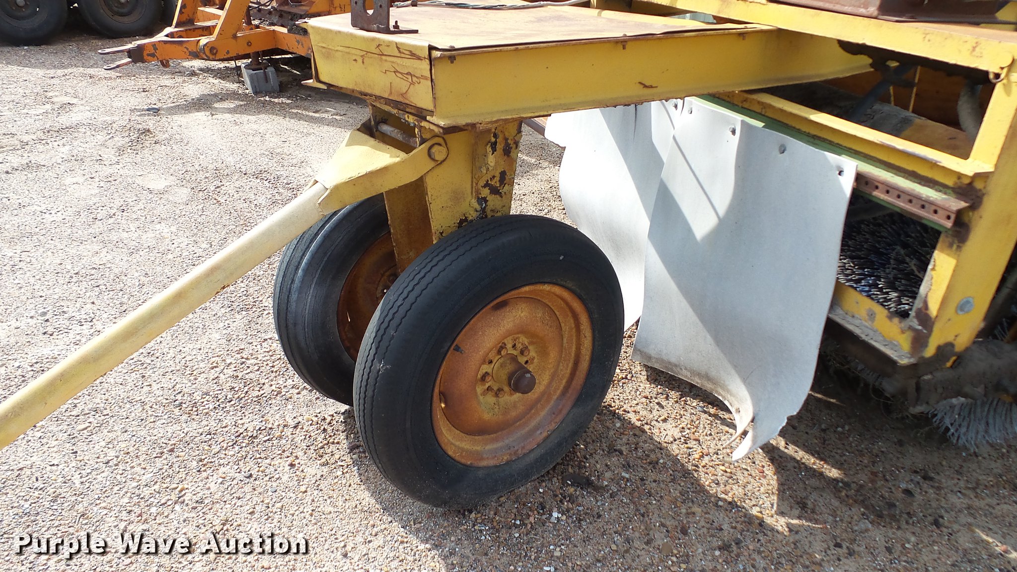 Sweeper. Wisconsin V64D four cylinder gas engine Serial 3477039, 8'W, Hydraulic lift and rotation, 2" ball hitch, Lift cylinder missing, No battery. City of Pratt. 924 S Jackson St. Pratt, KS 67124