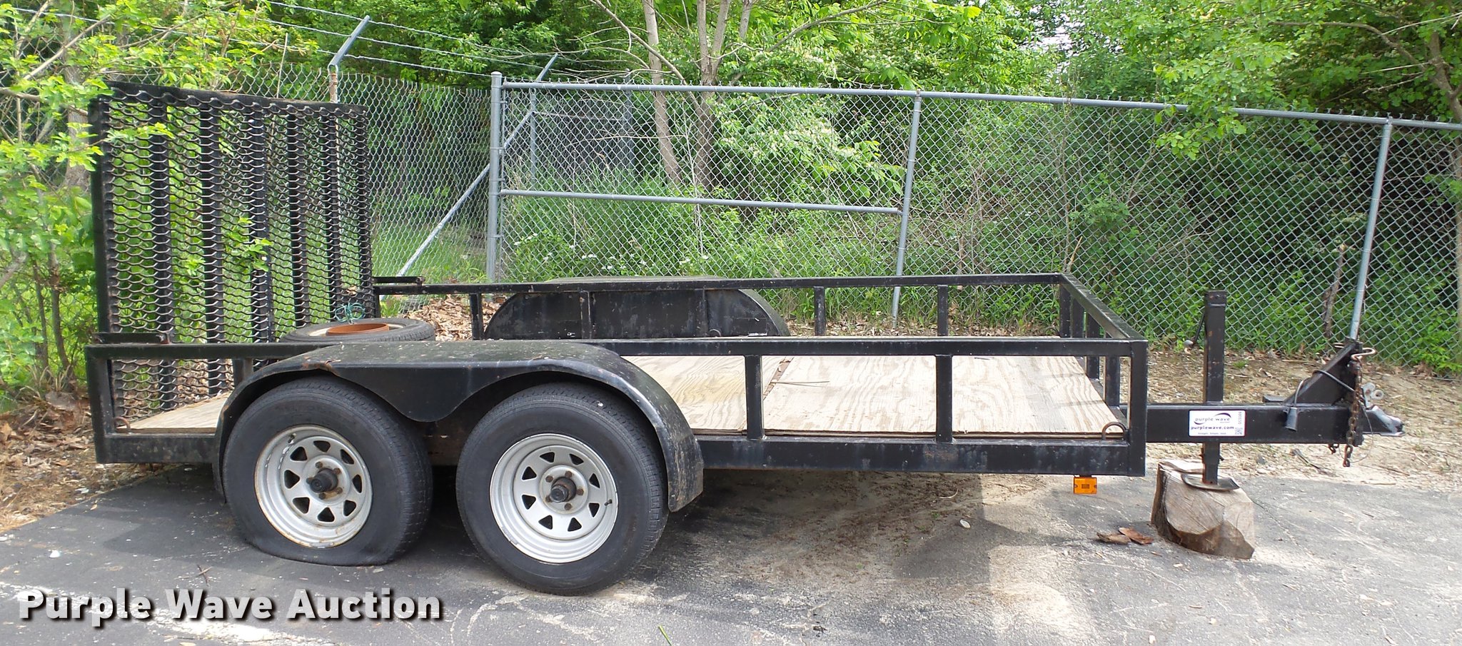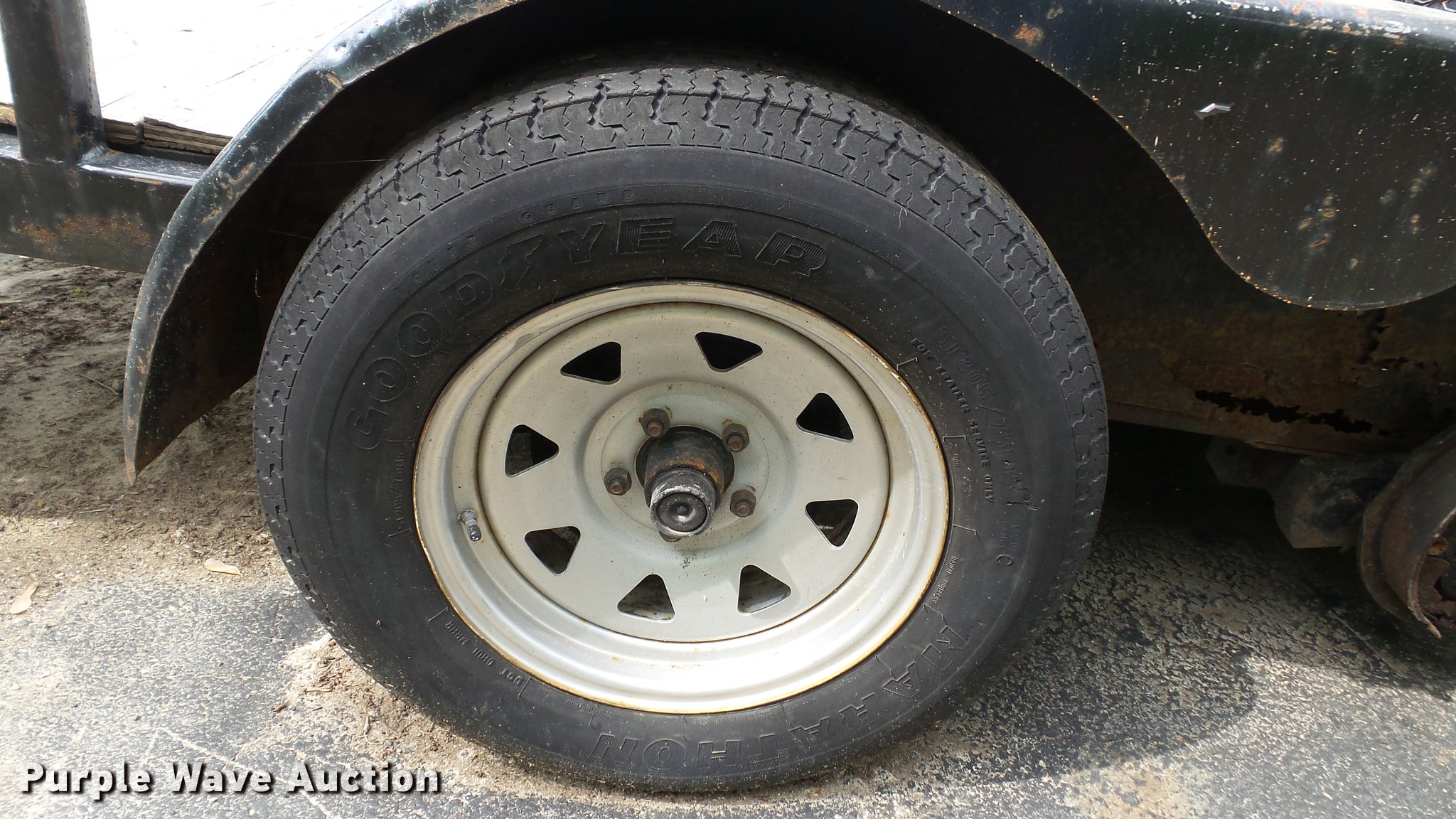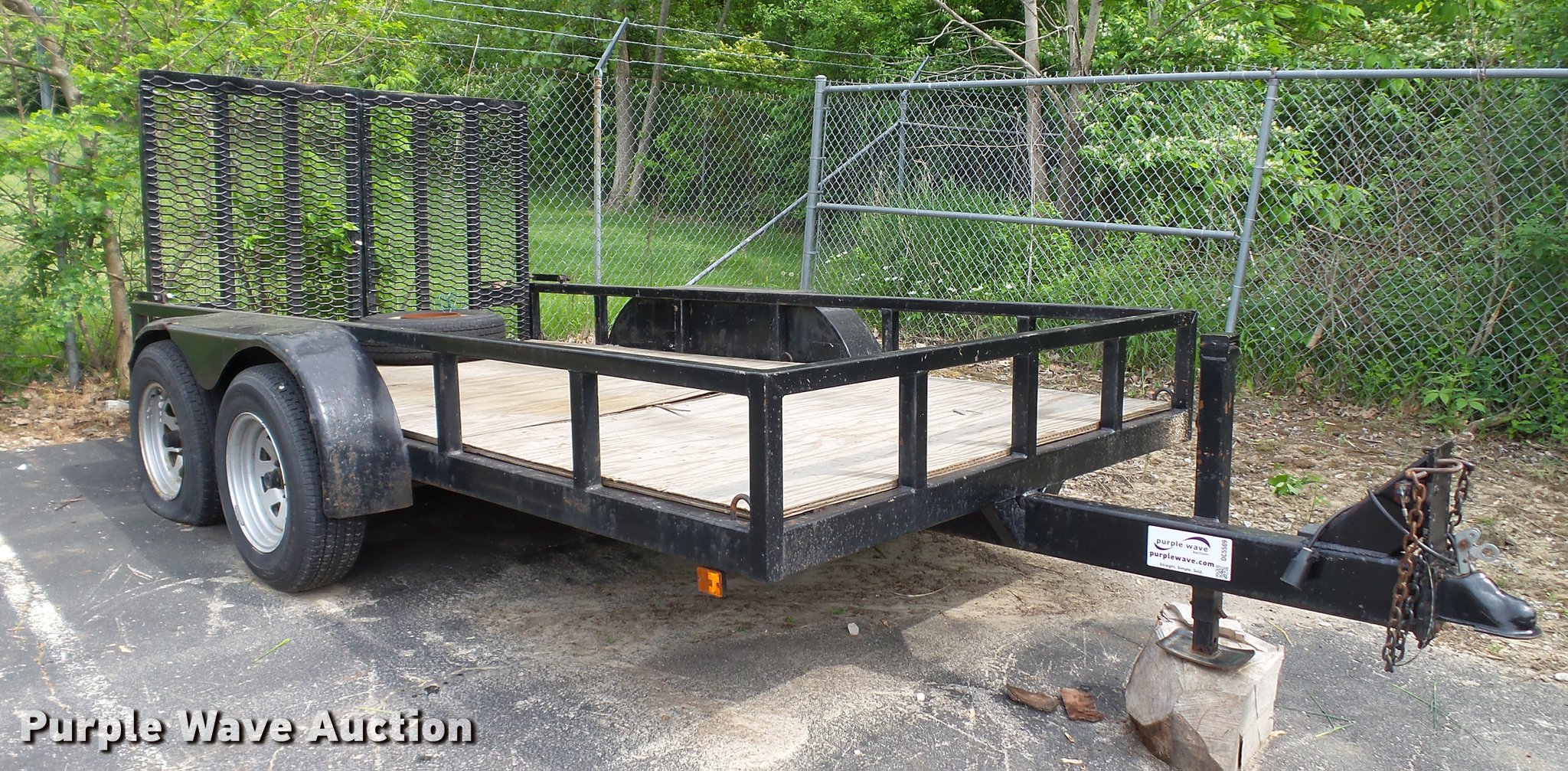 Purple Wave is selling a used Car or Utility Trailer in Indiana. This item is a 1995 Schwartz utility trailer with the following: 16' overall length, 11'8"L x 100"W wood deck, 53"L ramps, 2 5/16" ball hitch, Adjustable hitch height, Single leg landing gear, Spring suspension, Electric brakes, Tandem axle, Steel wheels, 205/75R15 tires, Wheel hub bearings locked up, Wheel assembly removed, Axle shaft may be damaged