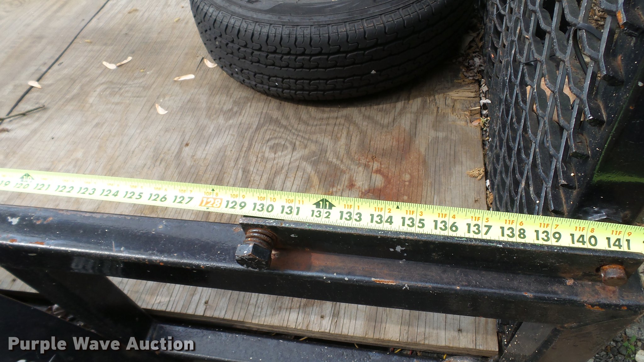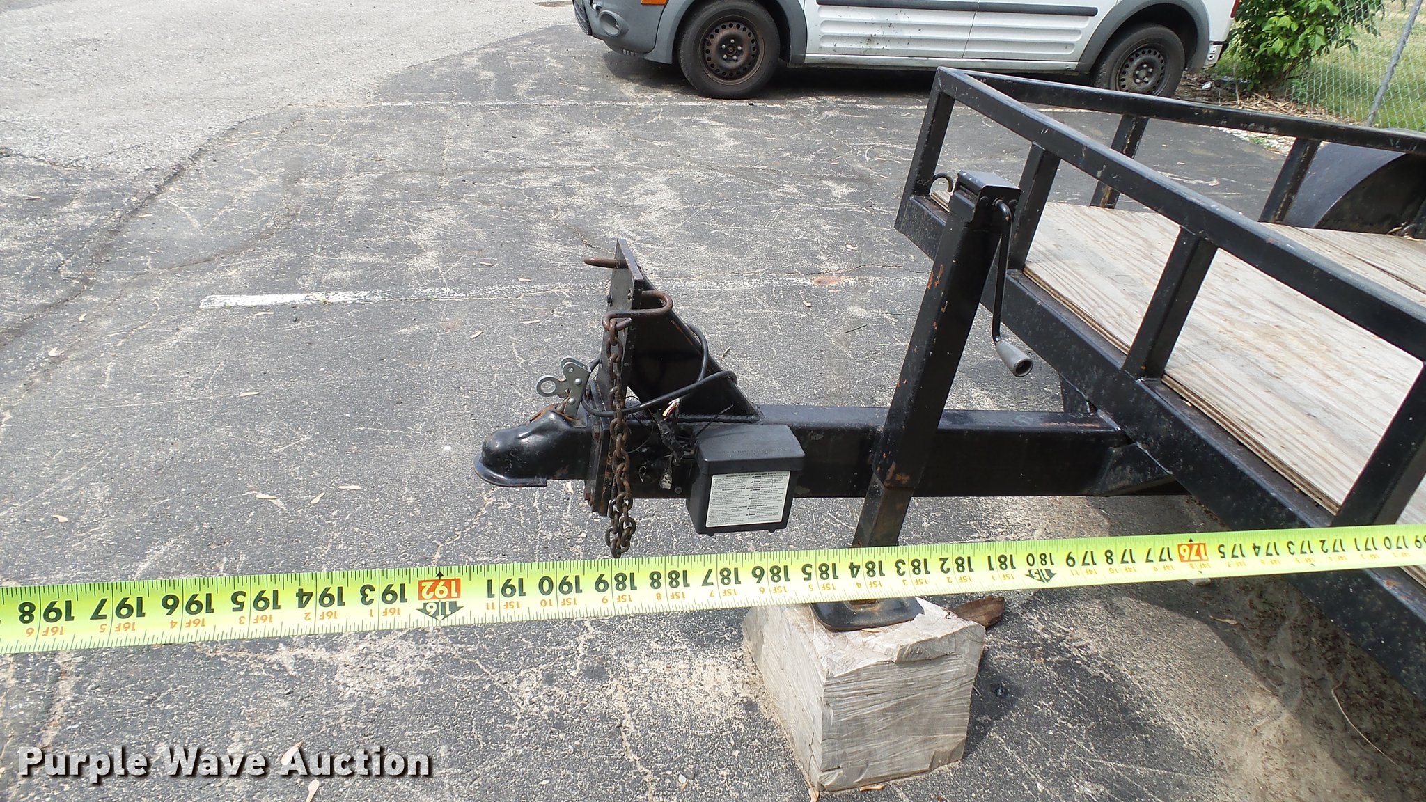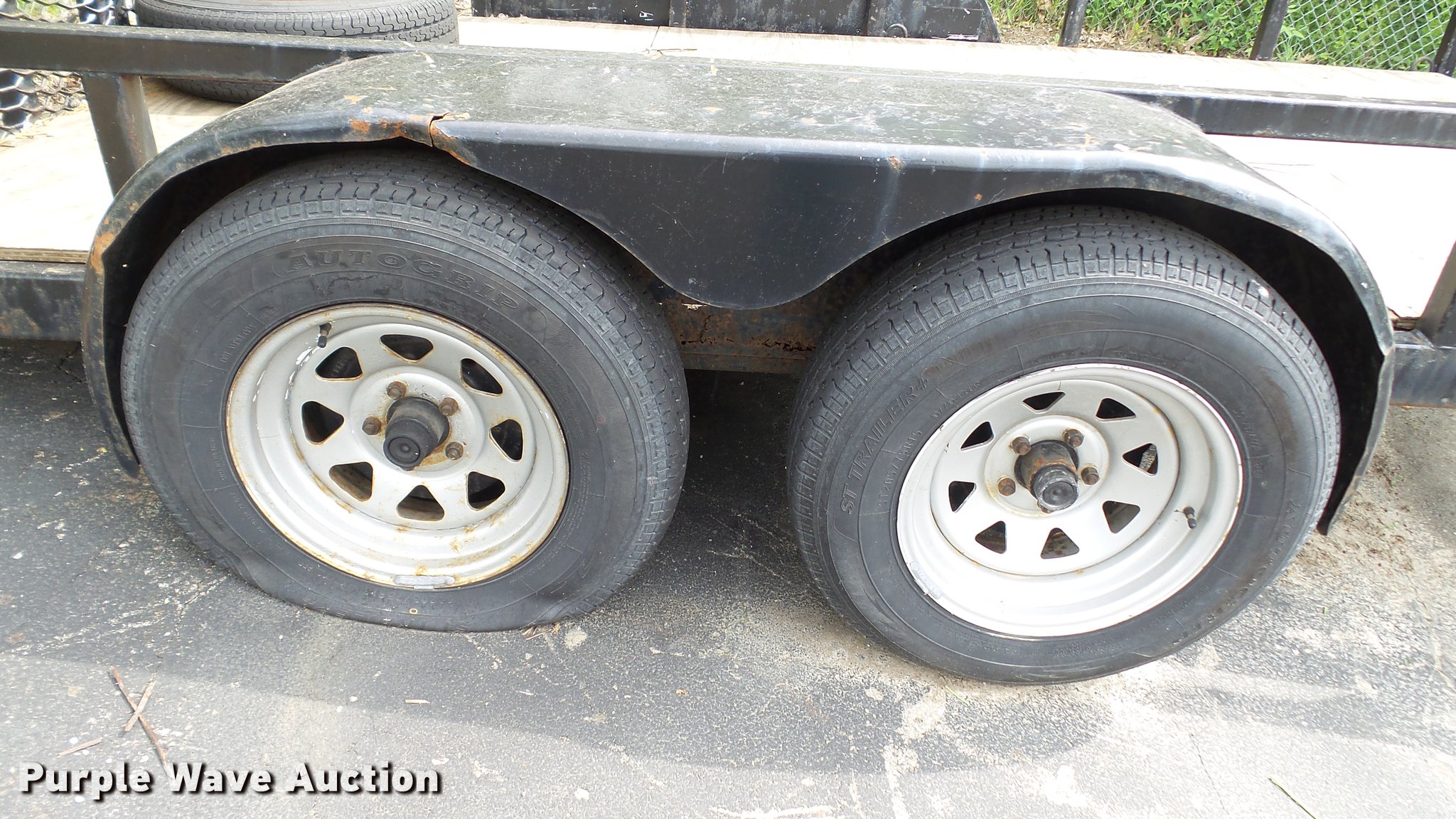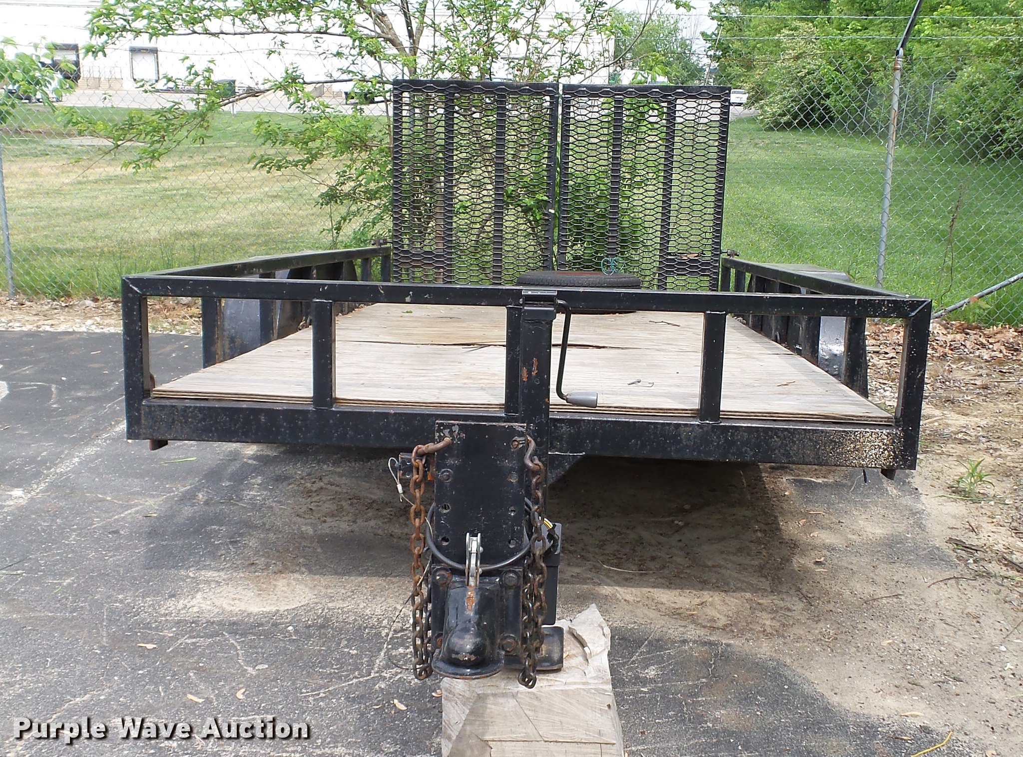 Purple Wave is selling a used Car or Utility Trailer in Indiana. This item is a 1995 Schwartz utility trailer with the following: 16' overall length, 11'8"L x 100"W wood deck, 53"L ramps, 2 5/16" ball hitch, Adjustable hitch height, Single leg landing gear, Spring suspension, Electric brakes, Tandem axle, Steel wheels, 205/75R15 tires, Wheel hub bearings locked up, Wheel assembly removed, Axle shaft may be damaged