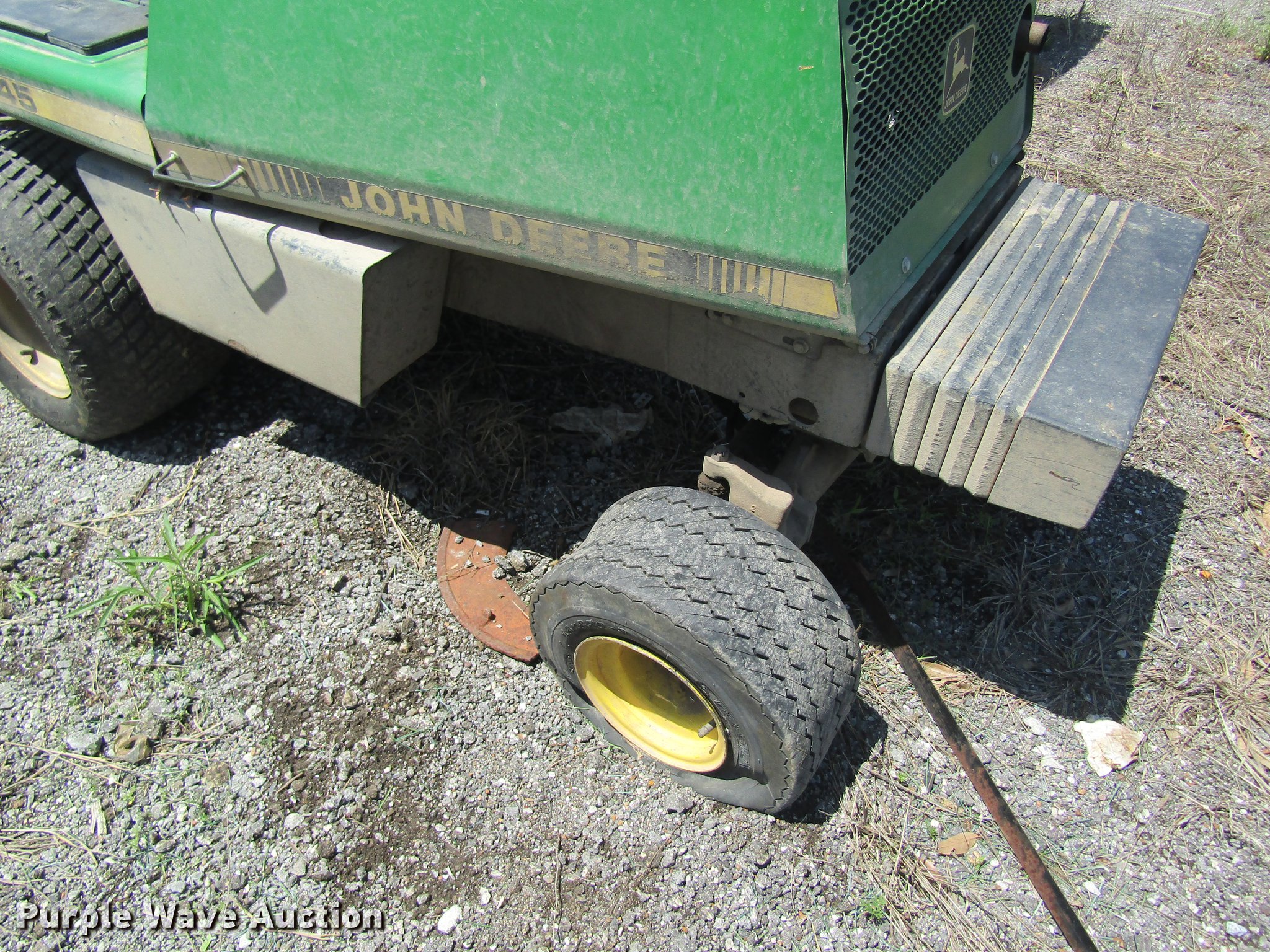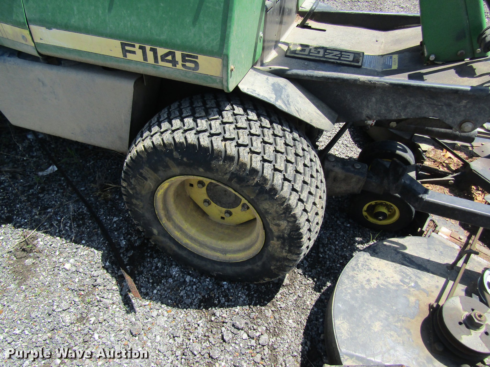 Purple Wave is selling a used Commercial Turf Mower in Missouri. This item is a 1998 John Deere F1145 lawn mower with the following: 3,841 hours on meter, 60" cut, Yanmar 1.2L three cylinder diesel engine, Hydrostatic transmission, 18x8.50-8 front tires, 24x12.00-12 rear tires, Main rear seal leaks, Turns over, but will not start, Serial M01145X186345