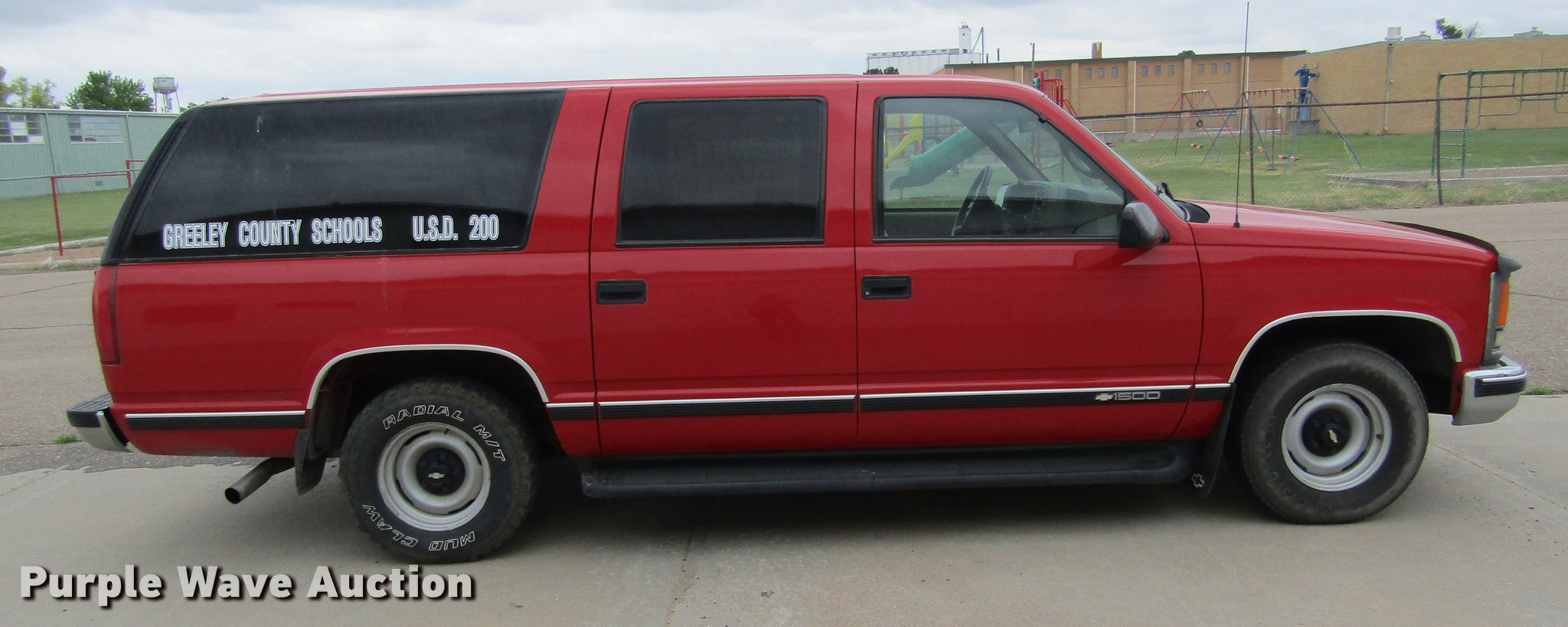 1999 Chevrolet Suburban 1500 SUV. 250,283 miles on odometer, 5.7L V8 OHV 16V gas engine, Automatic transmission, AC and heat, Tilt, Cruise, AM/FM/cassette, Manual windows , Power locks, Vinyl interior, Running boards, LT235/75R15 tires. Kansas title. 1GNEC16RXXJ328739. Greely Co. Schools USD 200. 400 W Lawrence St. Tribune, KS 67879