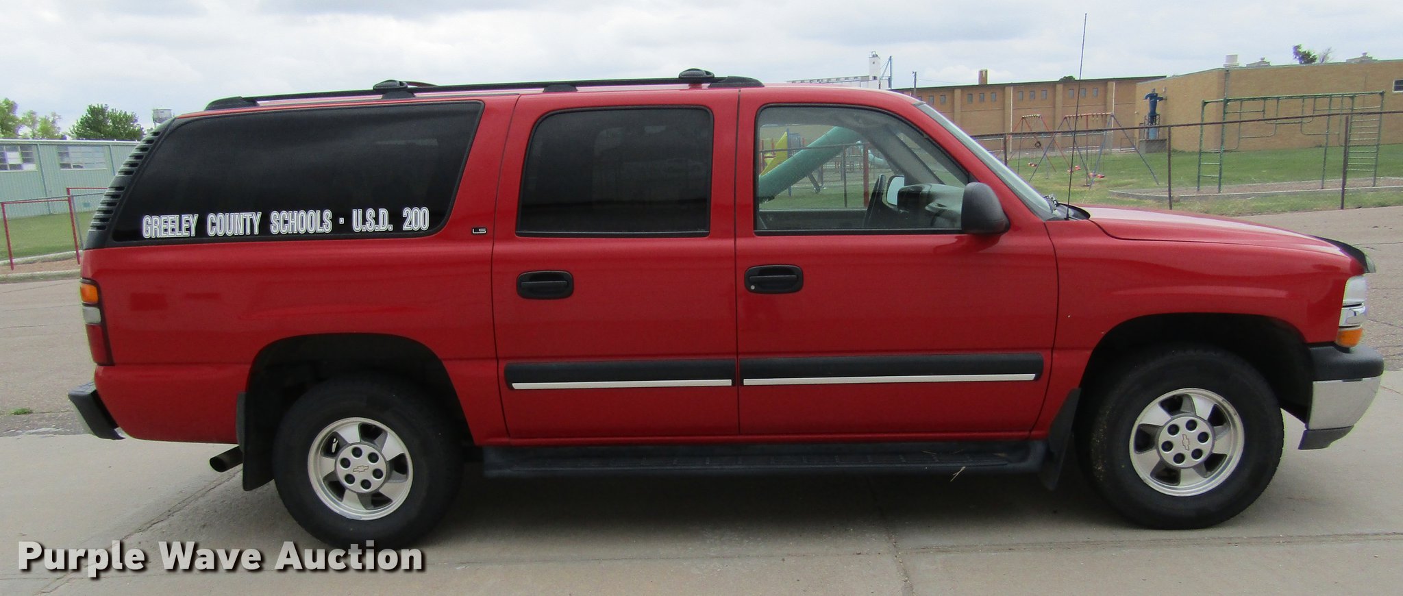 2001 Chevrolet Suburban 1500 LS SUV. 235,857 miles on odometer, 5.3L V8 16V OHV gas engine, Automatic transmission, AC and heat, Tilt, Cruise, AM/FM/CD, Power windows, locks, and mirrors, Cloth interior, Running boards, Receiver hitch, Trailer wiring, LT245/75R16 tires, AC needs charged, Engine issue, knocks when cold. Kansas title. 1GNEC16T91J248867. Greely Co. Schools USD 200. 400 W Lawrence St. Tribune, KS 67879