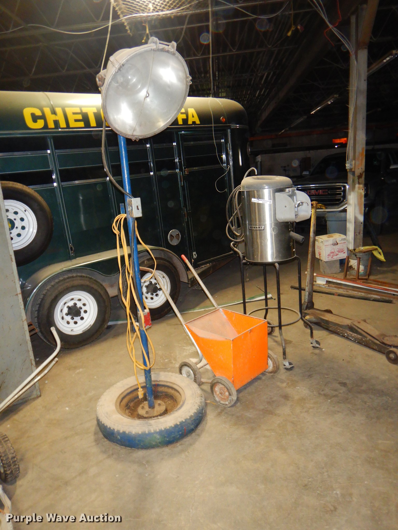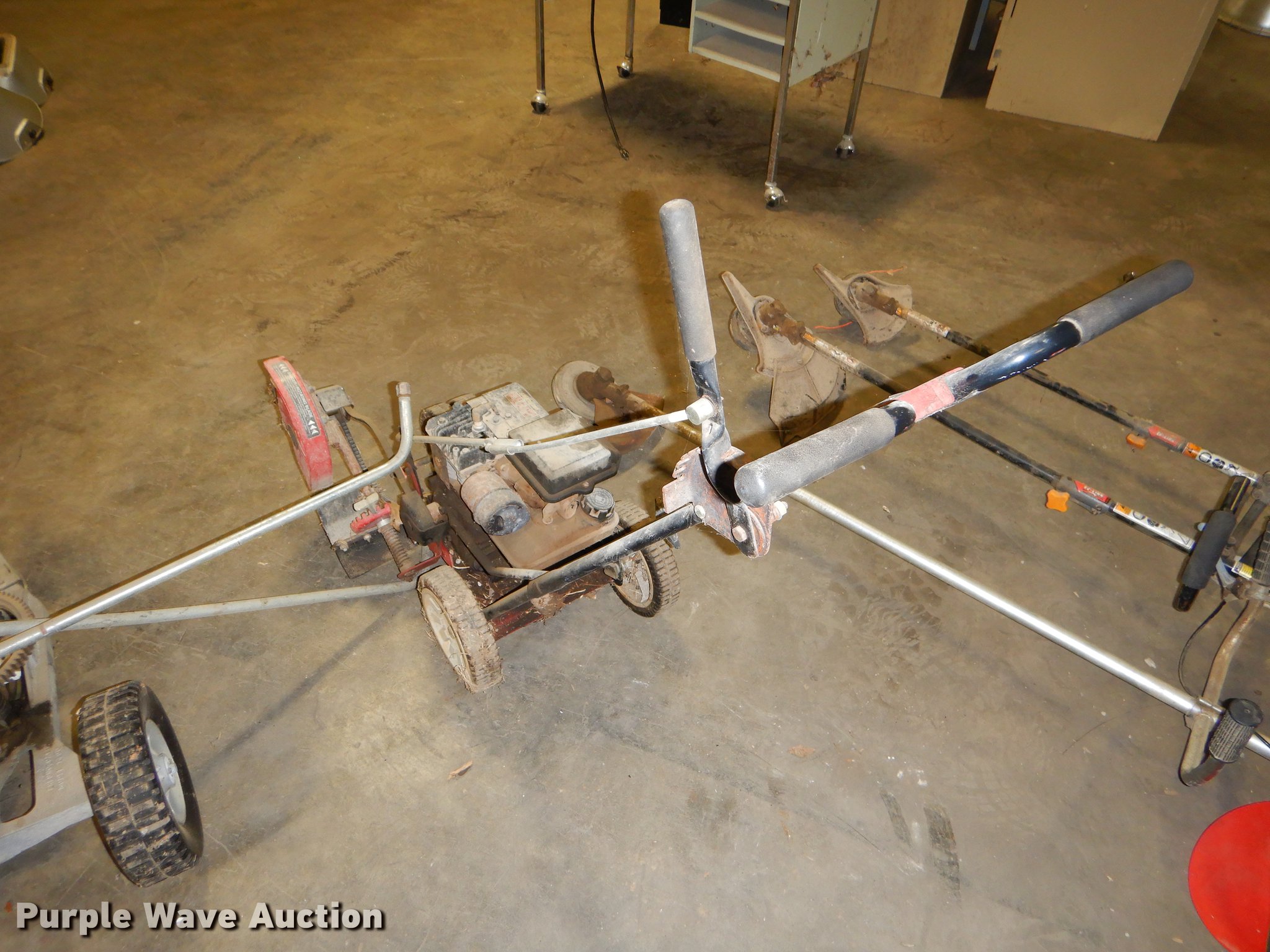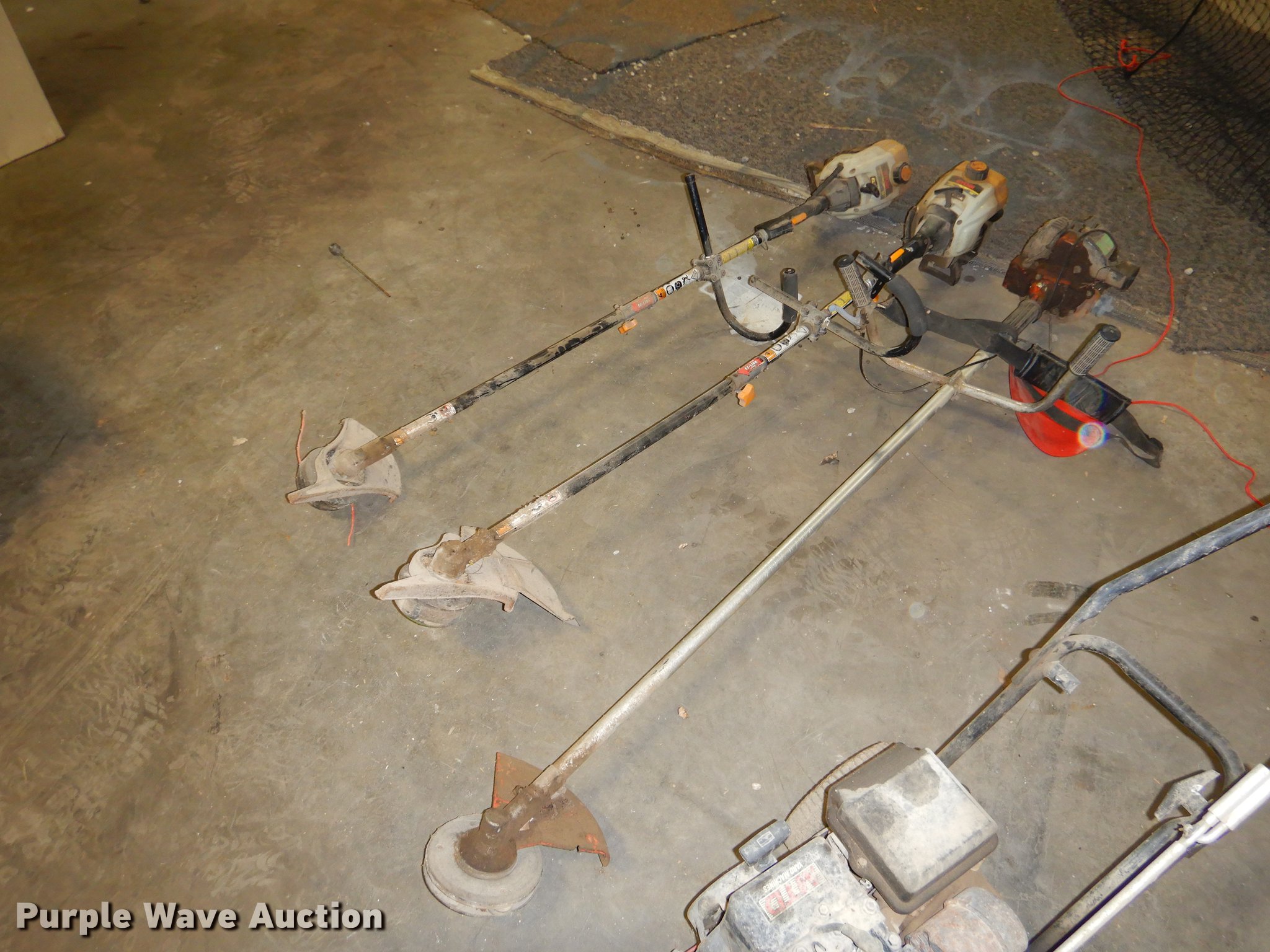 Purple Wave is selling a used Tools in Kansas. This item is a Tools with the following: Walker floor jack, Hobart 6115 grinder, Serial 1810255, Chalk line marker, Flood light, Stand, Sprinkler, Edge, 3.5 HP gas engine, (3) string trimmers, Stihl FS80, (2) Ryobi, Unknown operating conditions