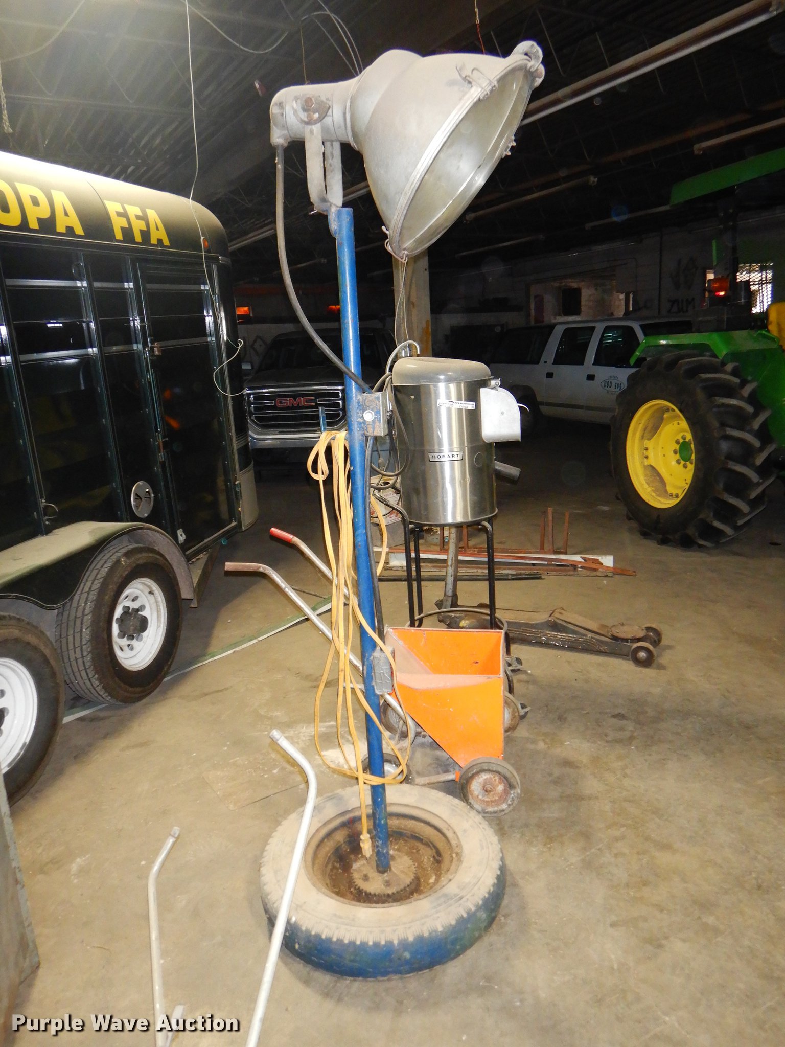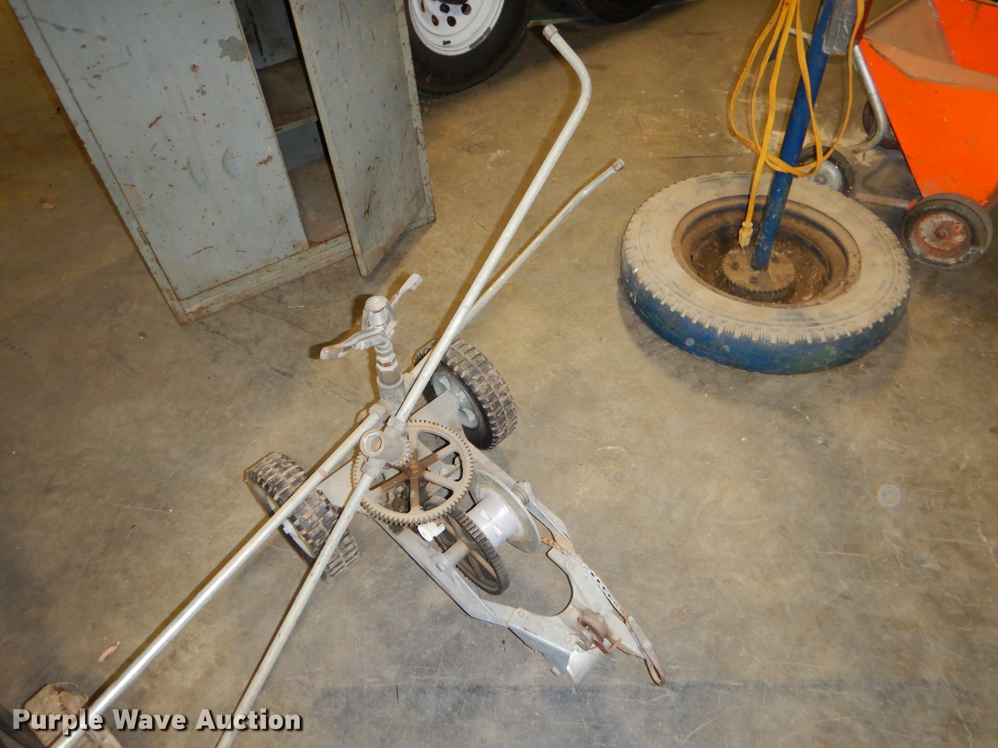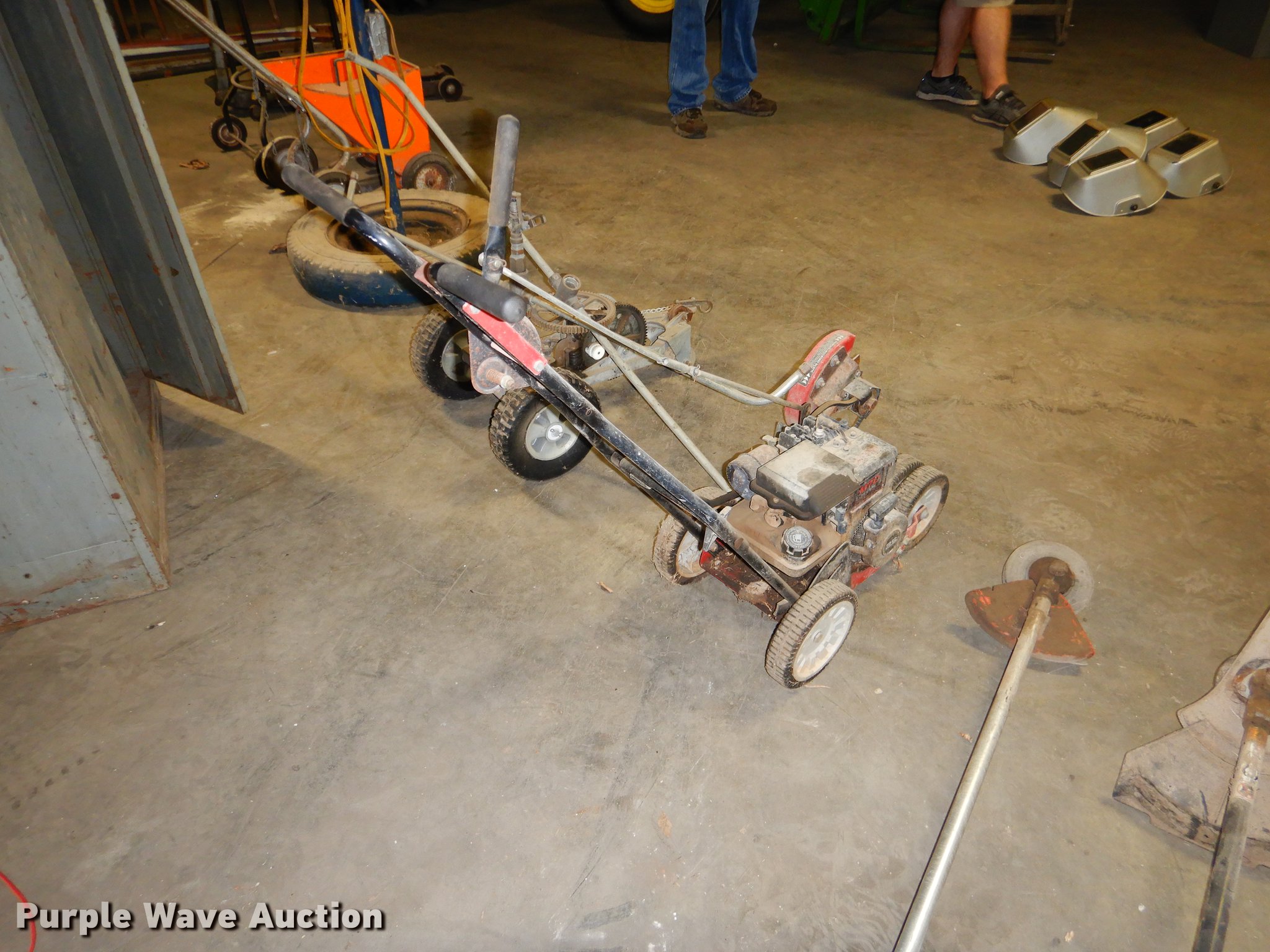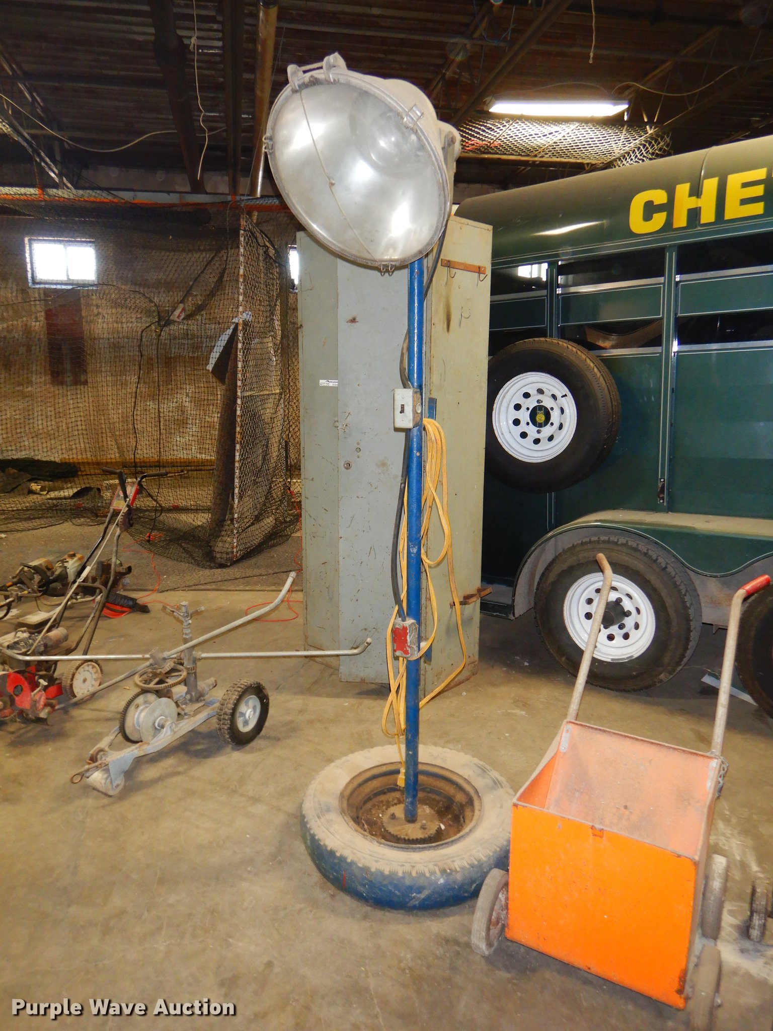 Purple Wave is selling a used Tools in Kansas. This item is a Tools with the following: Walker floor jack, Hobart 6115 grinder, Serial 1810255, Chalk line marker, Flood light, Stand, Sprinkler, Edge, 3.5 HP gas engine, (3) string trimmers, Stihl FS80, (2) Ryobi, Unknown operating conditions