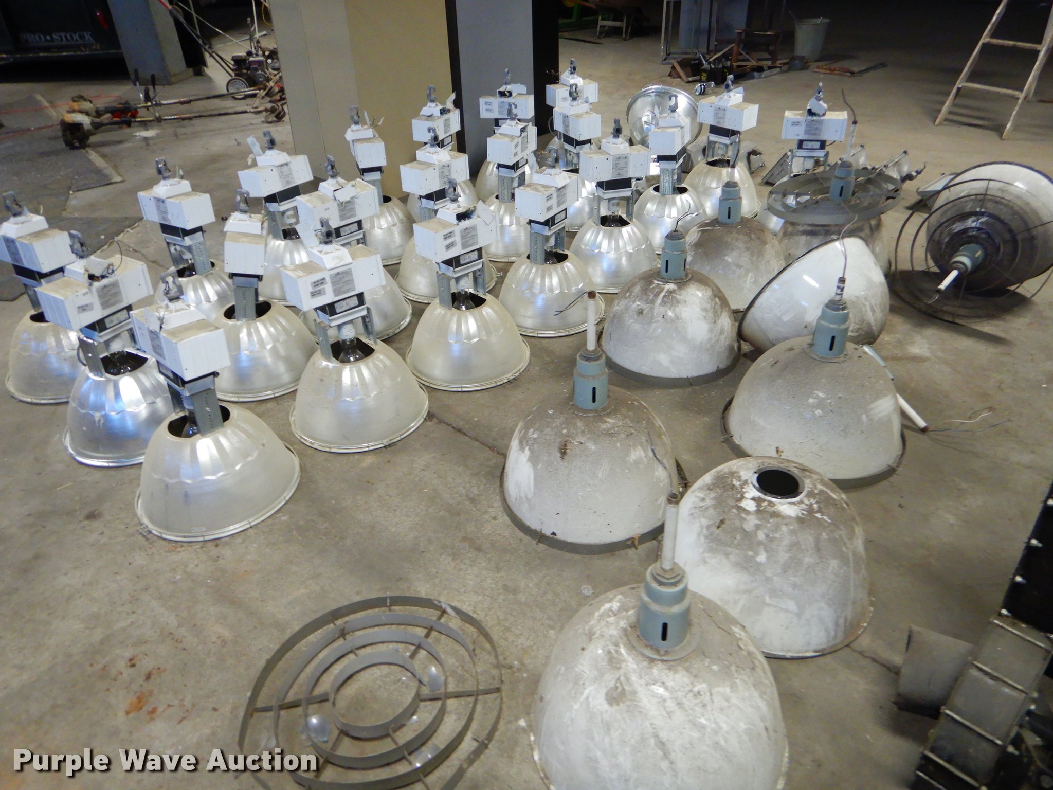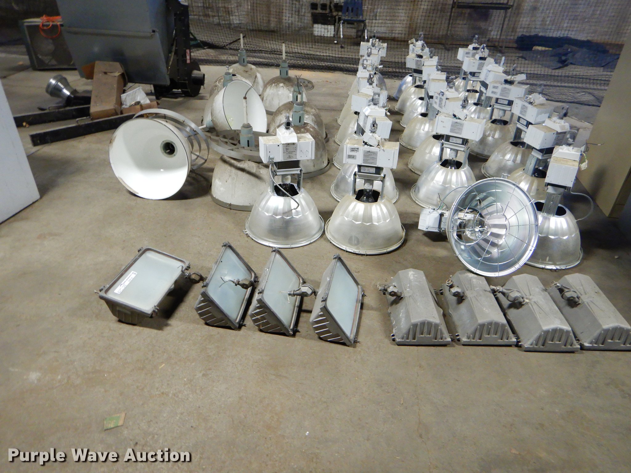 Purple Wave is selling a used Building Materials in Kansas. This item is a (38) lights with the following: (8) ball field lights, (22) gymnasium lights, (8) light fixtures