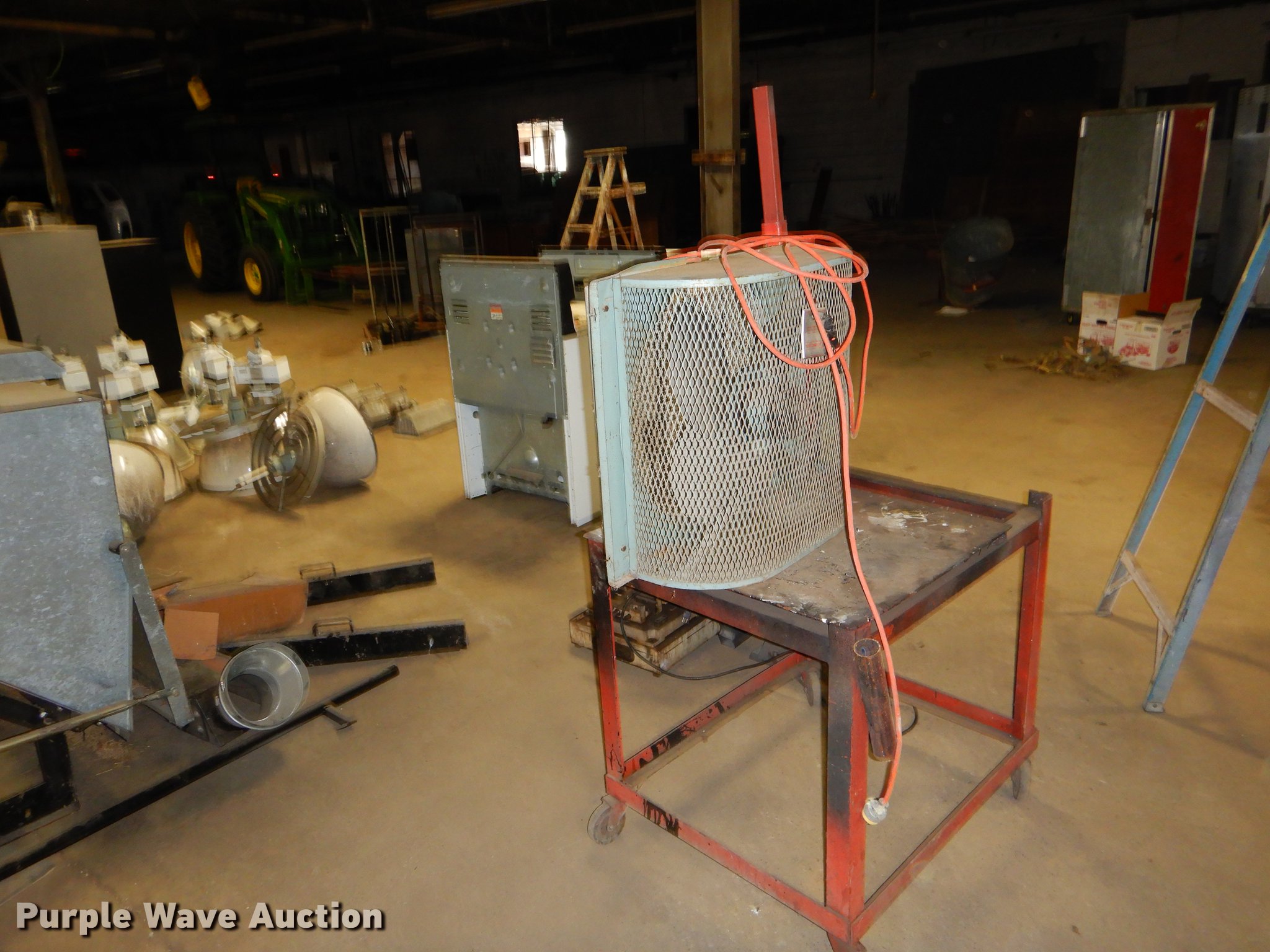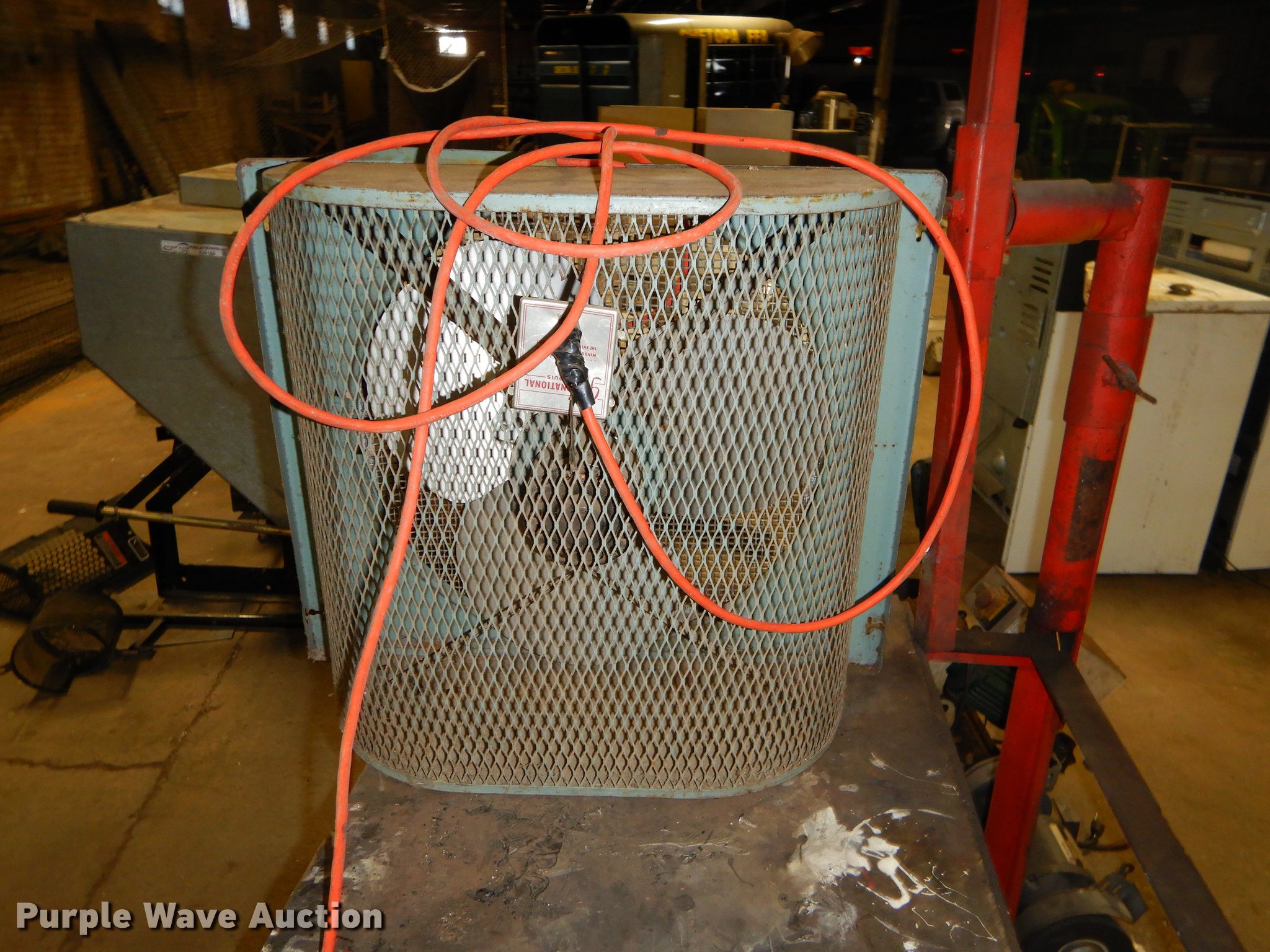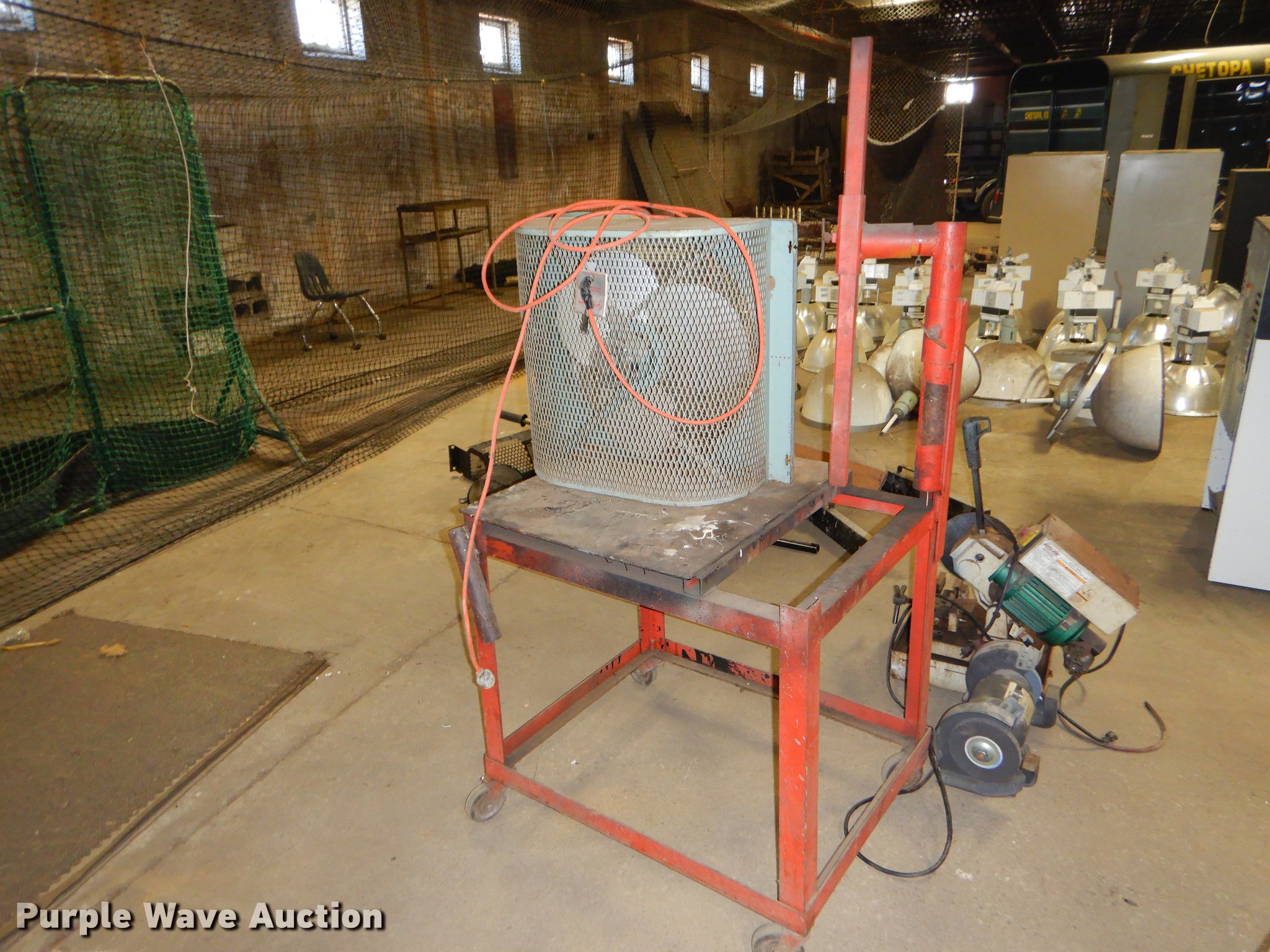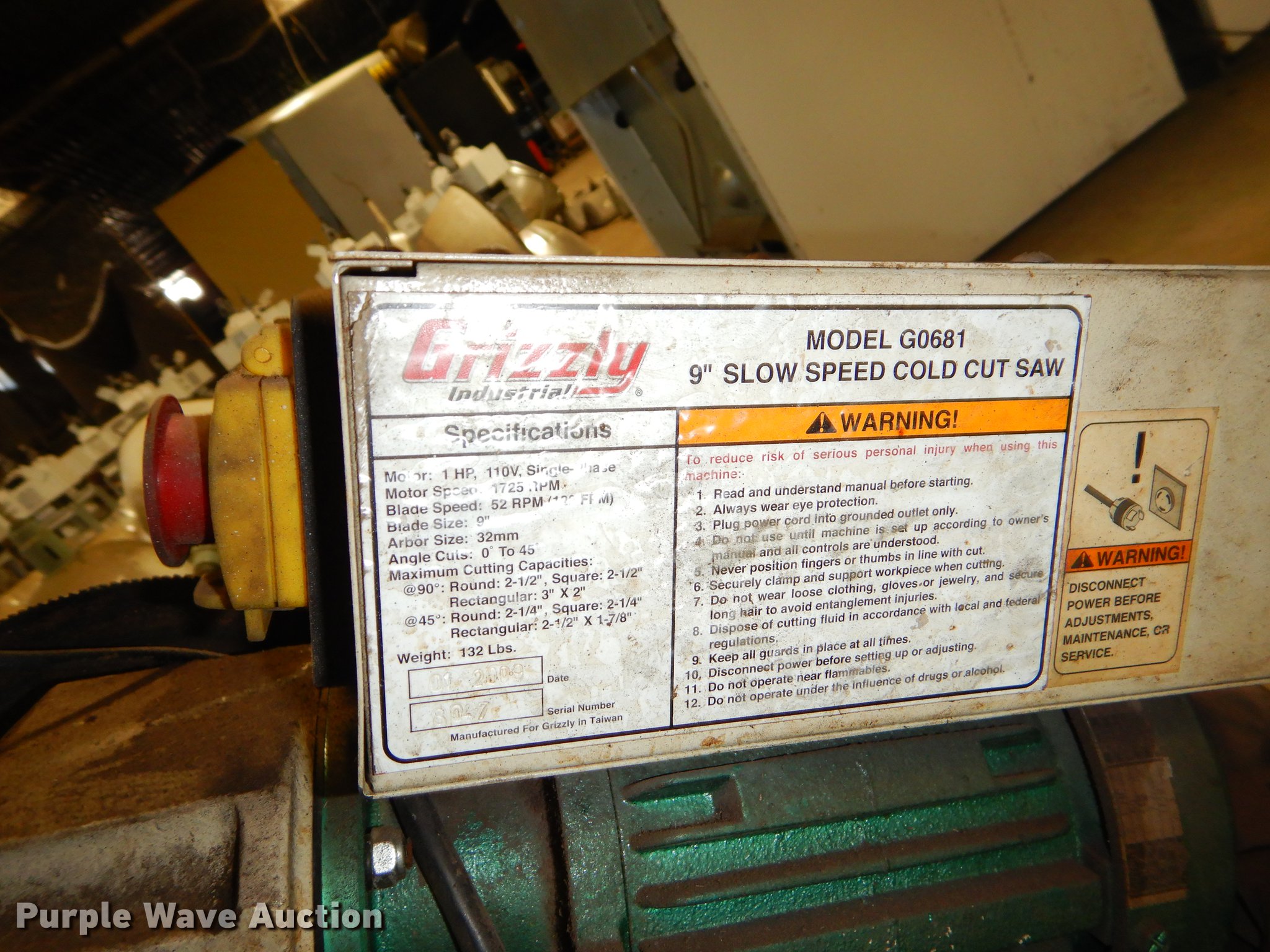 Purple Wave is selling a used Tools in Kansas. This item is a Tools with the following: 2009 Grizzly slow speed cut saw, 9", 120V, Serial 8047, Black & Decker bench grinder, 3/4 HP, 8", Serial 4112213, Steel table, 33" x 27" x 67", International fan, 120V, Unknown operating conditions